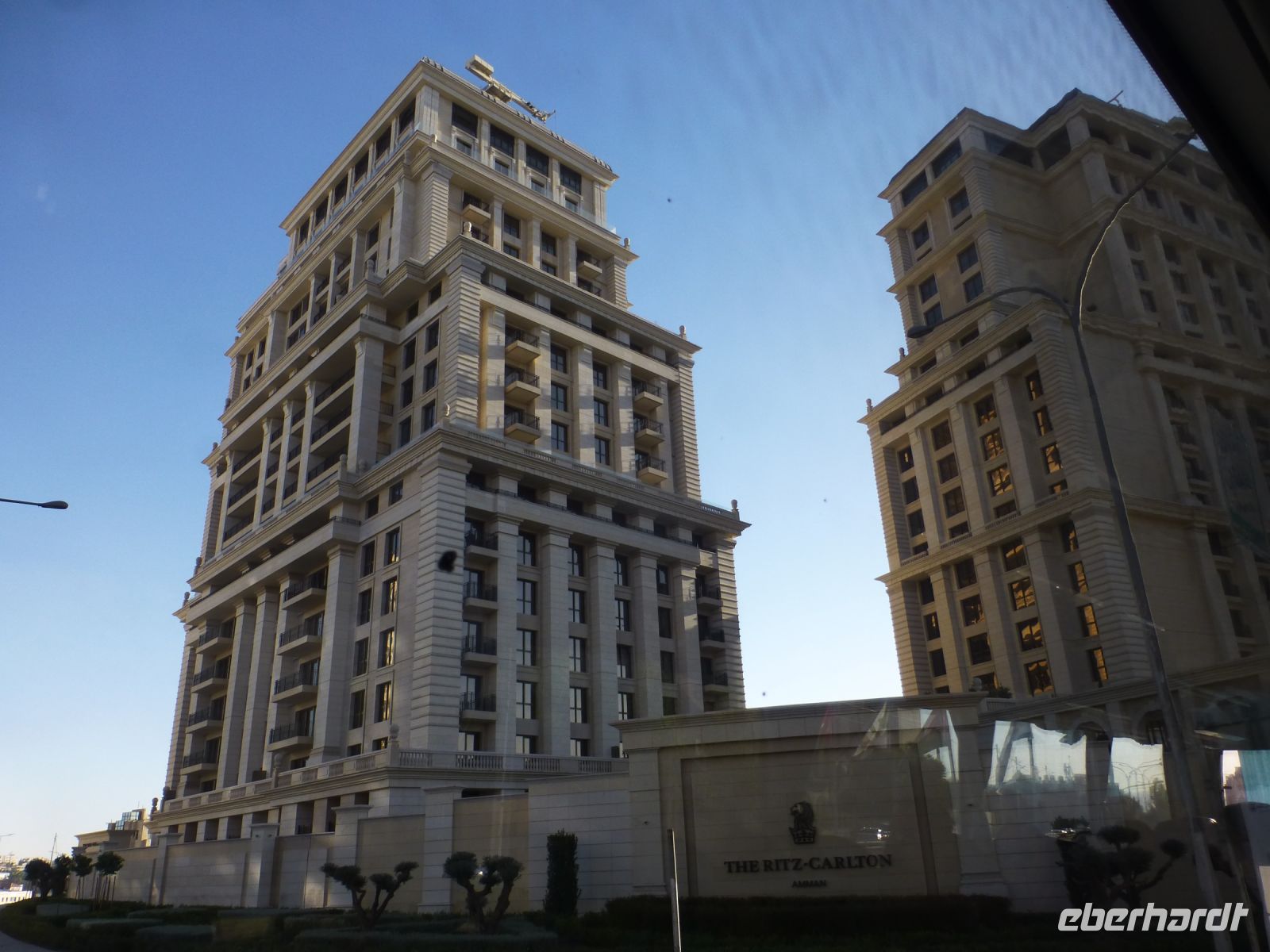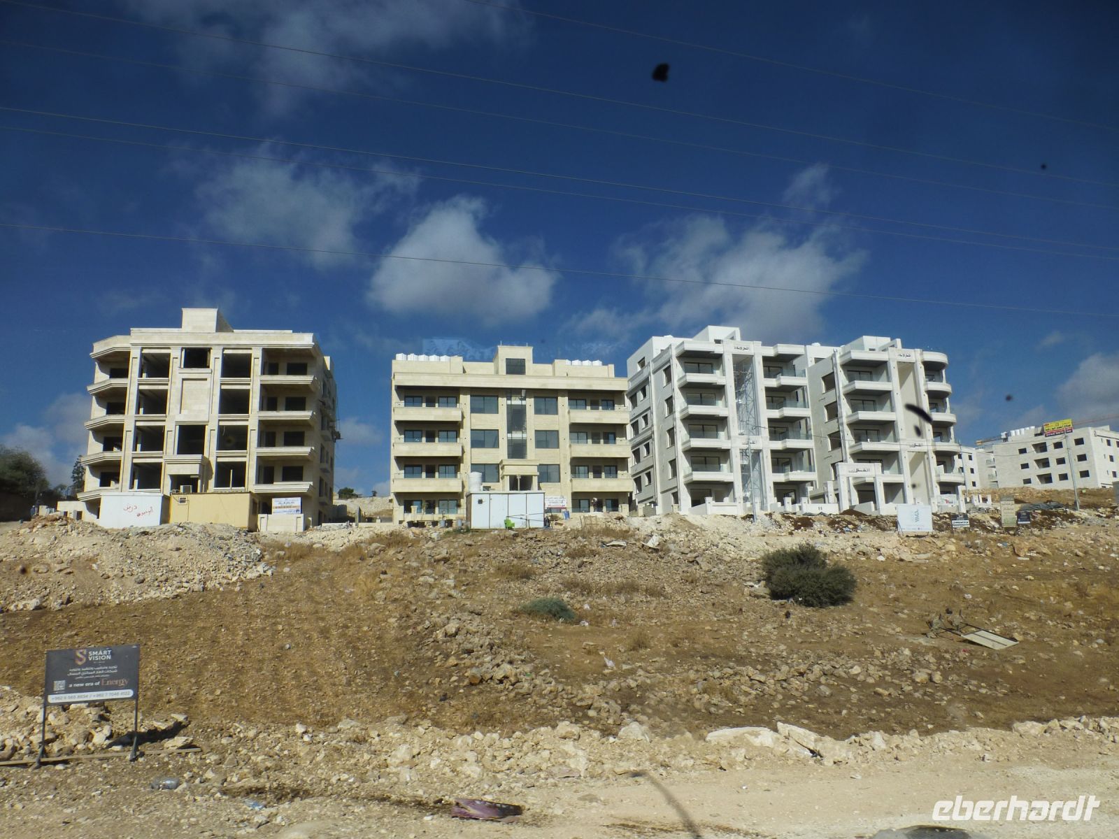 Die Neubauten werden mit Balkonen gebaut, die in den arabischen Ländern keine Tradition haben: Man zeigt sich so nicht – auch einem Balkon sitzend - und es ist auch viel zu warm. Also ist der Balkon reines Stilelement für die westlich erscheinenden Bauten.