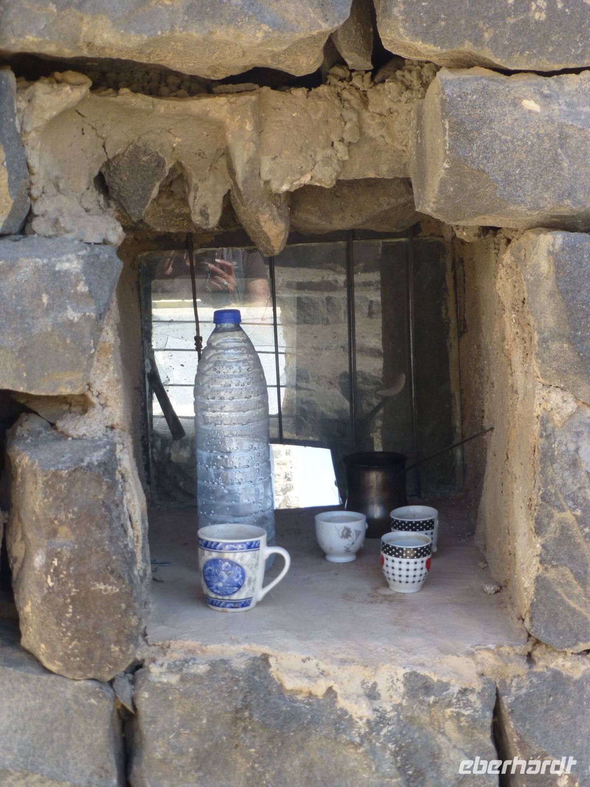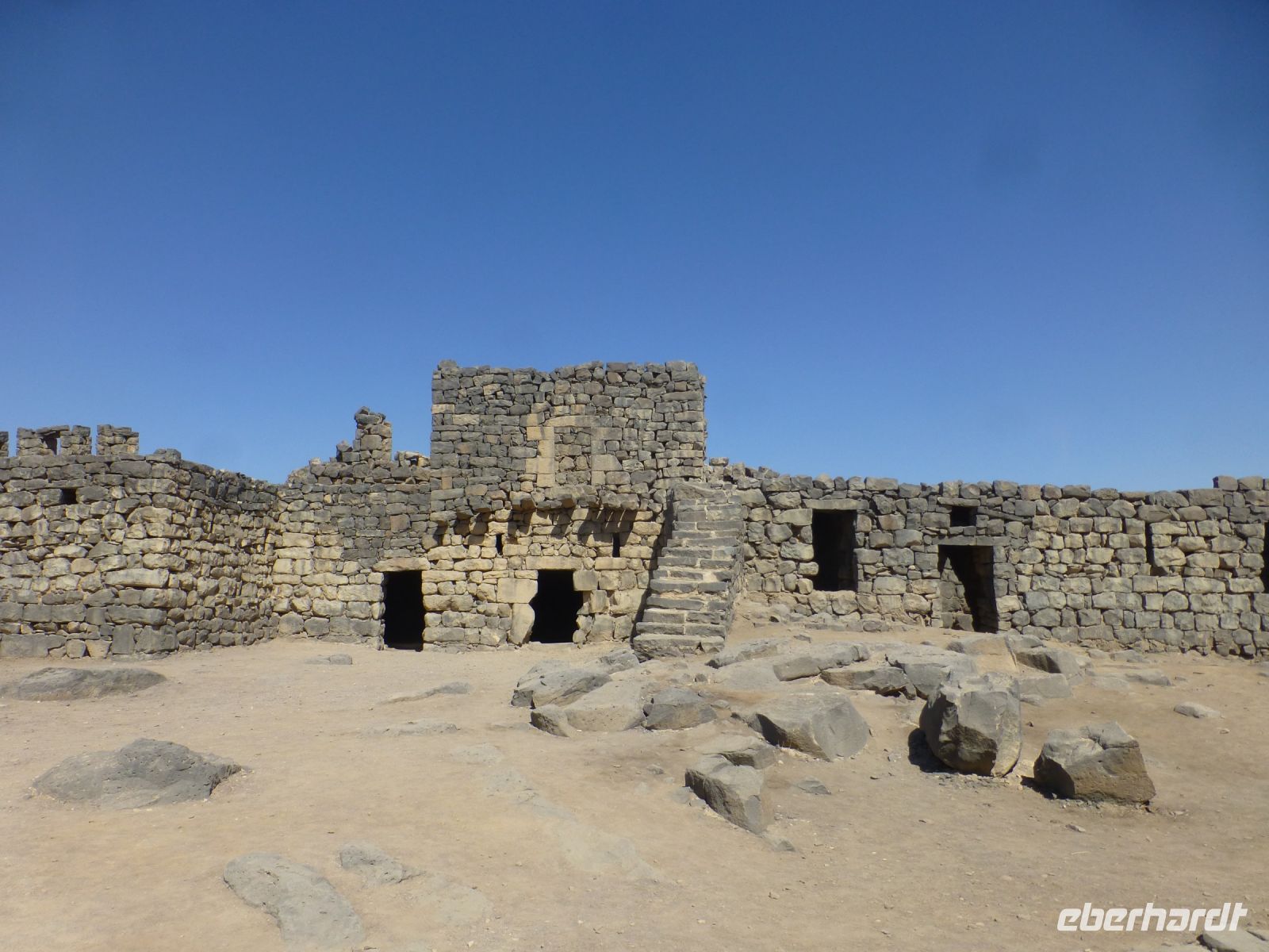 Hier begegnen wir erstmals Lawrence von Arabien, der im Winter 1917/18 die Eroberung von Aqaba geplant hat und bitterlich gefroren haben soll. Das Fort macht trotz strahlender Sonne einen kalten Eindruck, die Mauern aus großen Blöcken aus Lavagestein zusammengefügt, sehen wehrhaft aus.