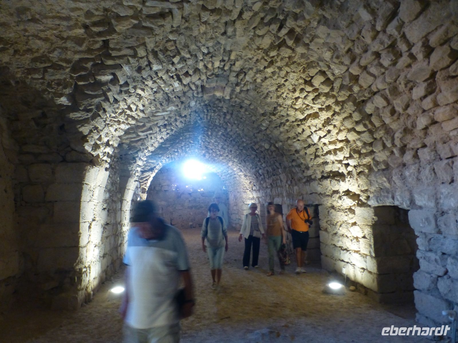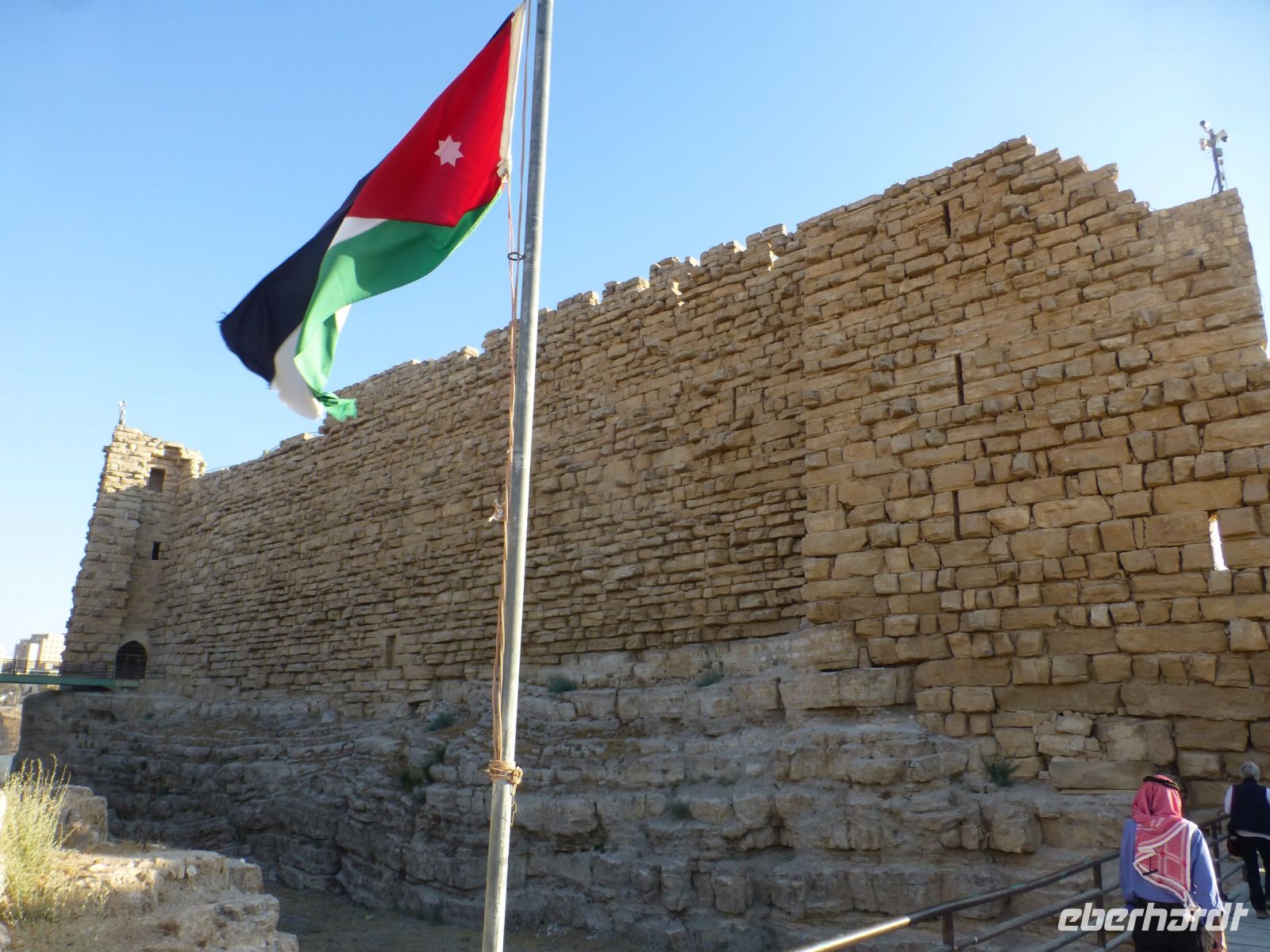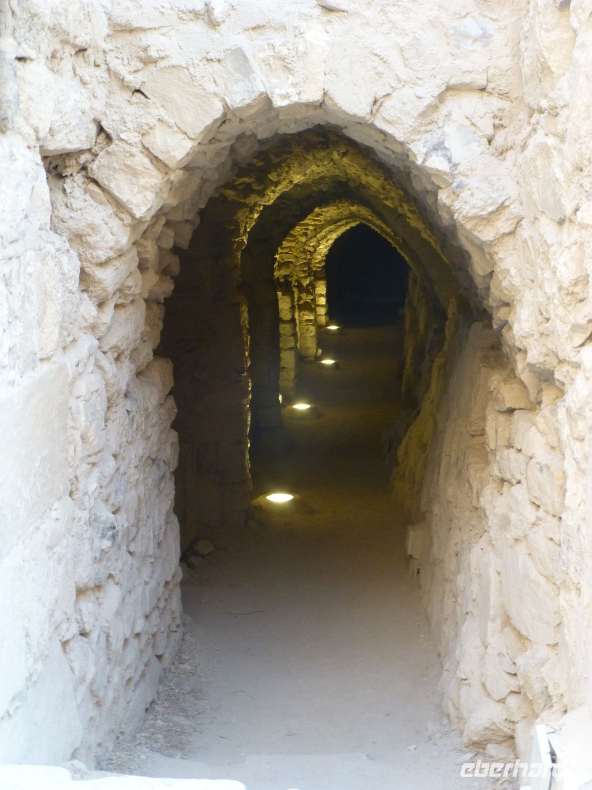 Wir fahren über Jerash, entlang der Ausgrabungsstätte, so dass wir sehen, was uns nachher noch erwartet. Noch einige Kilometer, dann kommt die Burg in den Blick. Wie ein Adlerhorst sitzt sie oben auf dem Berg – wie es sich für eine richtige Burg gehört. Von Saladin hören wir nun zum ersten Mal, jener, dem Lessing im „Nathan der Weise“ ein Denkmal gesetzt hat. Denn sein Neffe errichtete im späten 12. Jahrhunder eine Kette von Burgen gegen die Kreuzritter, um die Pilgerroute nach Mekka zu schützen und drei Hauptrouten, darunter die wichtigste zwischen Jordanien und Syrien. Die Burg ist sehr schön restauriert und auch jetzt wird noch weiter ausgegraben und das Gemäuer instand gesetzt. Und auch hier: Zisternen sorgten für das Überleben bei Belagerungen und ein Wasserkanal zieht sich sogar durch einen der Räume. Früher war die Burg gar durch einen Wassergraben gesichert.