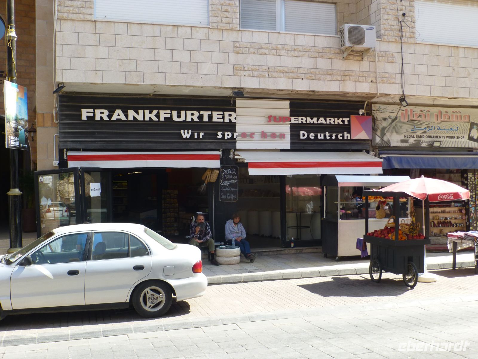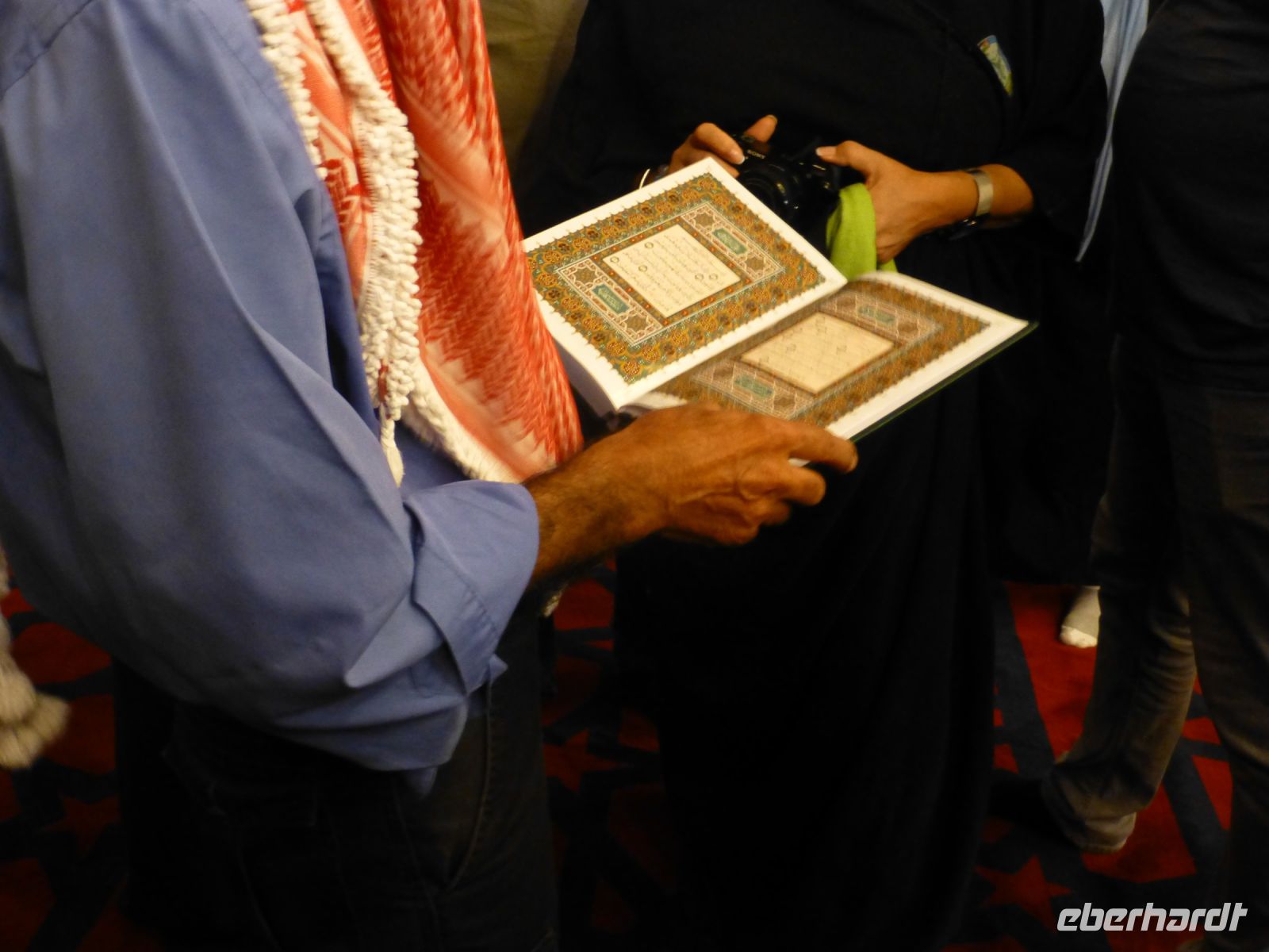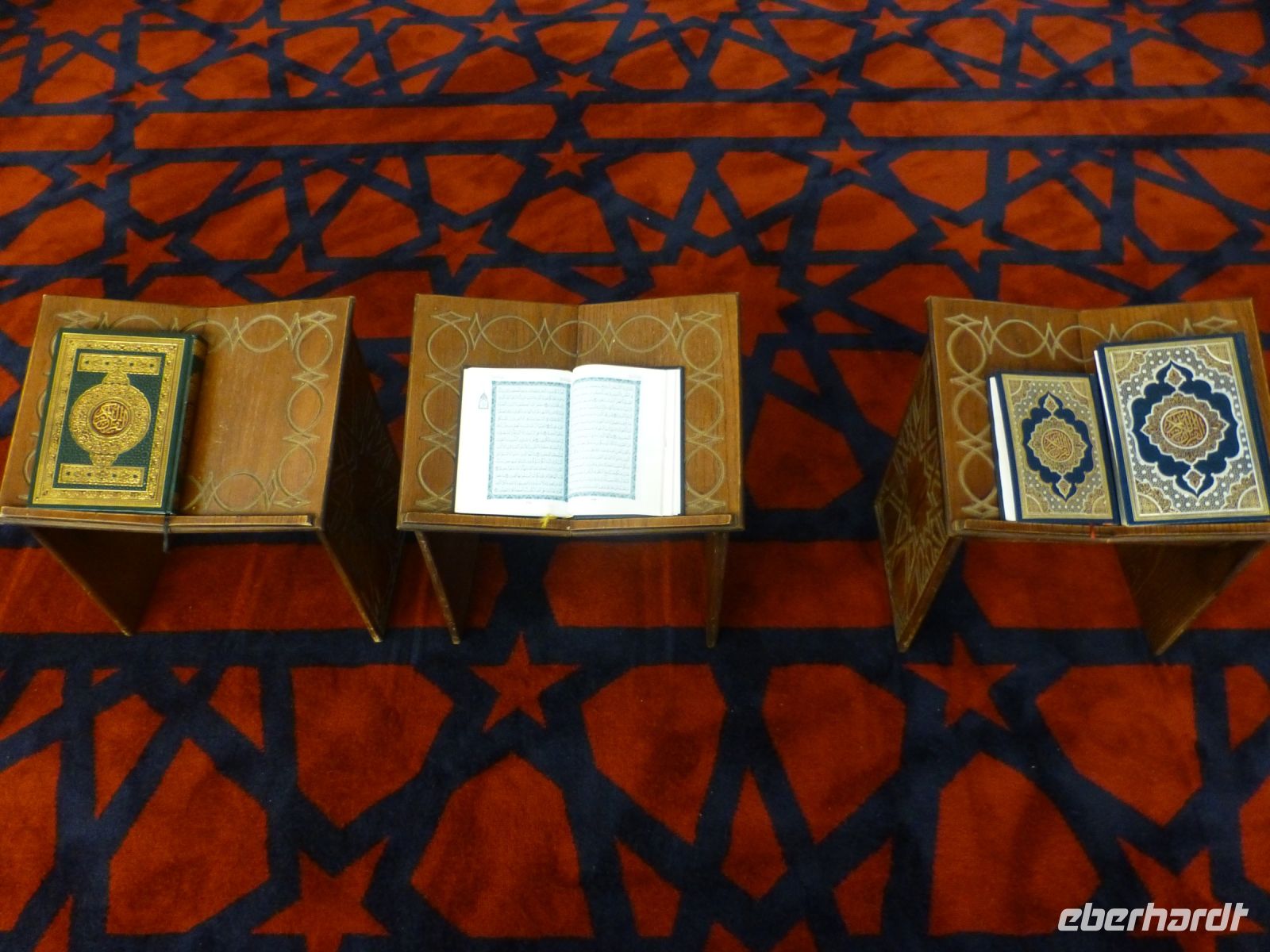 Nach dem guten Frühstück besuchen wir die König-Abdullah-Moschee, die größte Moschee des Landes und aufgrund ihrer blauen Kuppel wird sie auch die Blaue Moschee genannt. Mahmoud erklärt uns die Glaubensbekenntnisse des Islam, mit welchen Worten der Muezzin fünfmal am Tag zum Gebet ruft und da fällt uns auf, dass die Bücher „verkehrt herum“ liegen, da sie ja von rechts nach links gelesen werden. Friedrich Rückert hat den Koran übrigens auszugsweise in poetischen Worten übersetzt und Mahmoud, der in Hamburg studiert hat und ausgezeichnet Deutsch spricht, hat eine Ausgabe in seiner Bibliothek.
