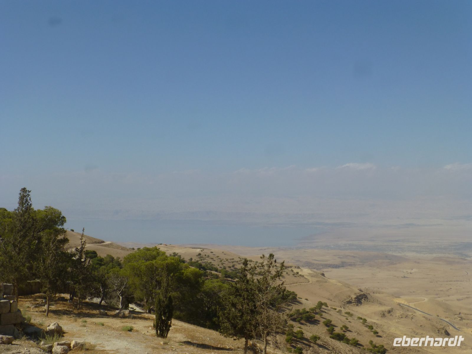 Heute schlagen wir zum ersten Mal in der Bibel nach, im Fünften Buch Moses (34.1), denn auf dem Berg Nebo soll Moses gestorben sein. Da er Gott entzürnt hatte, durfte er nicht im Gelobten Land sein langes Leben beenden, sondern durfte nur einen Blick auf jenes Land werfen.