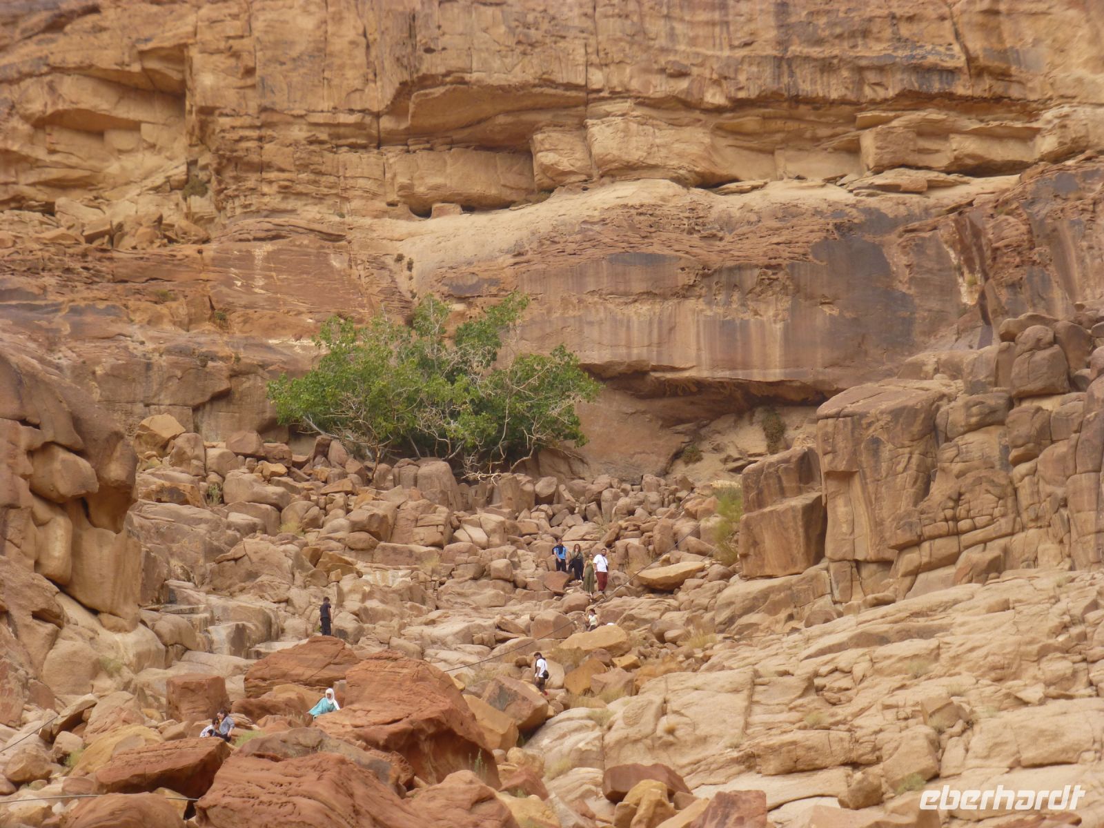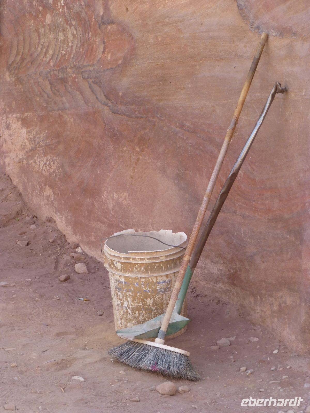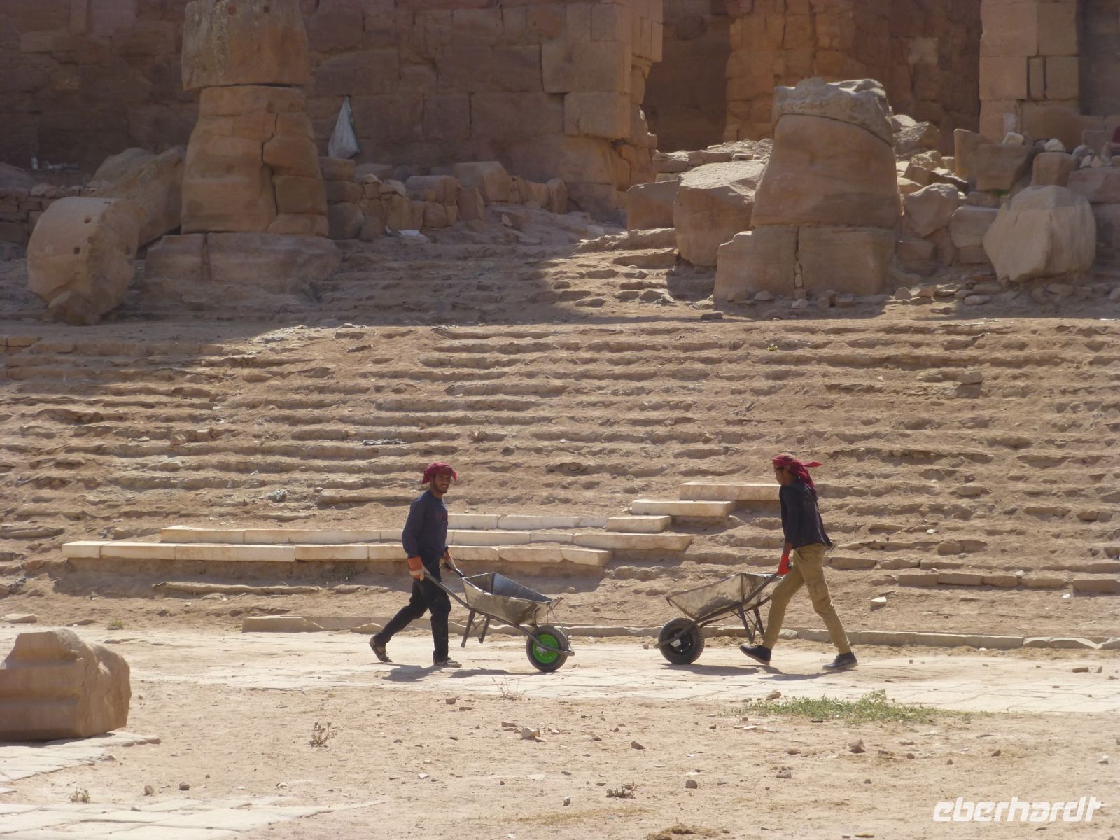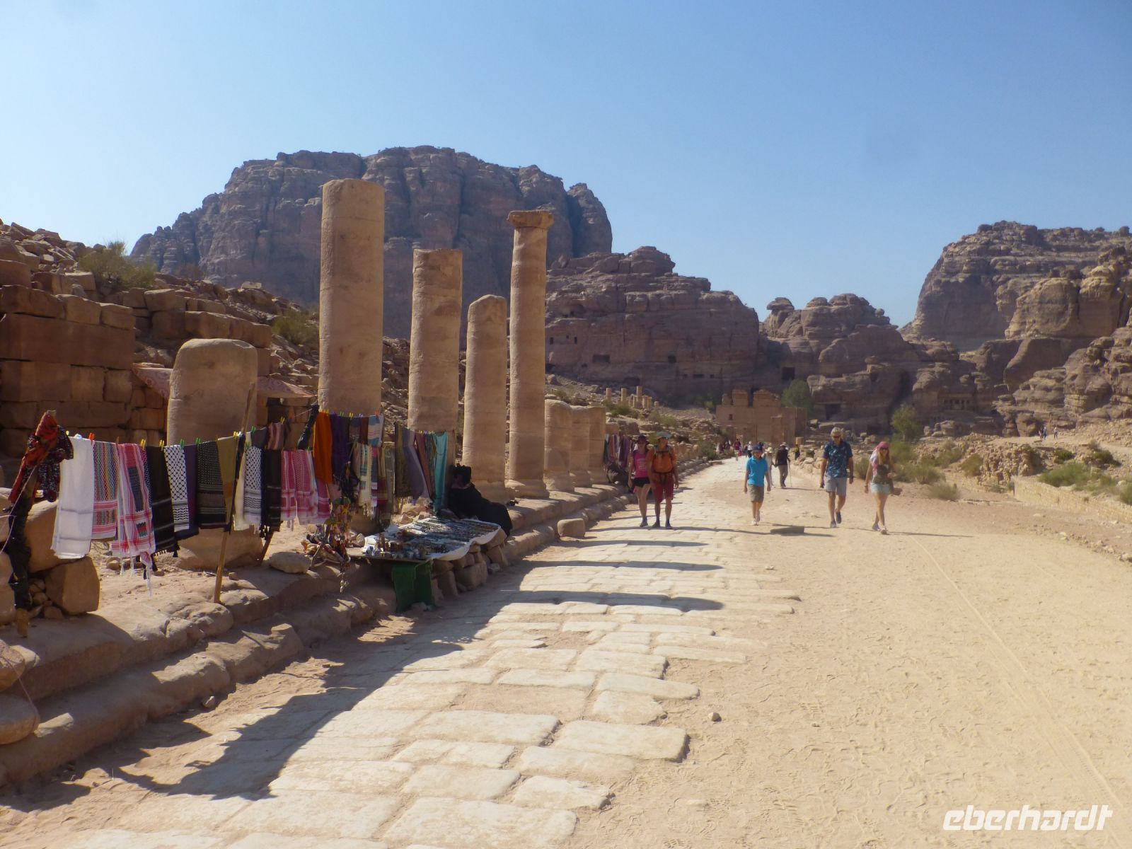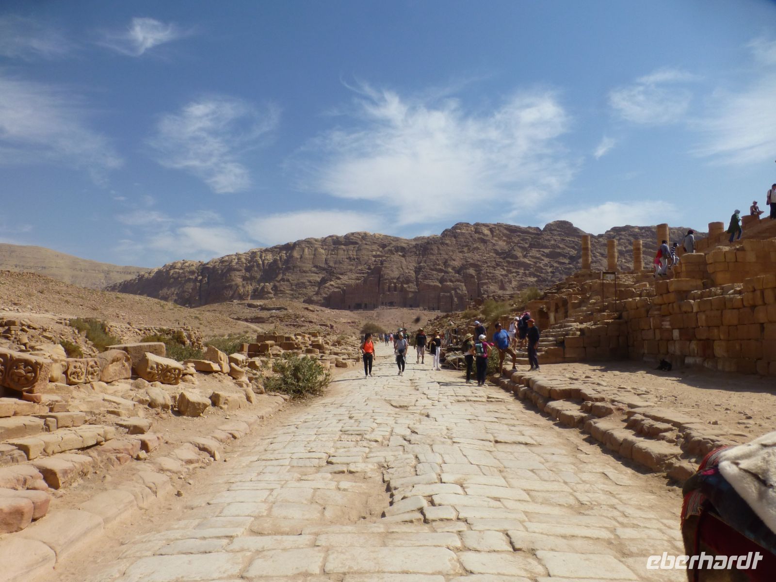Nach dieser Pause gehören wir uns selbst und alle bleiben in der Ausgrabung und schauen sich noch einmal das an, was sie noch nicht gesehen haben oder noch einmal genauer in Augenschein nehmen wollen. Ich mache mich auf zum Felsentempel Ed-Deir, das über unzählige Treppenstufen zu erreichen ist. Auf der Strecke geht es zu wie auf der Autobahn.