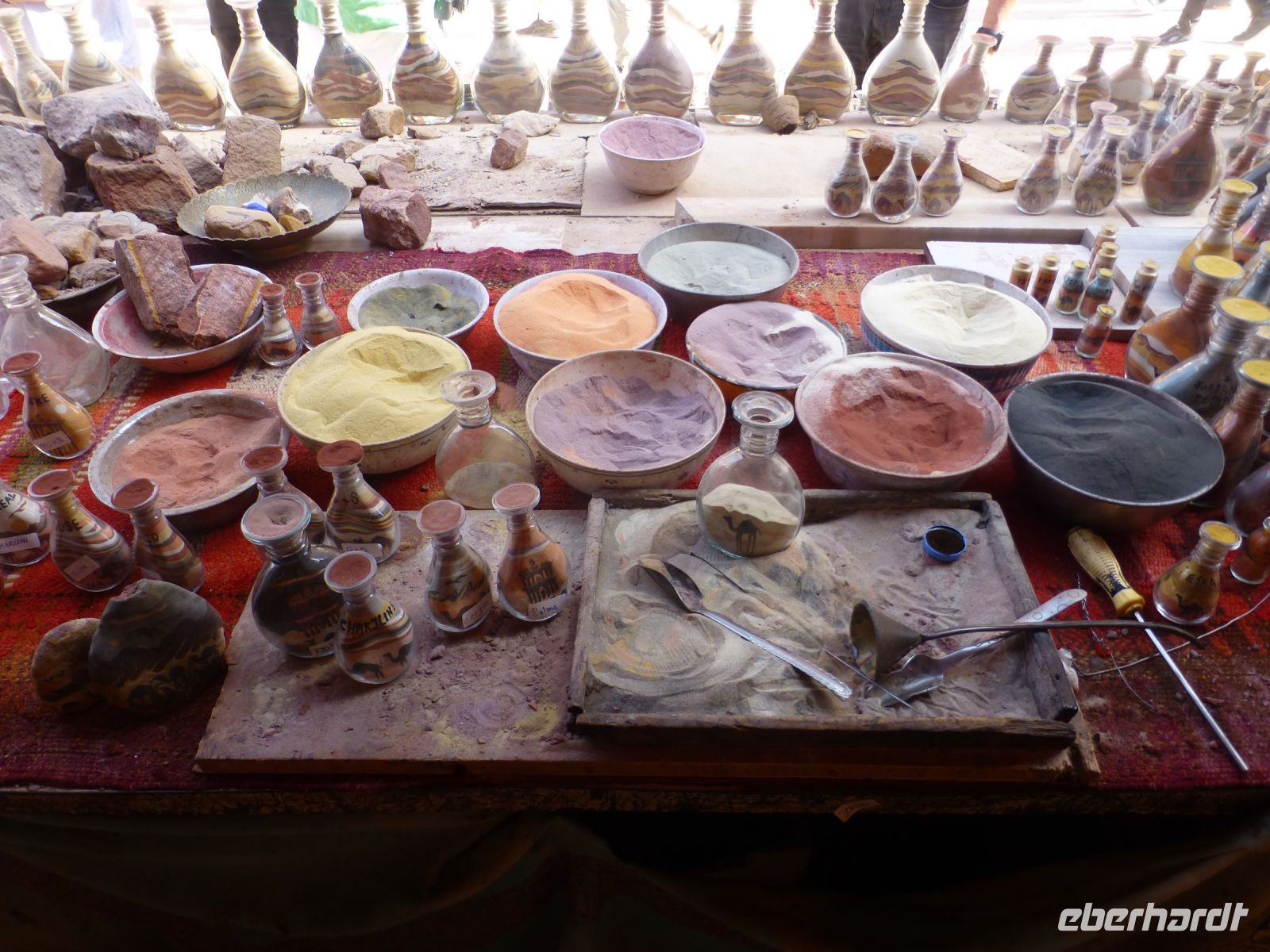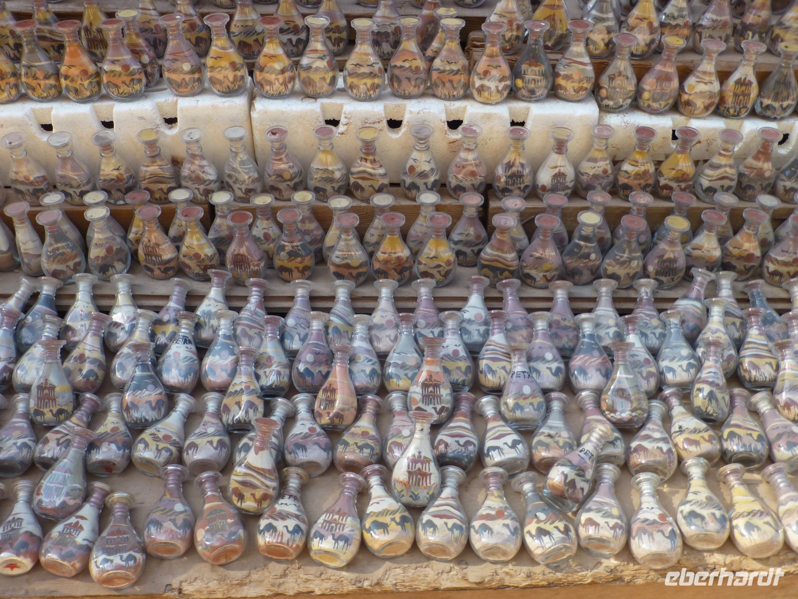 Es gibt viele Angebote an Souvenirs, doch ähneln sie sich alle. Um auf sich aufmerksam zu machen, ruft uns eine Beduinin zu „Gucke hier, gucke da, alles nur ein Dinar.“, was uns Schmunzeln lässt.