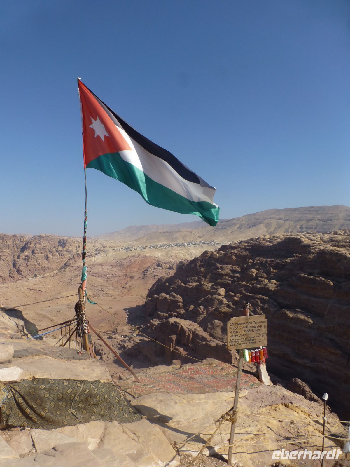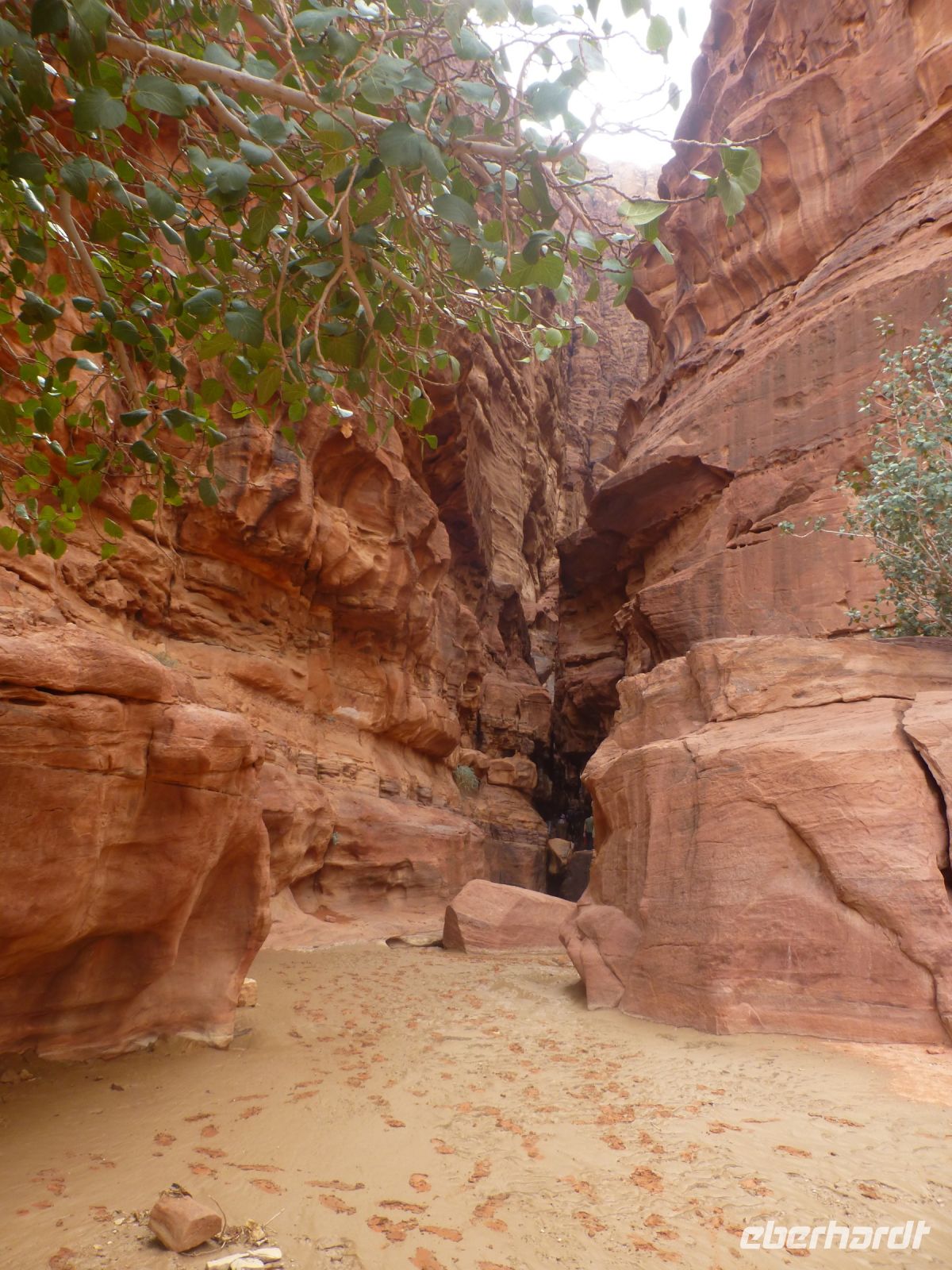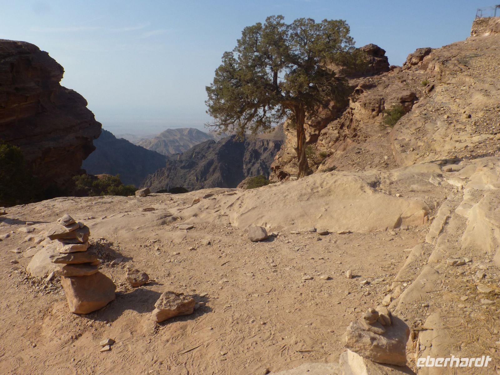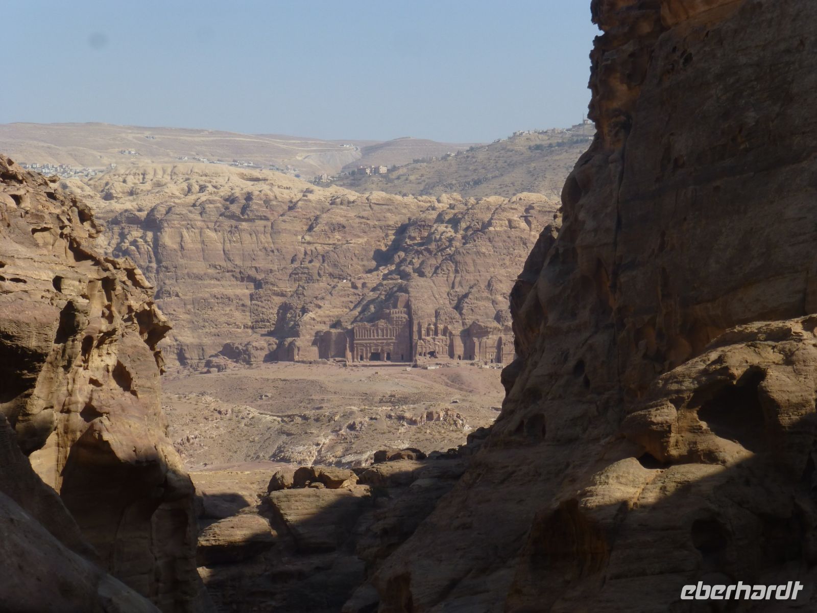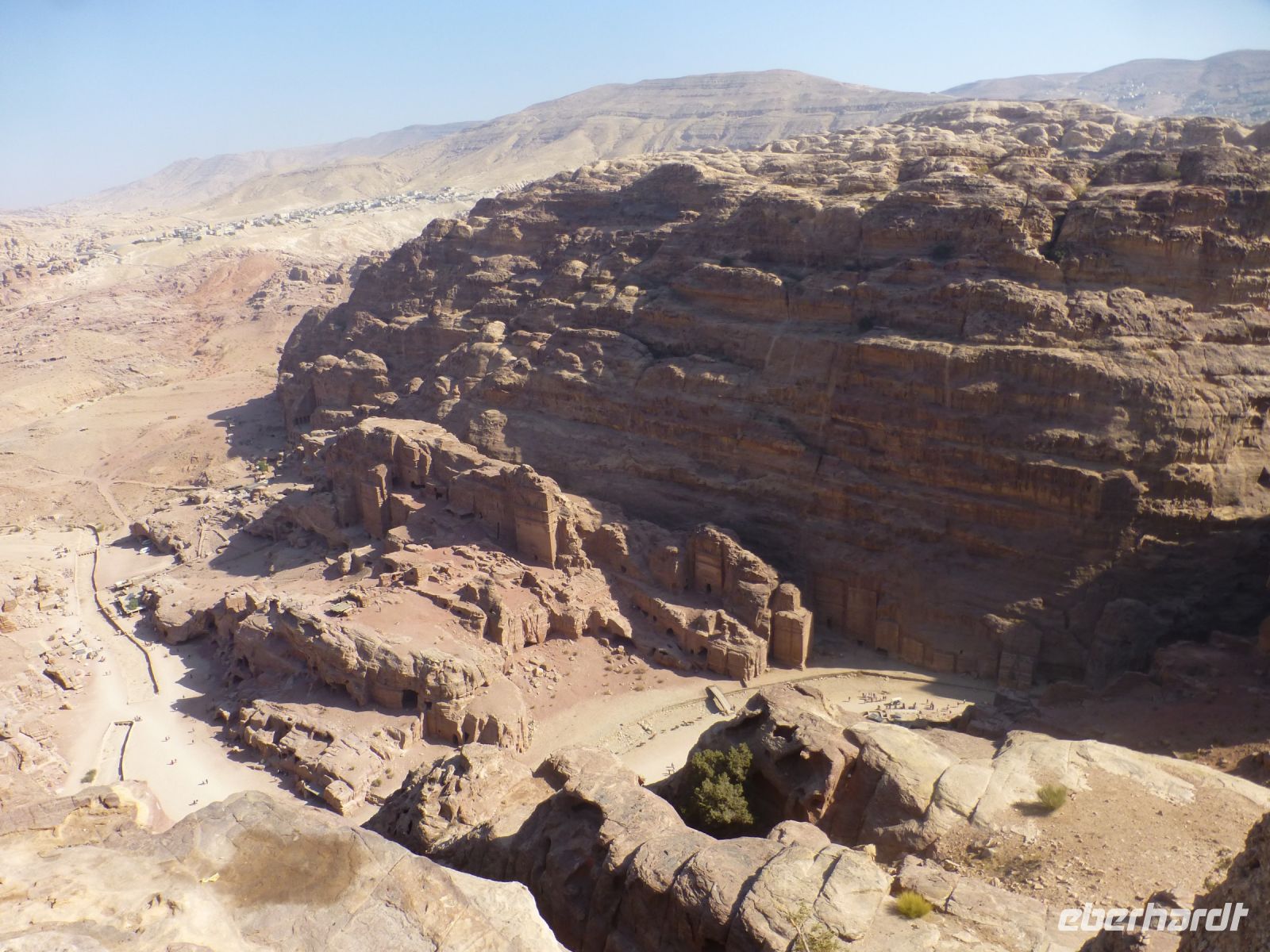 Ein paar Schritte weiter - und Stille umfängt einen. Der Blick geht von hier aus ins Wadi Araba, durch das teilweise die Grenze zwischen Jordanien und Israel verläuft. Wieder runter, den Weg durch die Stadt zum Siq, durch den Siq zum Hotel