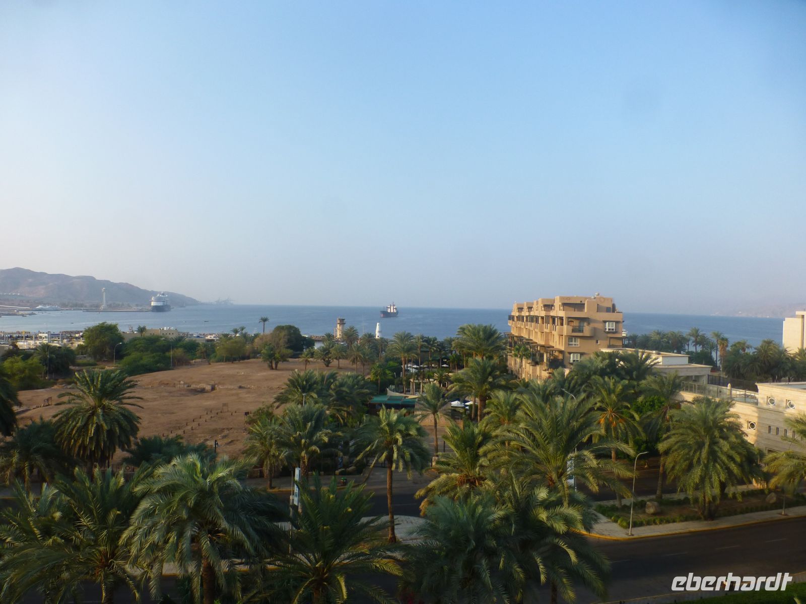 Wir steigen wieder in den Bus um, der uns nach Aqaba bringt, jener Ort, den Lawrence von Arabien von den Türken befreit hat. Viel ist davon nicht übrig geblieben. Die Stadt ist heute als Bade- und Touristenort angelegt, mit baumgesäumten Einfallstraßen. Hierüber erreichen wir schnell unser Mövenpick-Hotel. Rauf aufs Zimmer, rein in die Badehosen und dann ans Rote Meer.