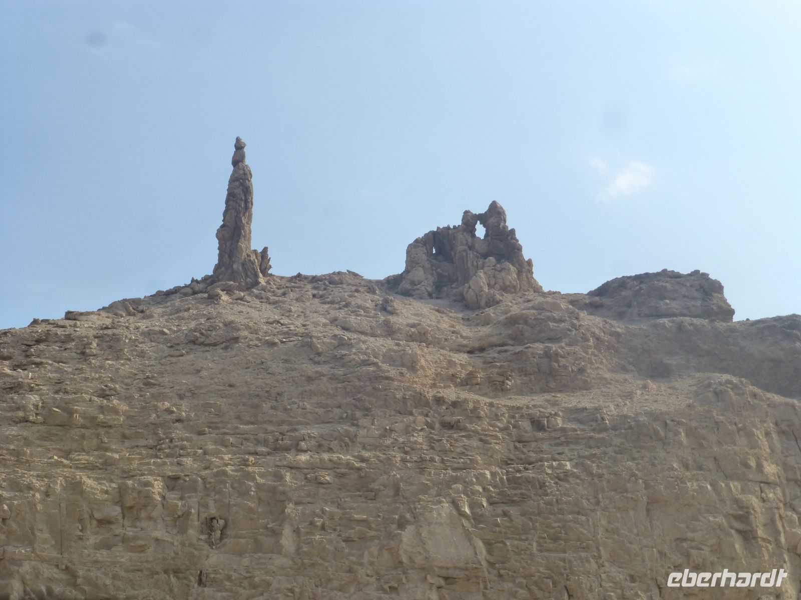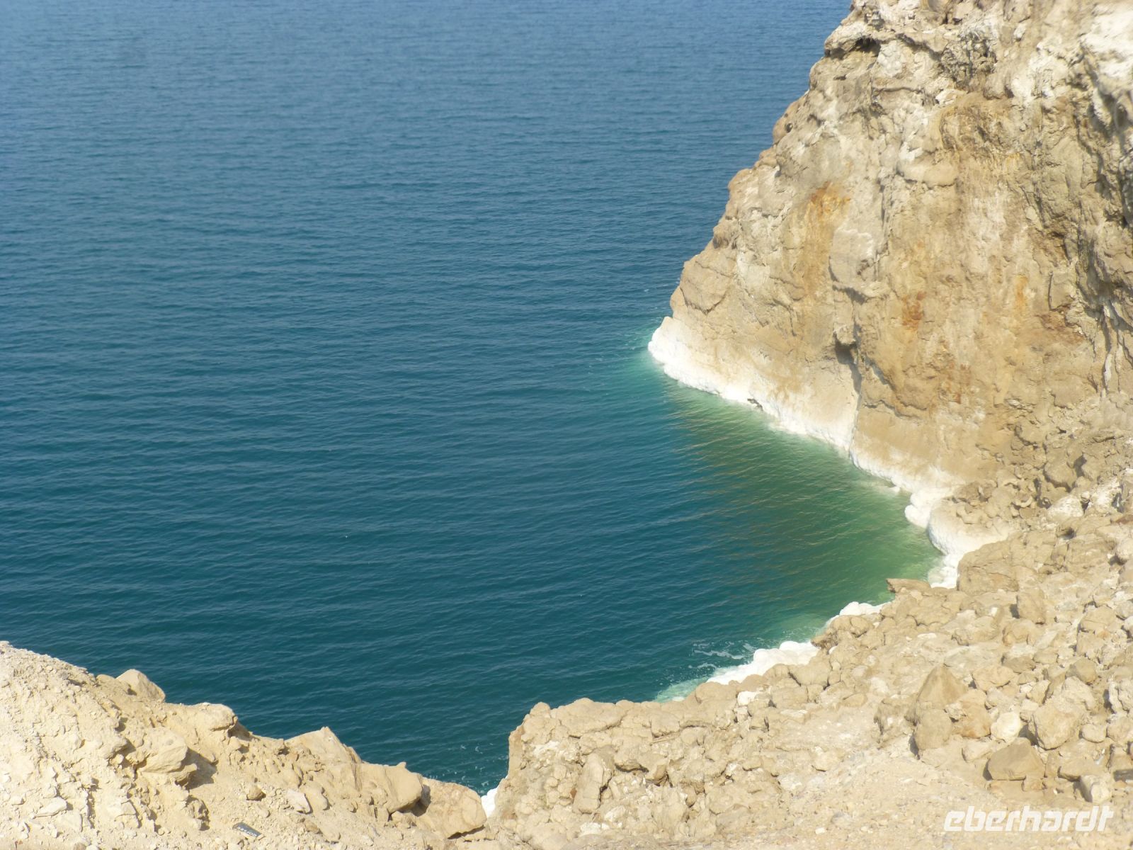 Wir erreichen einen Aussichtspunkt am Toten Meer. Gegenüber steht Frau Lot, die zu einer Salzsäure erstarrt ist. Sie wollte sich nach ihrer Heimat – Sodom - noch einmal umdrehen, ein letzter Blick zurück, was Gott verboten hat und so strafte er sie mit der Verwandlung. Der Gehorsam der Menschen ist Allah wie Gott gleichermaßen wichtig, wie auf dieser Reise wieder zu erfahren ist.