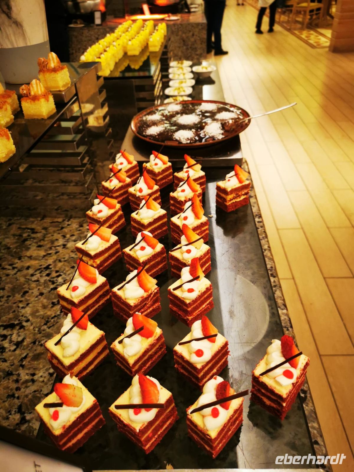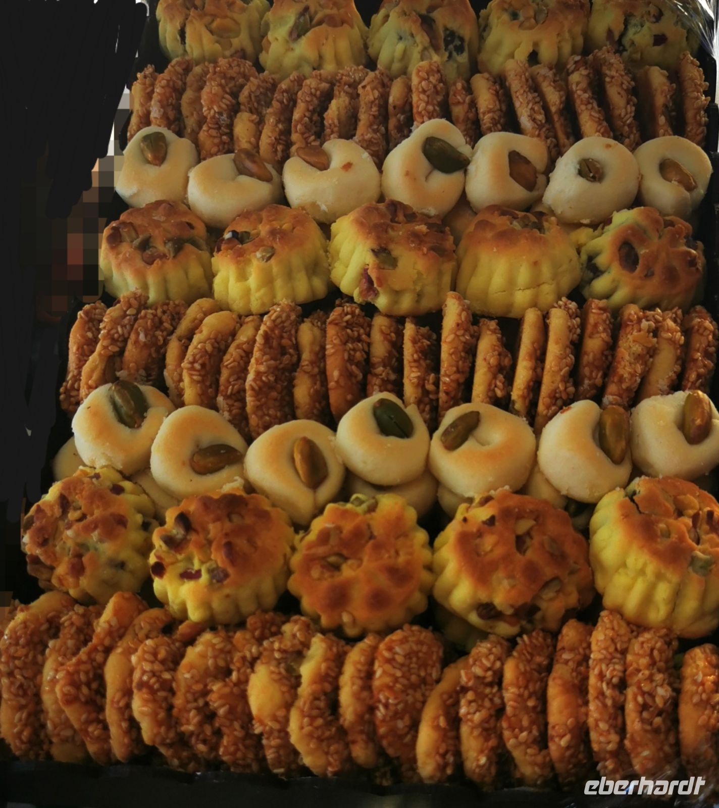 Zurück in unserem Hotel in Amman treffen wir uns am Abend wieder an einer langen Tafel und genießen das köstliche arabische Buffet. Besonders die leckeren Süßspeisen haben es uns angetan!