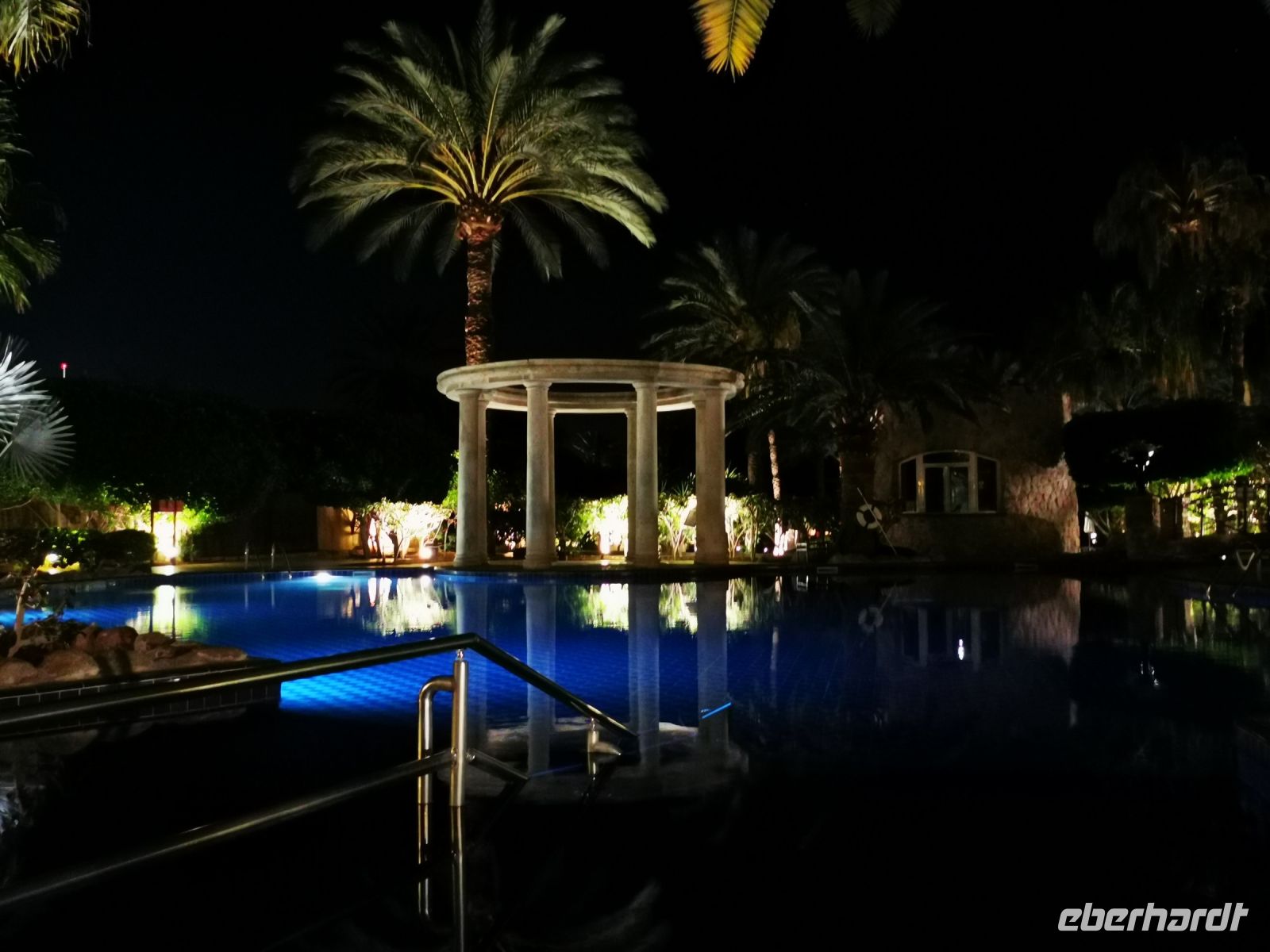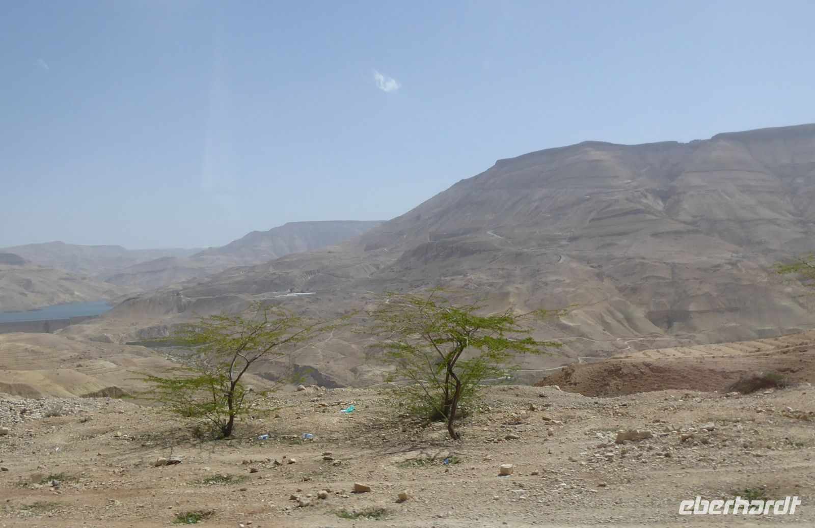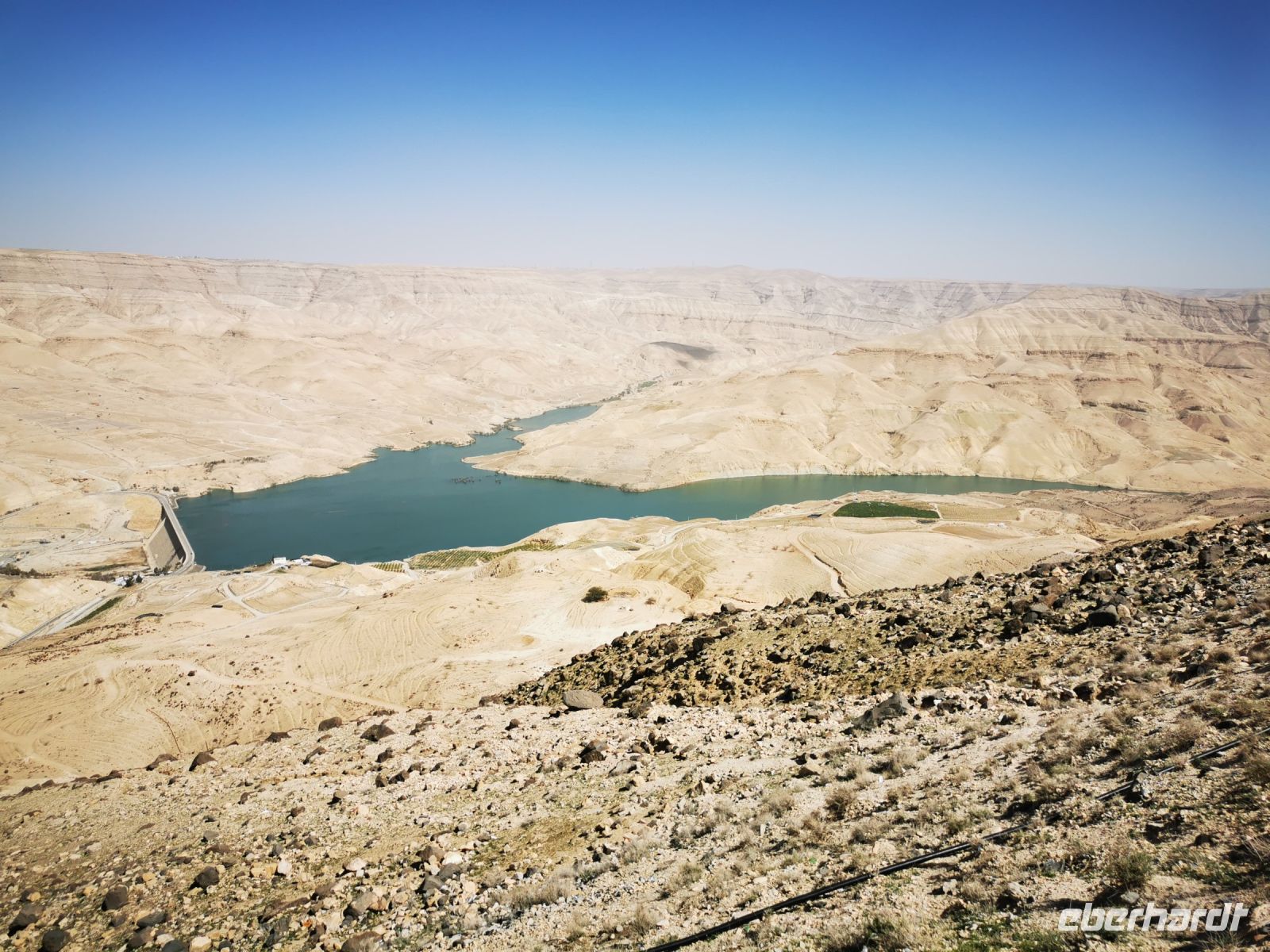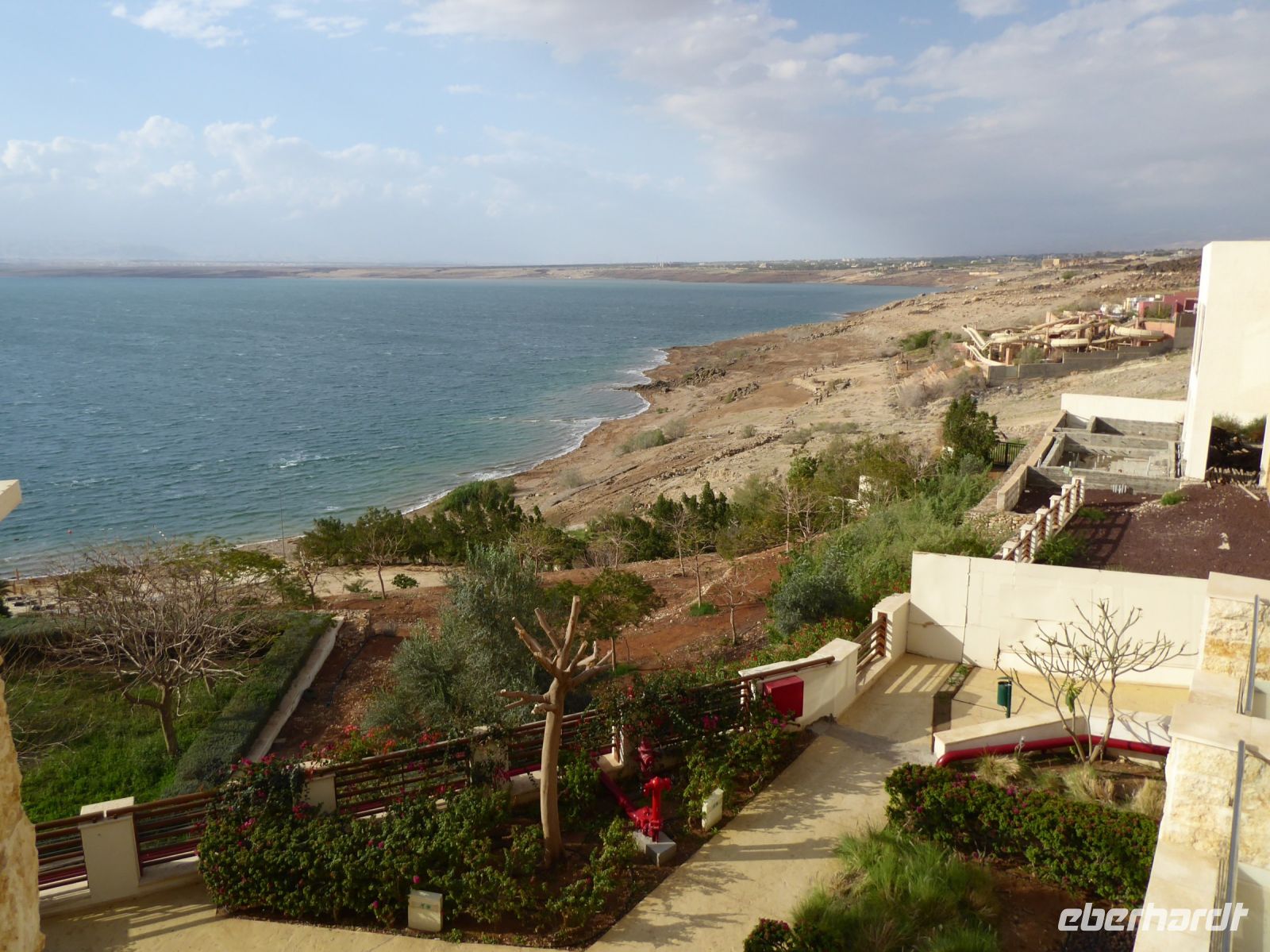 Unser heutiger Tag am Ende unserer Rundreise durch Jordanien stand ganz im Zeichen der Entspannung. In der wunderschönen Hotelanlage des Hilton Hotel in Swameh blieben keine Wünsche offen. Das Wetter war herrlich und die blumengeschmückte Anlage bot Vielfältiges für jeden Geschmack. Ob Whirlpool, 17° frischer Sommer Pool oder eine Massage im Wellnessbereich, jeder konnte nach seiner Facon glücklich werden. Das schönste Erlebnis aber war sicher das Bad im Toten Meer. Im 30 % gesättigten Salzwasser kann man sich einfach treiben lassen und bei einem Schwätzchen vergeht die Zeit im Nu. Doch halt, eines sollte man nicht vergessen zu Erwähnen, den Spaß den wir hatten, als wir uns von Kopf bis Fuß mit dem schwarzen Schlamm aus den Tiefen des Toten Meeres eingeschmiert hatten. Als kleine schwarze Monster stiegen wir wieder ins warme Wasser des Toten Meeres um mit zarte Kinderhaut wieder heraus zu steigen. Letzte Schlammreste entfernten wir bei einer herrlichen Dusche in unseren schönen Panoramazimmern, von denen aus wir einen herrlichen Blick über das Meer auf das gegenüberliegende Ufer bis Jerusalem und Jericho hatten. In allen unseren Unterkünften, selbst in der Wüste, stand uns schier unerschöpflich Wasser zur Verfügung. Ein Luxus, den man gar nicht hoch genug schätzen kann, in einem Land, das 70 % seines Wasserverbrauchs aus fossilen Grundwasserressourcen mit geringer Neubildungsrate deckt. In den letzten fünfzig Jahren hat sich die Bevölkerung Jordaniens verzehnfacht. Heute leben gut 11 Millionen Menschen in diesem Wüstenstaat, der eine Million Flüchtlinge aus Syrien und vor Corona zusätzlich 5 Millionen Touristen im Jahr beherbergte. Eine echte Herausforderung!