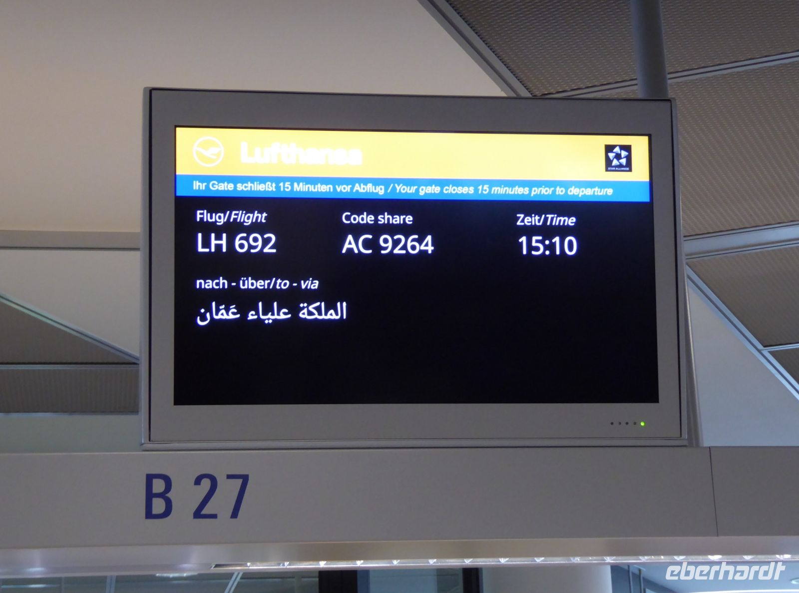 Aus allen Himmelsrichtungen kamen die Gäste unserer Reisegruppe angereist, aus Berlin, Dresden und Leipzig mit dem Flugzeug, mit dem Auto aus Saarbrücken sowie aus Mannheim und Halle mit der Bahn. Kurz vor dem Abflug treffen auch die letzten unserer Reiseteilnehmer am Gate 27 ein und nach einer kurzen Vorstellungsrunde wurde unser Flug auch schon aufgerufen. Das Abenteuer Jordanien konnte beginnen. Pünktlich um 15.10 Uhr startete unsere Lufthansa-Maschine und reichlich vier Stunden später erreichten wir nach einem angenehmen ruhigen Flug um 21:30 Uhr Ortszeit unseren Zielflughafen in Amman.