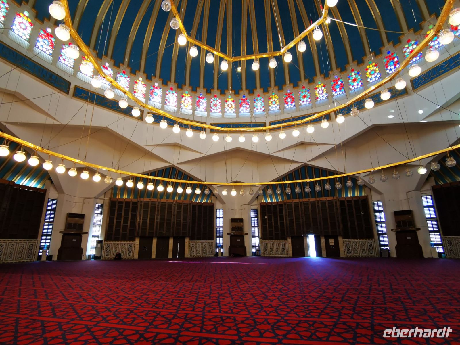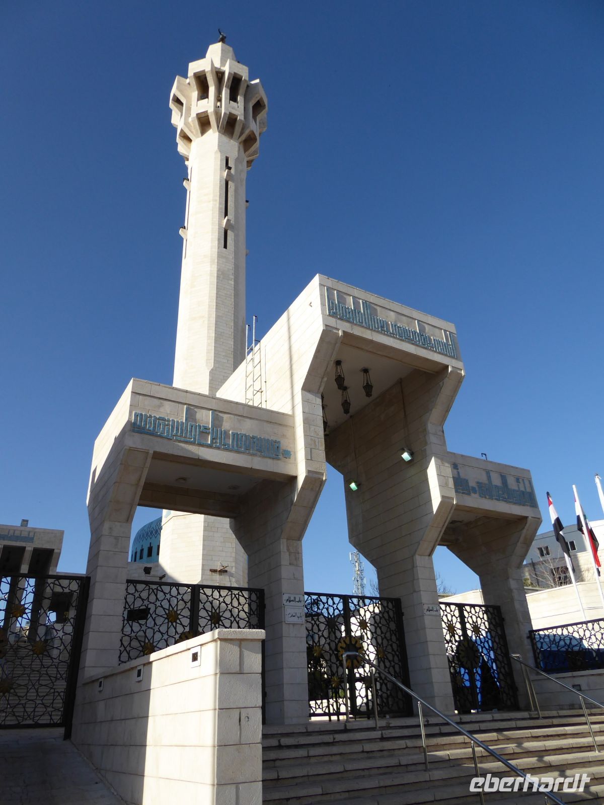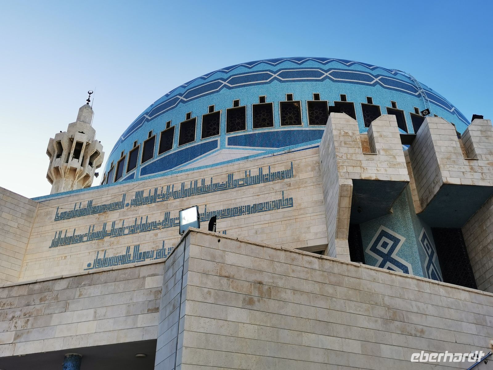 Unsere Rundfahrt ging weiter nach Norden, vorbei an Olivenhainen, blühenden Mandel- und Aprikosenbäumen sowie an Wäldern von Steineichen bis Ajlun. Oberhalb der Stadt auf 1100 Höhenmetern liegt die Burganlage Qala´at-ar-Rabad, ein herausragendes Beispiel islamischer Militärarchitektur. Die erste Festung ist 1183 auf Befehl Saladins von seinem Neffen und Kommandanten Izz al Din Osama als Teil einer groß angelegten militärischen Strategie errichtet worden, um die Expansion des Gebiets der Kreuzfahrer in der Region zu stoppen. Die Festung wurde jedoch nie genutzt, läutete doch die vernichtende Schlacht bei Hattin den Rückzug und Untergang der christlichen Kreuzfahrer im islamisch arabischen Machtgebiet ein. Danach machten wir uns wieder auf den Rückweg nach Amman, das wir staufrei eine gute Stunde später erreichten. Unterwegs unterhielt uns Ali mit einem arabischen Märchen, das ganz in der Tradition von Scheherazade immer weitererzählt werden kann, bis wir schließlich wieder in Amman ankamen. So blieb uns noch genügend Zeit die schönste Moschee des Landes die sogenannte Blaue Moschee in Amman zu besuchen. Das imposante Gebäude wurde im Jahre 1988 im Auftrag von König Hussein fertiggestellt und ist die größte und schönste Moschee des Landes. Auch hier erklärte uns Ali allerlei Wissenswertes über den Islam und die Gepflogenheiten in einer Moschee. Wir Frauen machten schon am Eingang der Anlage mit den strengen Regeln Bekanntschaft: alle Frauen mussten sich in ein bodenlanges schwarzes Gewand hüllen. Die nächste Überraschung hielt uns der Gebetsraum für Frauen bereit: streng getrennt von den Männern, beten sie in einem kleinen Raum, verbunden mit dem Iman per Videoschalte. Der Hauptraum der Moschee, der für das Gebet den Männern vorbehalten ist, ist prunkvoll ausgestattet, der Leuchter mit Sprüchen zum Lobe Allahs verziert und auf dem Boden liegt dicker, weicher Teppich. Alles wirkt sehr friedlich und ruhig. Da bis jetzt der Koffer einer unserer Mitreisenden immer noch nicht aufgetaucht ist, machten wir uns nach diesem langen Ausflugstag mit Ali auf den Weg in die Altstadt, um in den Märkten die dringend benötigten Kleidungsstücke und einen kleinen Koffer zu kaufen. Doch welche Überraschung: als wir im Hotel ankamen erfuhren wir die Frohbotschaft, dass der vermisste Koffer wohlbehalten auf das Zimmer gebracht wurde. Bei einem wunderbaren Buffet am Abend und leckerem Wein aus der Region erholten wir uns von den Strapazen dieses wunderschönen Ausflugstags!