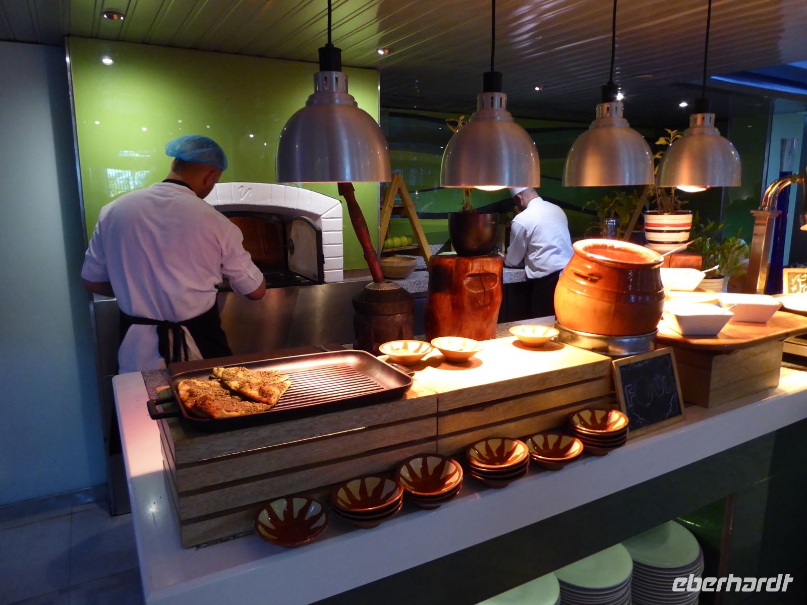 Am Abend traf unsere gesamte Reisegruppe im Speisesaal zusammen und wir genossen die leckeren Angebote des reichhaltigen Buffets. Auch Ali, unser stets freundlicher und gut gelaunter Begleiter der letzten Tage, gesellte sich zu uns. Der Abend bis zu unserer Abreise war noch lang und so verabschiedeten wir uns hier gemütlich von Ali und bedankten uns alle herzlich für die schönen Tage, die vielen Informationen, Geschichten und Märchen mit denen er uns in den vergangenen Tagen verwöhnt hat. Draußen zogen Wolken auf, und ein weiteres Mal erlebten wir ausgiebigen Regen in einer sonst eher trockenen Region.