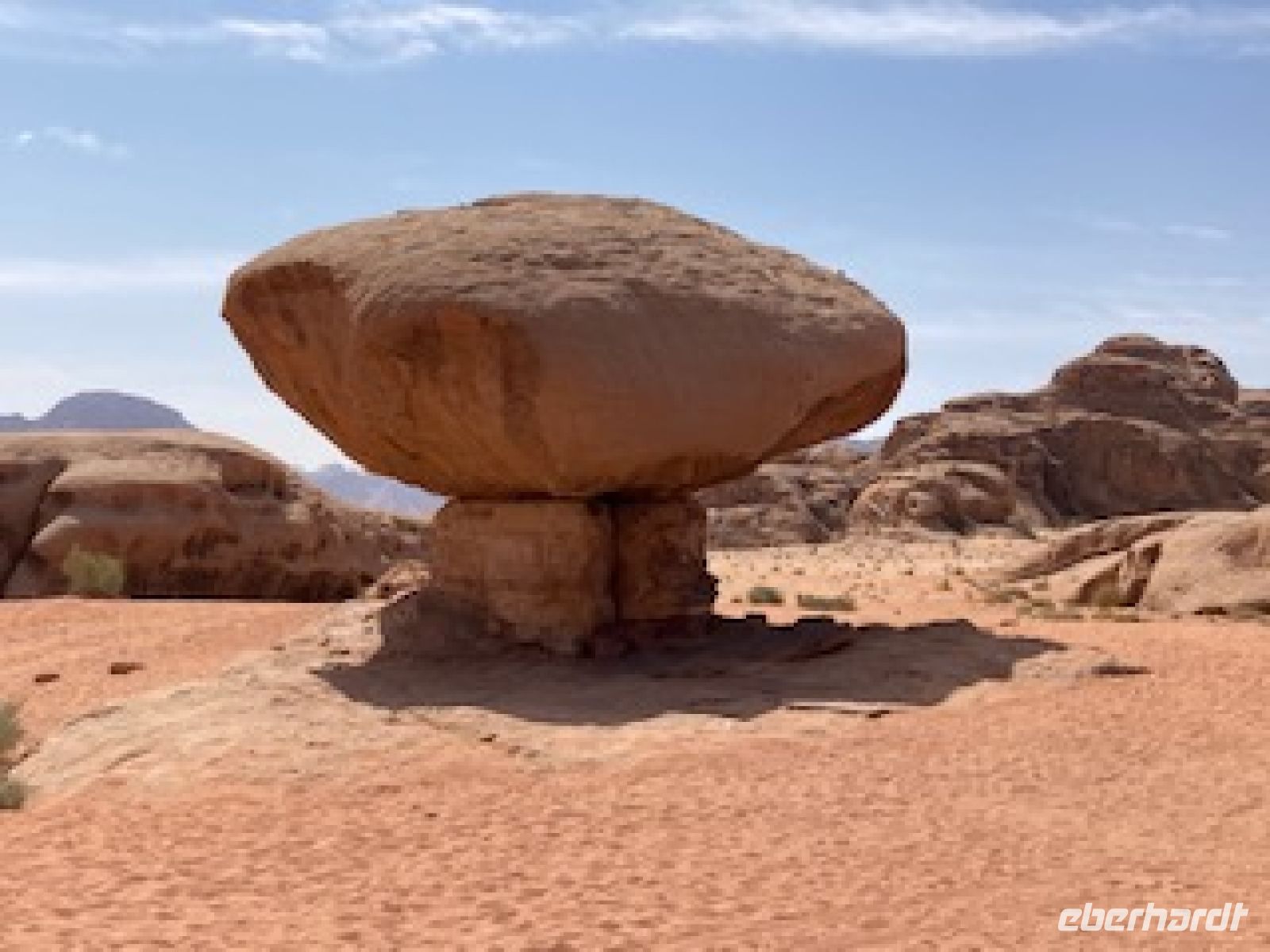 Früh am Morgen macht die wirklich schöne dreistündige Jeepfahrt durch das grandiose Wadi Rum-Areal mit seinen atemberaubenden Ausblicken die ungewohnte Nacht schnell vergessen, zumal wir fast alleine in dieser unberührten Welt unterwegs sind. Am Visitor Center erheben sich auch die von Lawrence beschriebenen Felsen, die 7 Säulen der Weisheit. Überhaupt war hier das Operationsgebiet des englischen Osmanenbekämpfers. Als Sprengstoffexperte hat er mehrfach dafür gesorgt, die wichtige Hedjaz-Bahn zu sabotieren. In seiner ersten Schlacht war er allerdings - anders als im Monumentalfilm - so aufgeregt, dass er versehentlich sein Dromedar erschoss und beim Sturz in eine tiefe Ohnmacht fiel, die ihn die Schlacht verschlafen ließ.