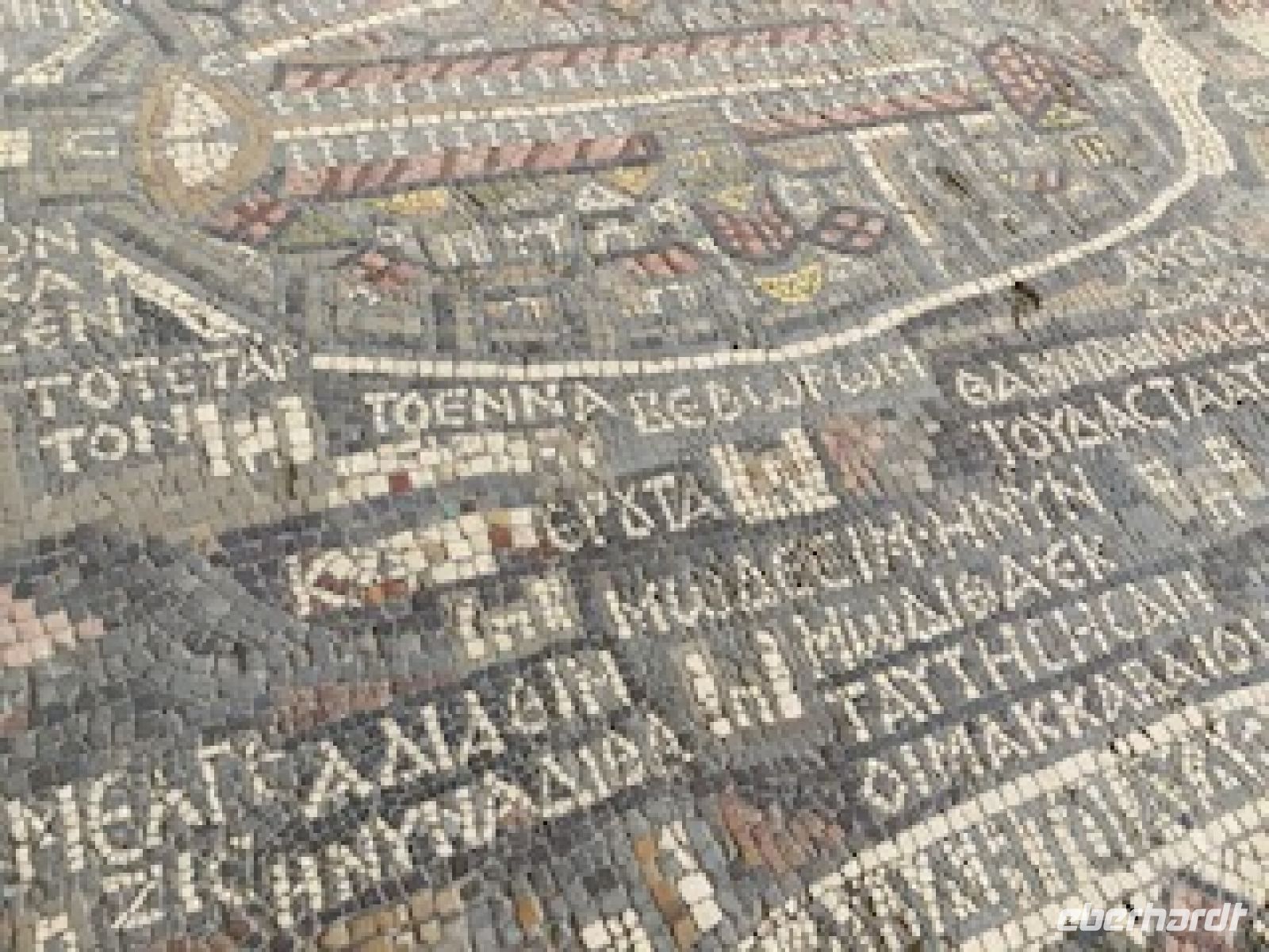 Zum ersten Mal müssen wir etwas früher aufstehen, um diesen mit vielen Sehenswürdigkeiten vollgepackten Tag bewältigen zu können. Zunächst geht es zum geschichtsträchtigen Berg Nebo, auf dessen Spitze Moses beim Auszug aus Ägypten erstmals das gelobte Land erblickte und dann dort verstarb.. Auch wir können, vorbei an dem rostigen Kreuz mit der Moses-Schlange, bis nach Israel blicken, erkennen die uralte Stadt Jericho und machen uns dann auf den Weg nach Madaba, der Stadt der exzellenten Mosaikkünstler. Hier besichtigen wir in der St. Georgskirche die weltberühmte Mosaik-Landkarte, die fast maßstabsgetreu die wichtigsten Städte und Landschaften des 6. Jahrhunderts abbildet.