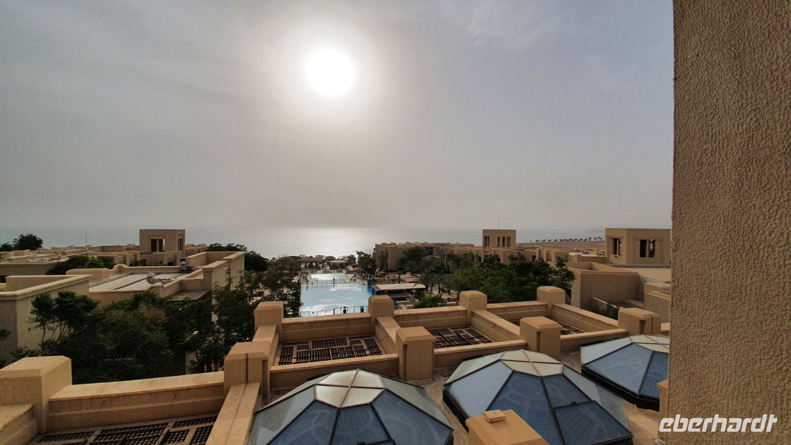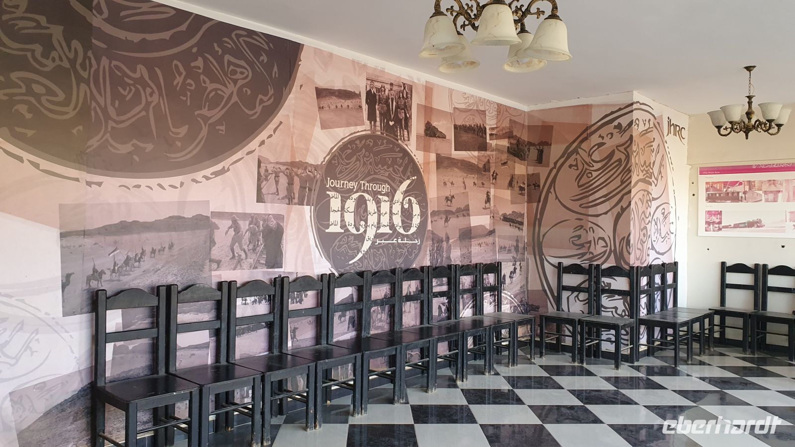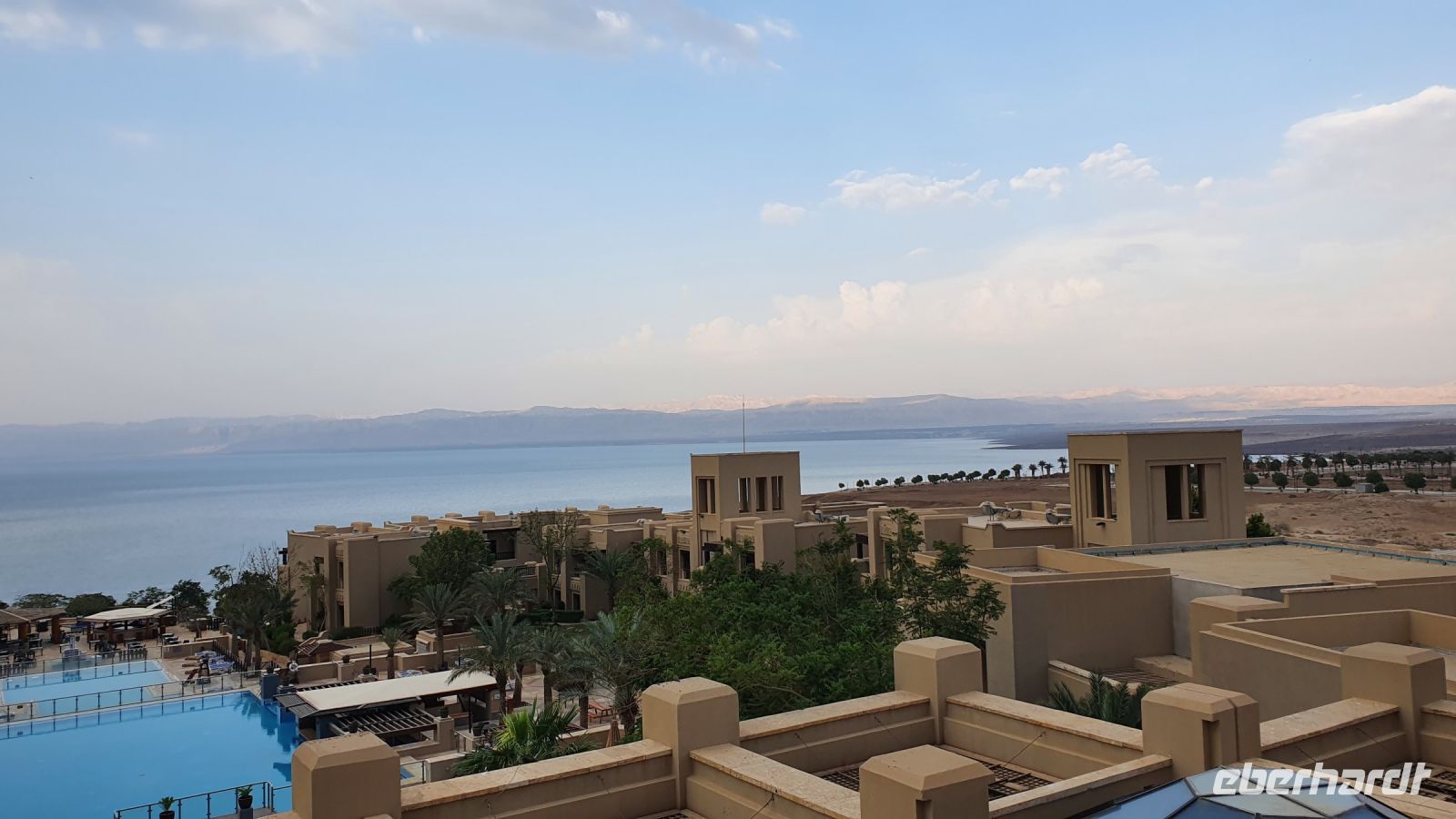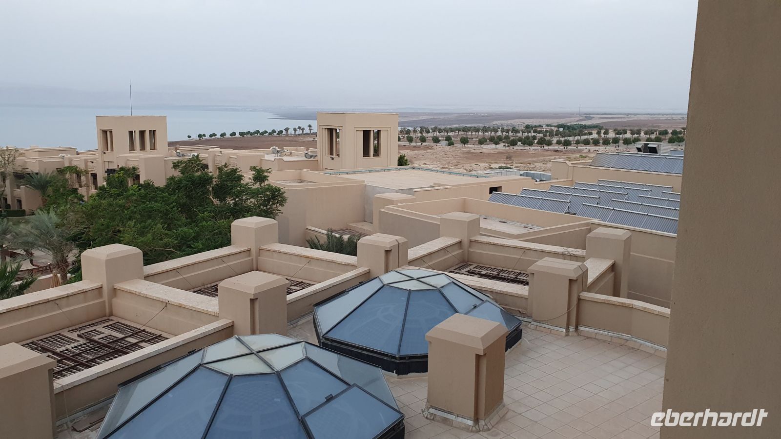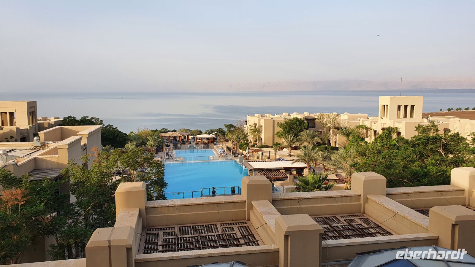 Der Wecker klingelte sehr sehr früh und bereits 6 Uhr trafen wir uns in der Dunkelheit vor dem Camp bei den Kamelen. In Gruppen immer mit einem Kamelführer ritten wir los in die Morgendämmerung. An einer exponierten Stelle stiegen wir ab und warteten auf den Sonnenaufgang. Derweil wurden viele Fotos geschossen und in einer Kamelgruppe war ein 3 Monate altes Babykamel mit dabei - der Star der Fotografen. Wir waren so beschäftigt mit den Tieren, dass der Sonnenaufgang in den Hintergrund trat. Glücklich und zufrieden waren wir alle und der Rückweg in der goldenen Morgensonne unvergesslich. Wir dankten unseren Kamelführern und begaben uns zum Frühstück im Camp. Dann wurden die letzten Sachen eingepackt, die Koffer im Bus verstaut und wir durften noch einmal die 3 Jeeps besteigen und durch die Wüste zum Lawrence House und zur großen Felsbrücke fahren. Dort wurde wieder viel fotografiert und einige aus unserer Gruppe kletterten sogar hinauf auf die Brücke. Dann fuhren wir zurück durch die Wüste und stiegen im Nichts aus. Weiter wanderten wir 2 Stunden durch den Wüstensand bis in die Zivilisation, wo uns der Busfahrer erwartete. Im Bus gab es frische jordanische Orangen und viel Wasser. Damit endete unser Ausflug im Wadi Rum und nun stand eine lange Rückfahrt bis zum Toten Meer an. Unterwegs machten wir einen Fotostopp beim Bahnhof Wadi Rum und eine Gesundheitspause an der Autobahn. Beim Hinabfahren zum Toten Meer konnten wir noch einmal den Sonnenuntergang beobachten und erreichten unser Holiday Inn Resort am Toten Meer bei Dunkelheit. Gleich nach dem Checkin gingen wir zum Abendessen. Es gab ein überaus reichliches Buffet, aber auch einen gewaltigen Schallpegel im Restaurant. Das waren wir nicht mehr gewöhnt, nach der absoluten Ruhe im Wüstencamp.