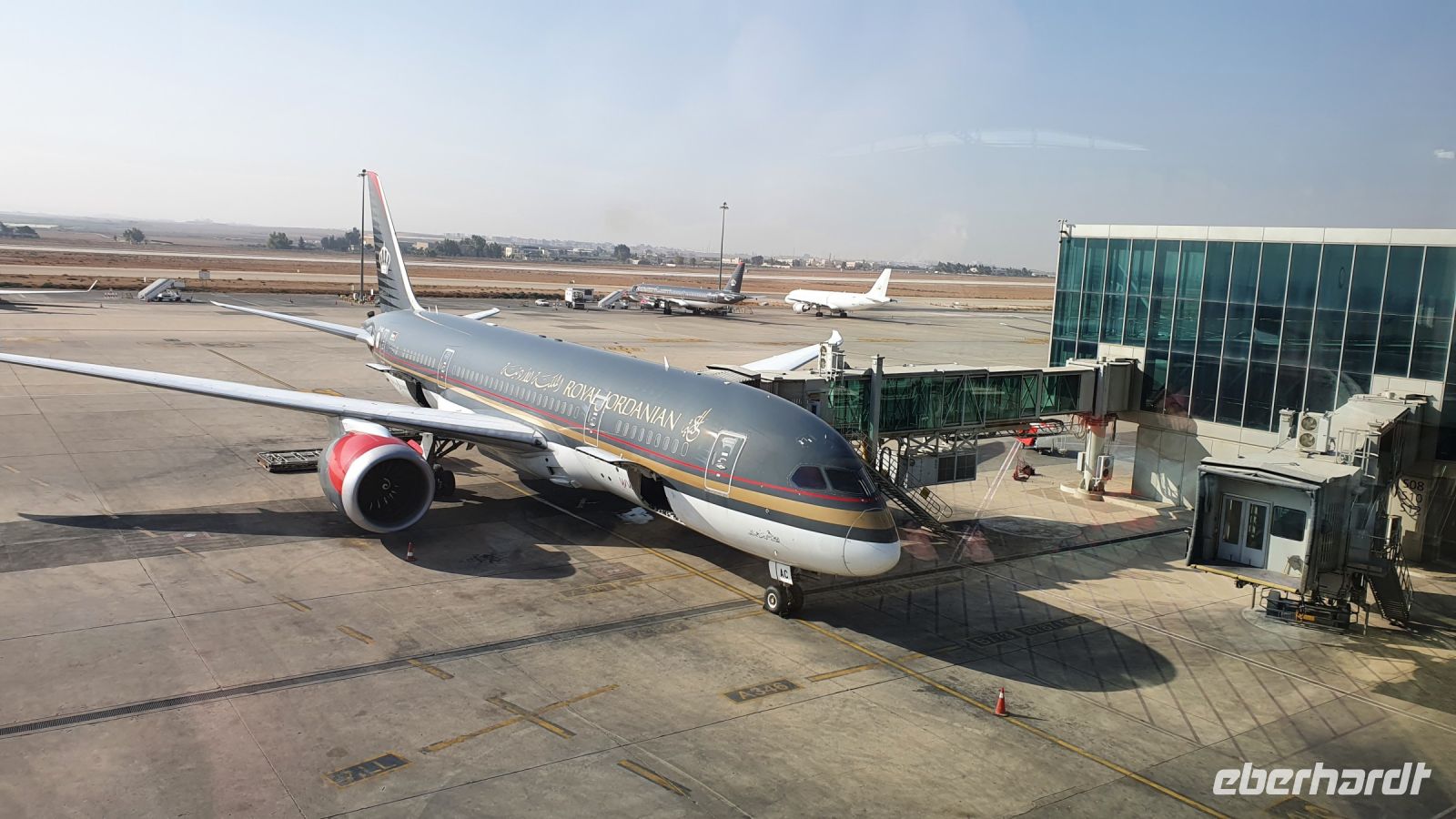 Nach dem Frühstück wurden unsere Koffer in den Bus gebracht und zu unserer großen Freude war Hamad wieder unser Fahrer. Unser Flughafen Assistent war ebenfalls schon ab Hotel bei uns und so konnten wir ganz entspannt die letzte Busfahrt nach Amman zum Flughafen geniessen. Mahmut organisierte für unsere Gruppe einen separaten checkin Schalter und so ging alles schnell und umkomlpiziert von statten. Unsere Flüge mit Royal Jordanian nach Frankfurt und Berlin waren pünktlich und unterwegs gab es wieder eine sehr gute Versorgung mit Speisen und Getränken. Am Flughafen BER mussten wir 1 Stunde auf unsere Koffer warten, aber sie kamen alle an. Nun hiess es Abschied nehmen nach einer erlebnisreichen Reise mit wunderbaren Menschen.