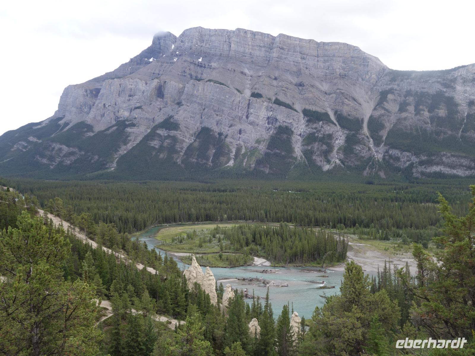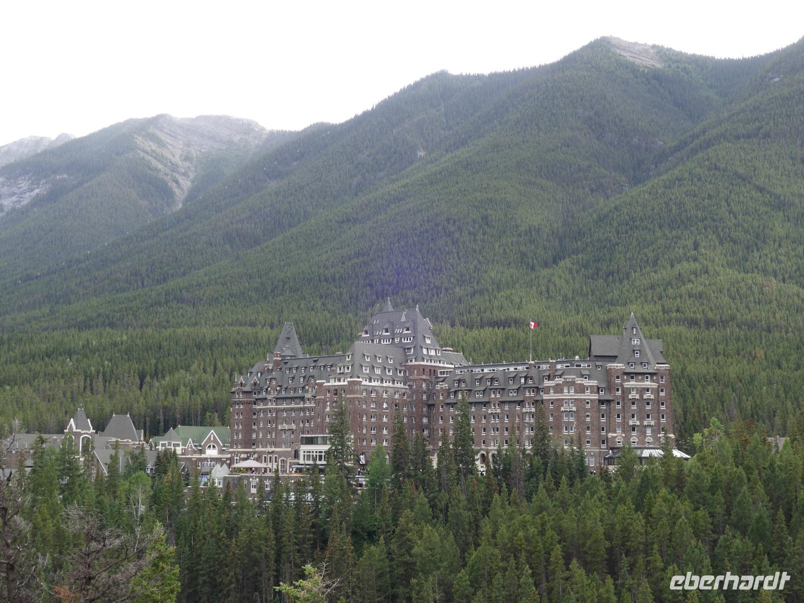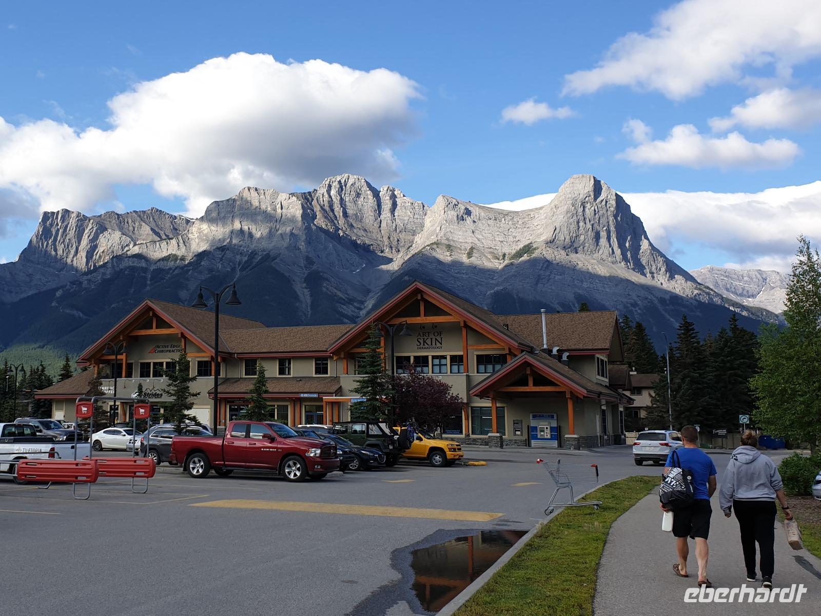 Weiter geht es für uns in die Stad nach Banff selbst. Der kleine Ort mit ca. 7.500 Einwohnern liegt malerisch eingebettet in einem Tal umgeben von den vier Gipfeln des Mount Norquay (2.523m) und Mount Rundle (2.948m) sowie den Sulphur (2.451m) und Cascade Mountain (2.998m). Das kleine Städtchen lädt zum schlendern und Kaffee trinken ein. Im Winter zieht es vor allem Skifahrer hierher. Insbesondere das Luxus Schloss Hotel „Banff Springs Hotel" zieht immer wieder Leute in seinen Bann.