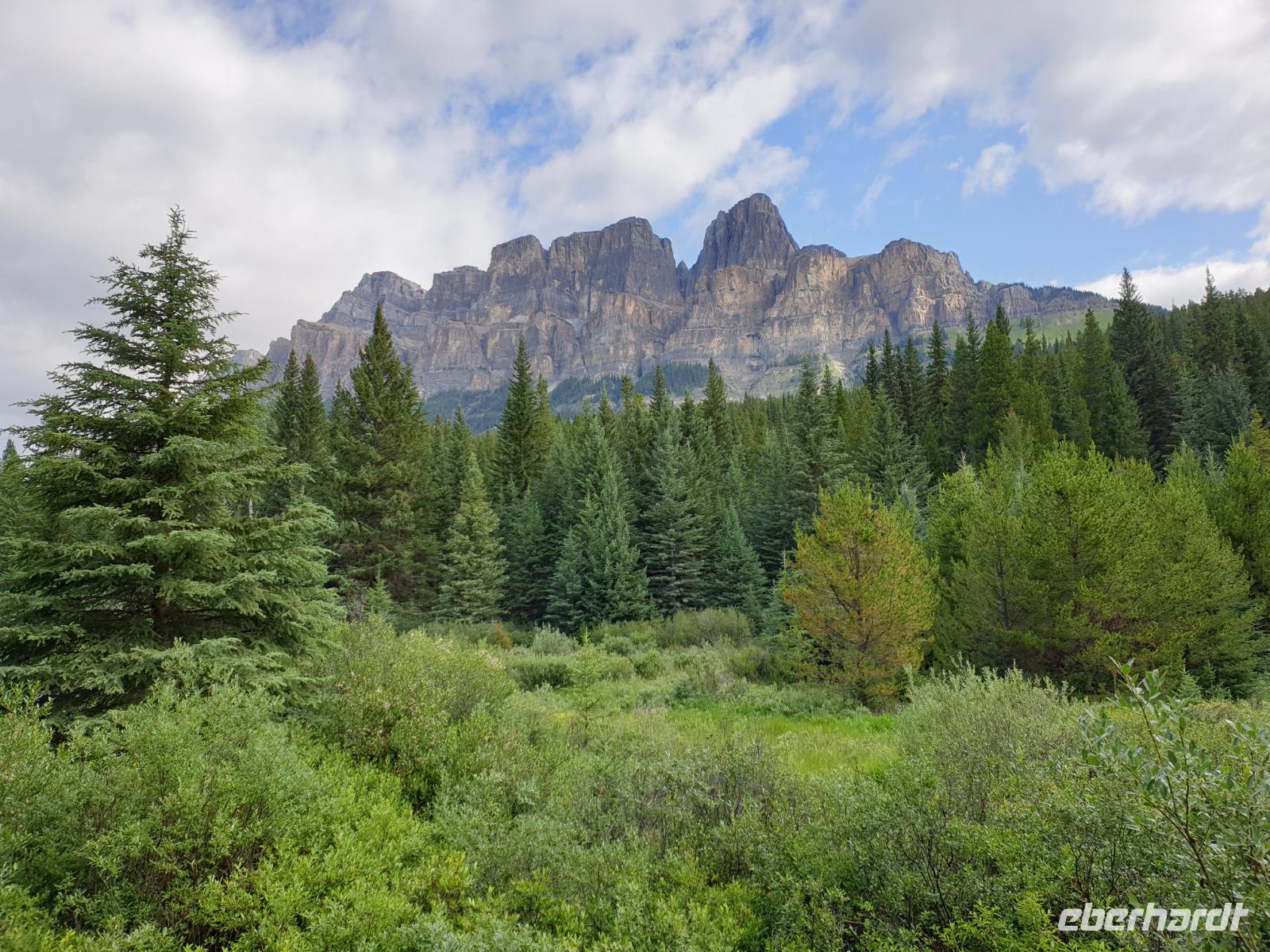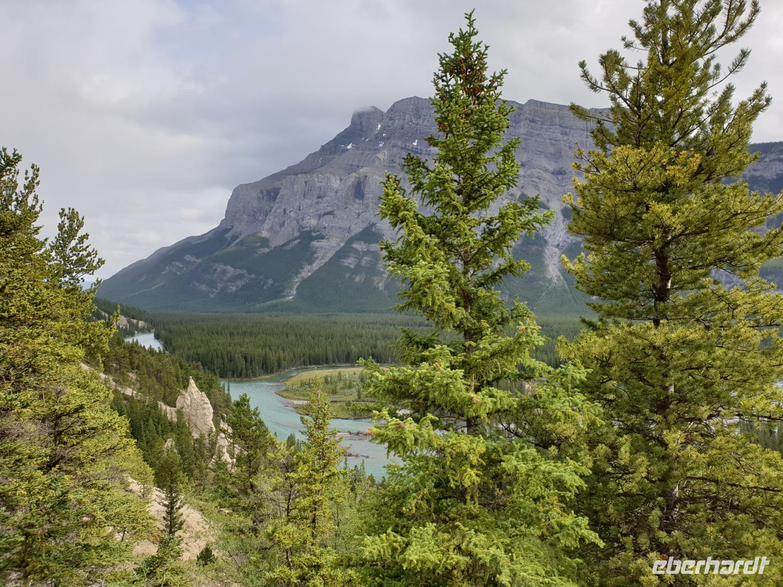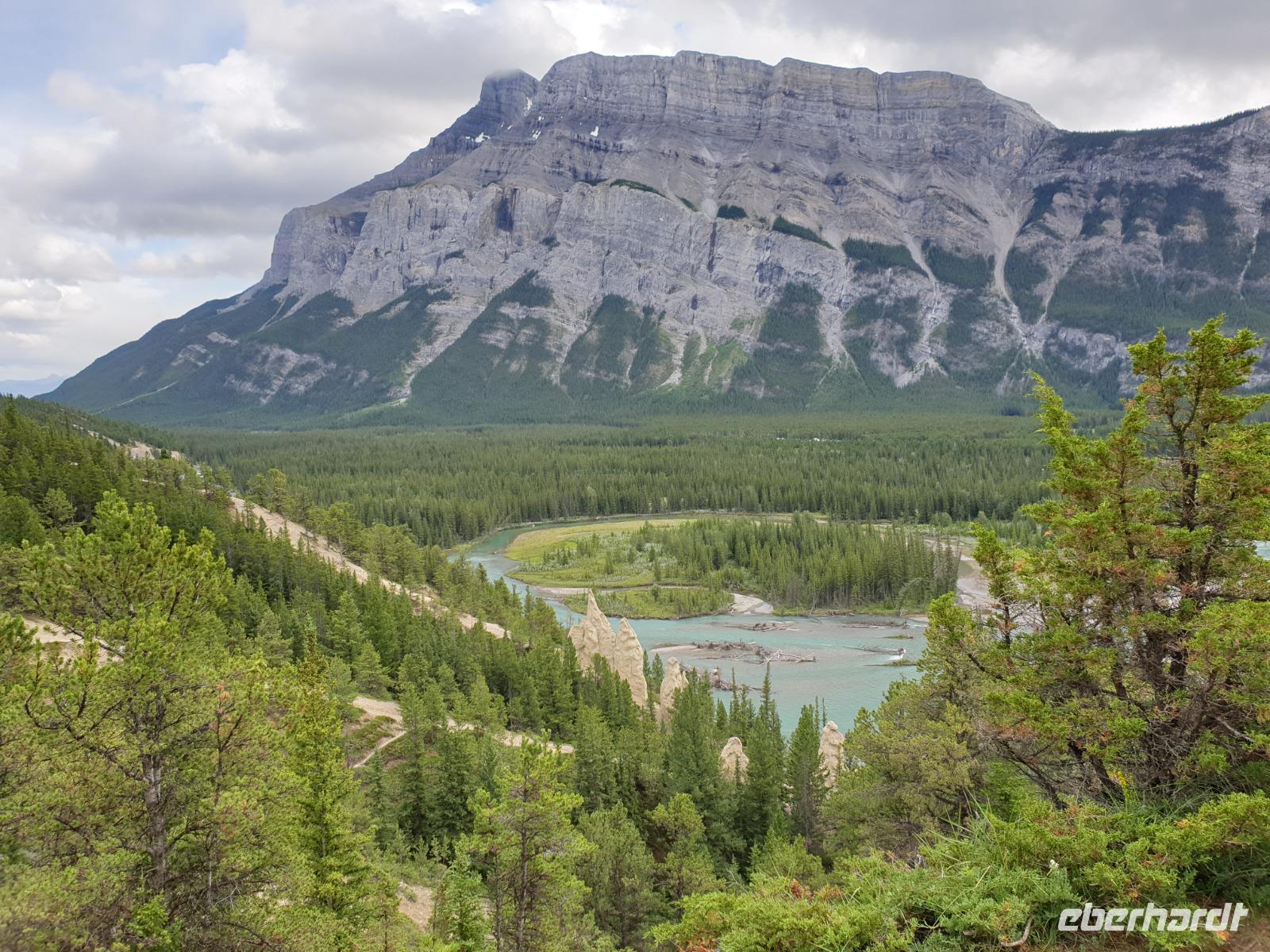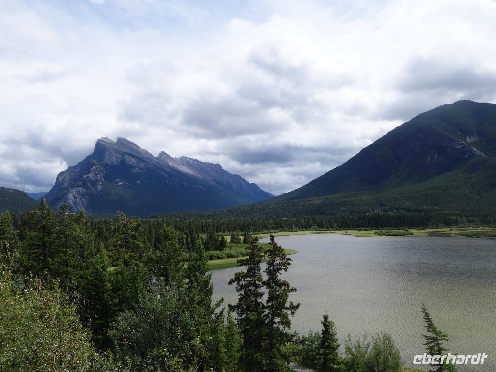 Weiter geht es für uns in die Stad nach Banff selbst. Der kleine Ort mit ca. 7.500 Einwohnern liegt malerisch eingebettet in einem Tal umgeben von den vier Gipfeln des Mount Norquay (2.523m) und Mount Rundle (2.948m) sowie den Sulphur (2.451m) und Cascade Mountain (2.998m). Das kleine Städtchen lädt zum schlendern und Kaffee trinken ein. Im Winter zieht es vor allem Skifahrer hierher. Insbesondere das Luxus Schloss Hotel „Banff Springs Hotel" zieht immer wieder Leute in seinen Bann.