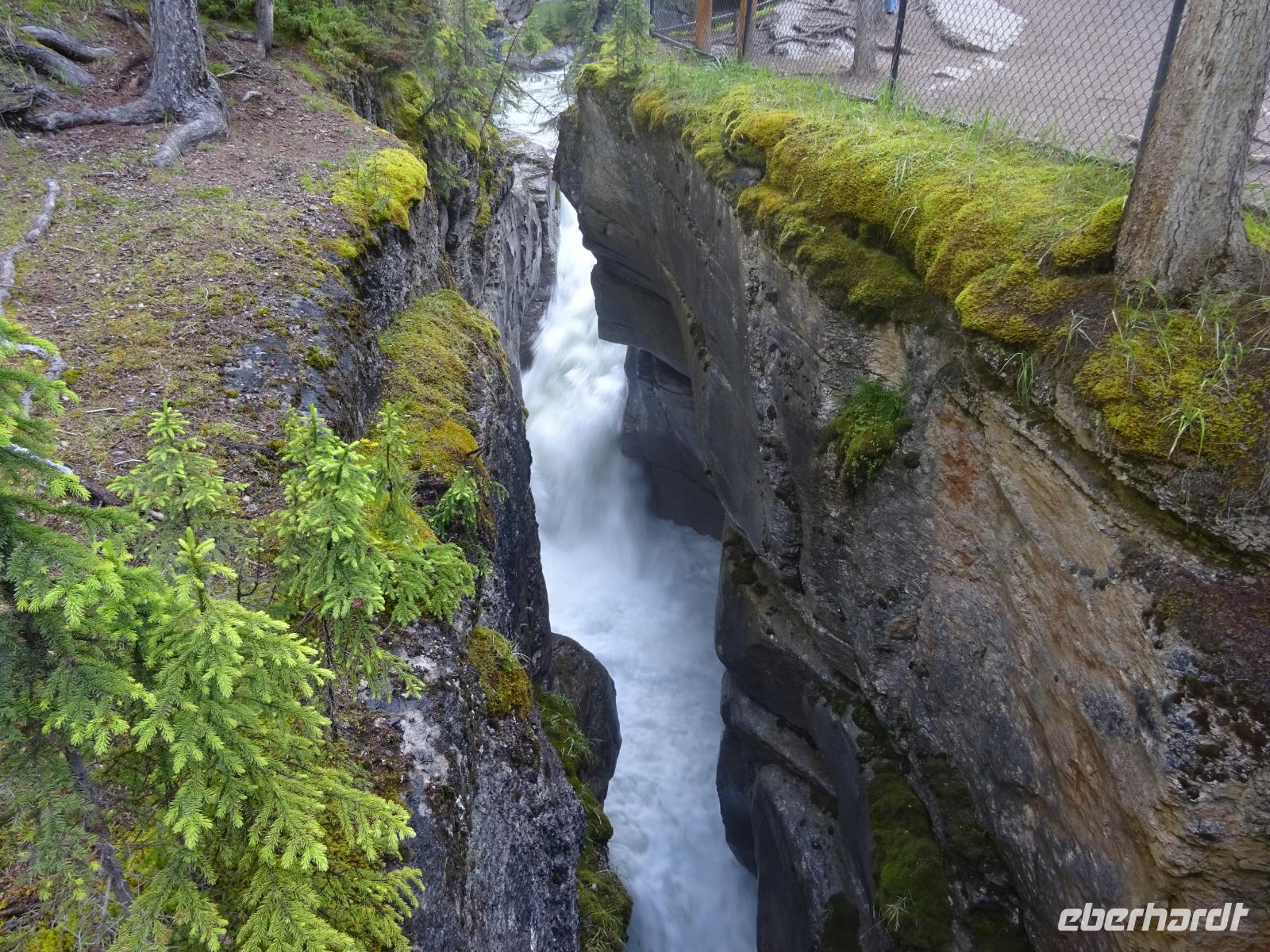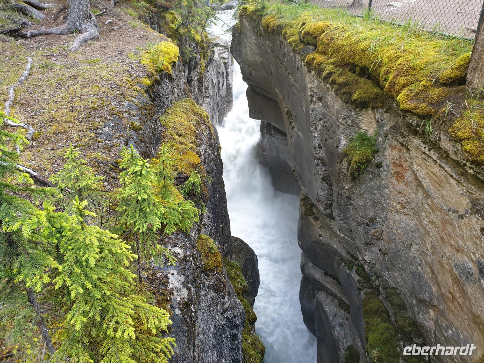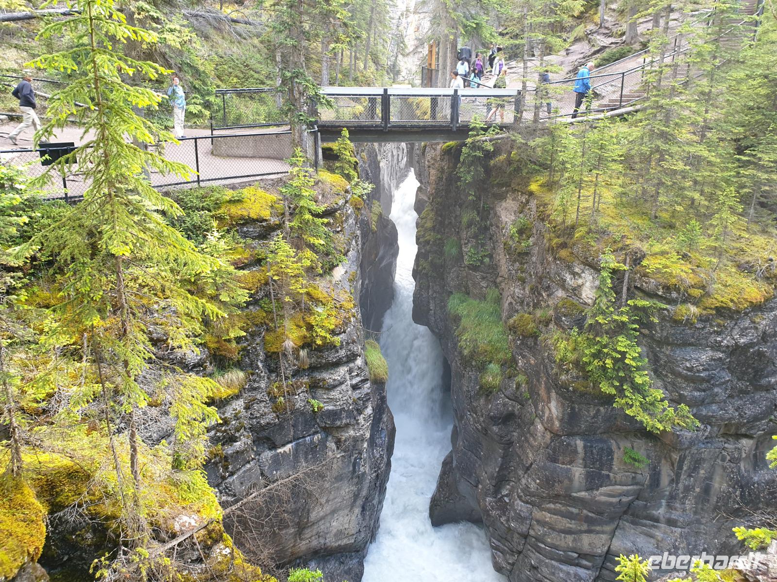 Gut erholt und ohne viel Moskito Blessuren (in der Dämmerung und direkt am Fluss sind wir ein gefundenes Fressen) geht es für uns zum Maligne Canyon im nördlichen Teil des Jasper Nationalparks. Dieser Zwischenstopp ist sehr lohnend und vom Parkplatz geht es in eine pittoreske Kalksteinschlucht. Mehrfach überqueren wir den engen Canyon. Tief unter uns tost der Maligne River. Der Canyon wurde bereits während der Eiszeit geformt und wird noch heute von Gletscherwasser gespeist.