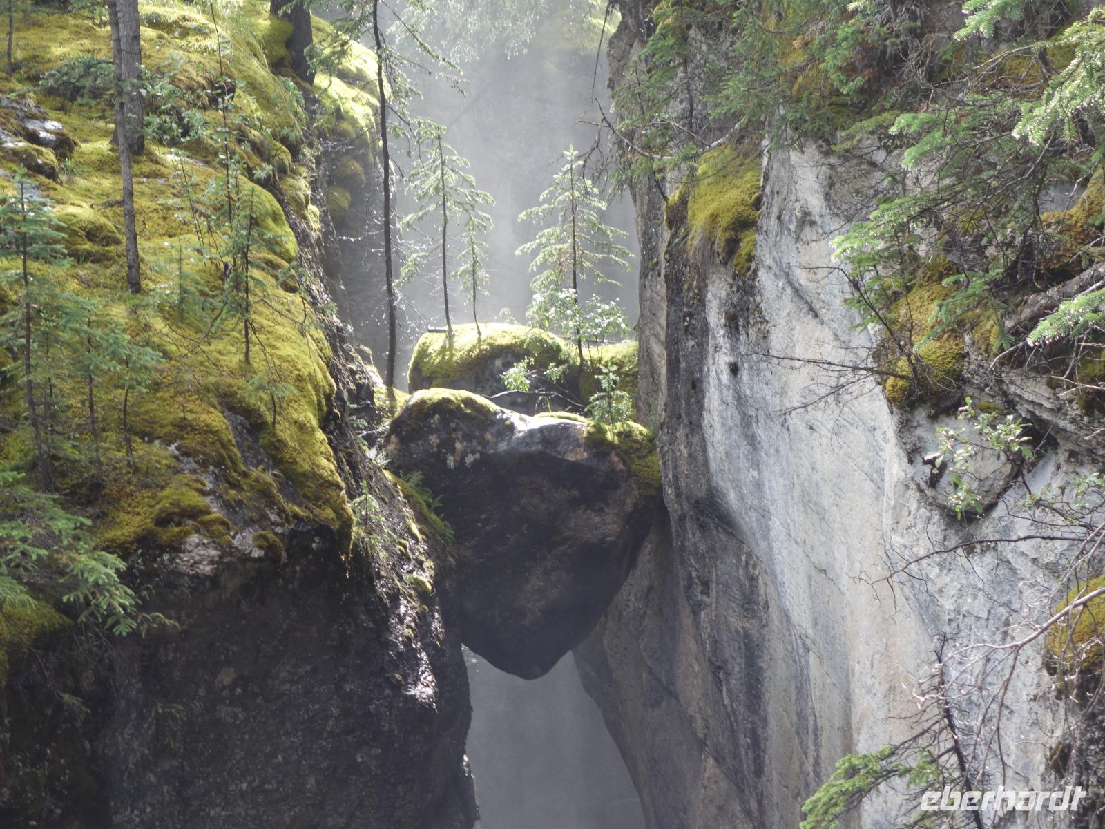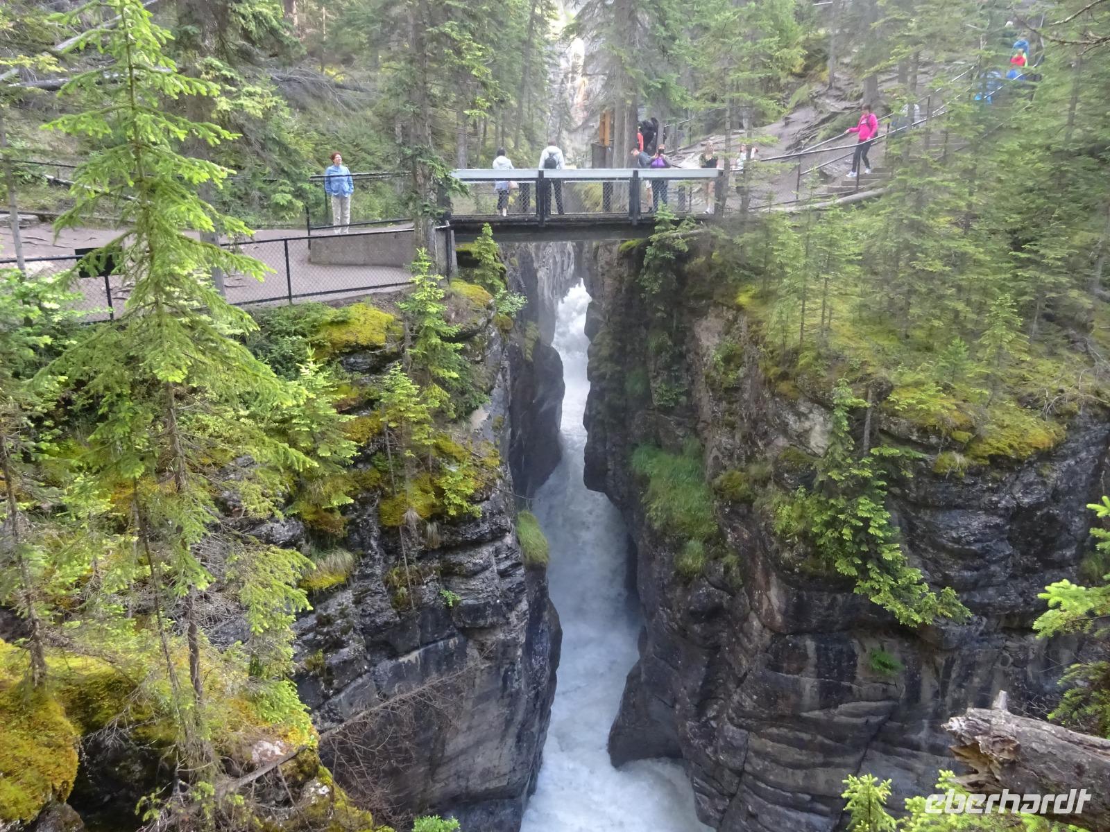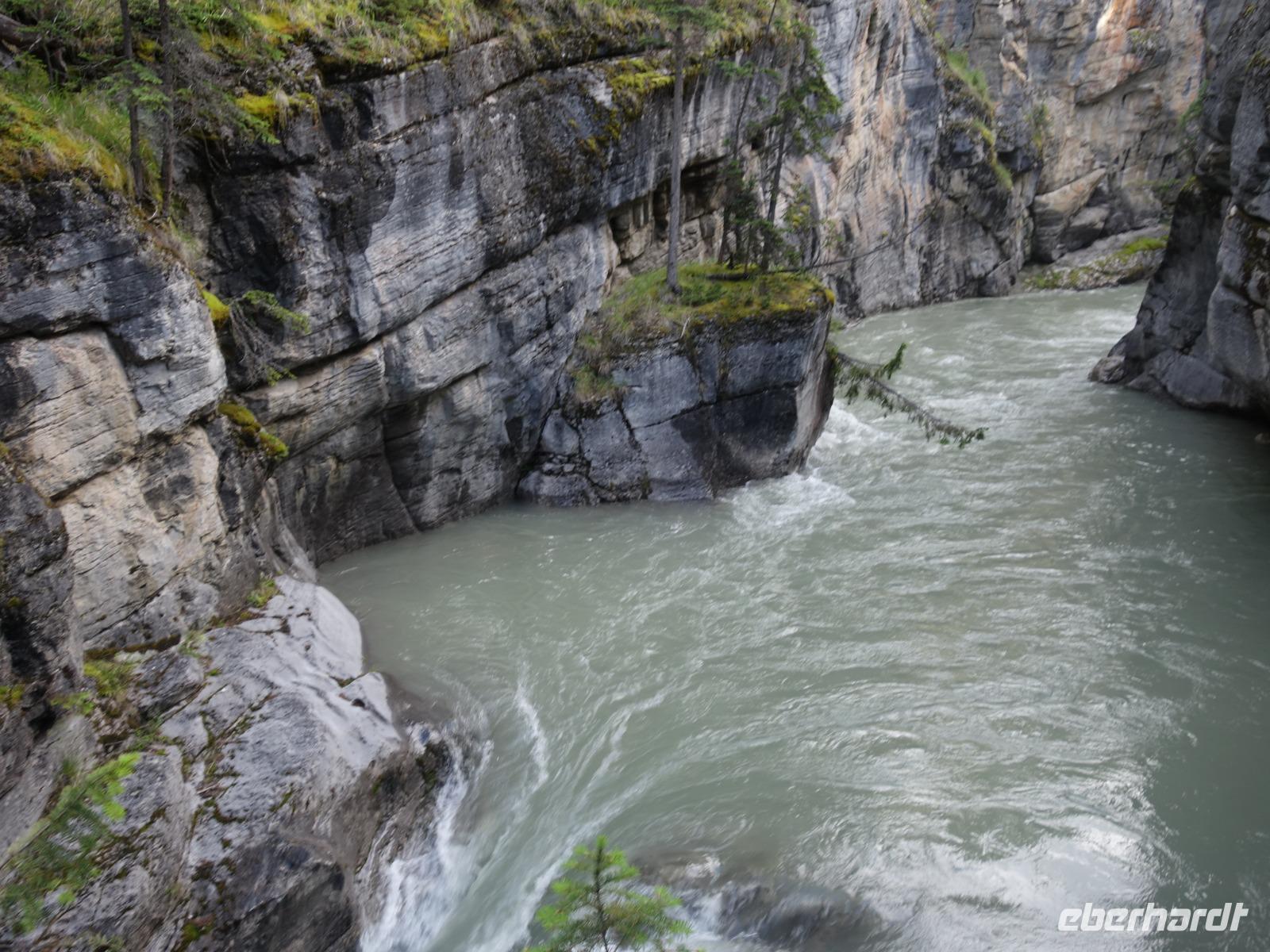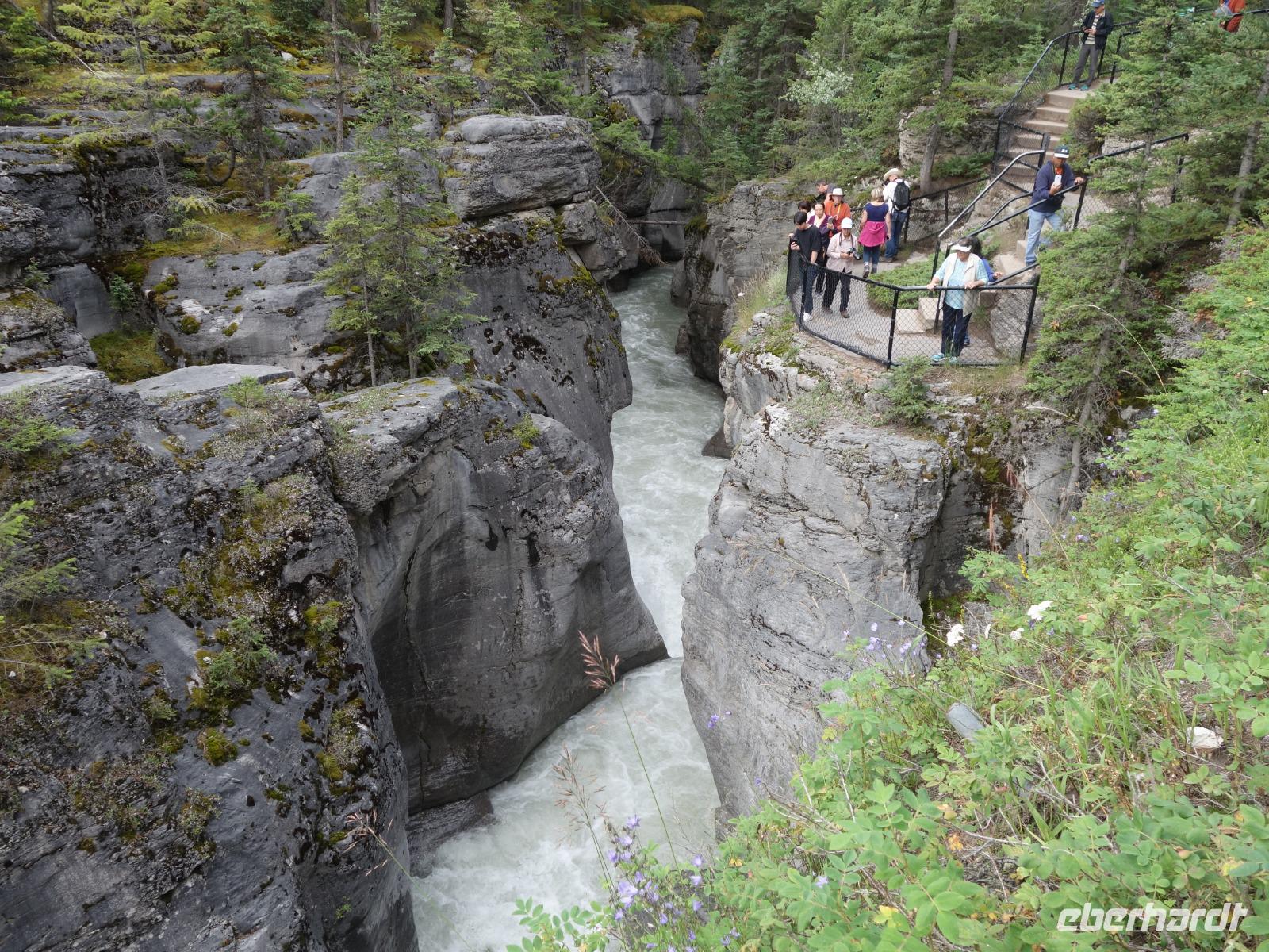 Gut erholt und ohne viel Moskito Blessuren (in der Dämmerung und direkt am Fluss sind wir ein gefundenes Fressen) geht es für uns zum Maligne Canyon im nördlichen Teil des Jasper Nationalparks. Dieser Zwischenstopp ist sehr lohnend und vom Parkplatz geht es in eine pittoreske Kalksteinschlucht. Mehrfach überqueren wir den engen Canyon. Tief unter uns tost der Maligne River. Der Canyon wurde bereits während der Eiszeit geformt und wird noch heute von Gletscherwasser gespeist.