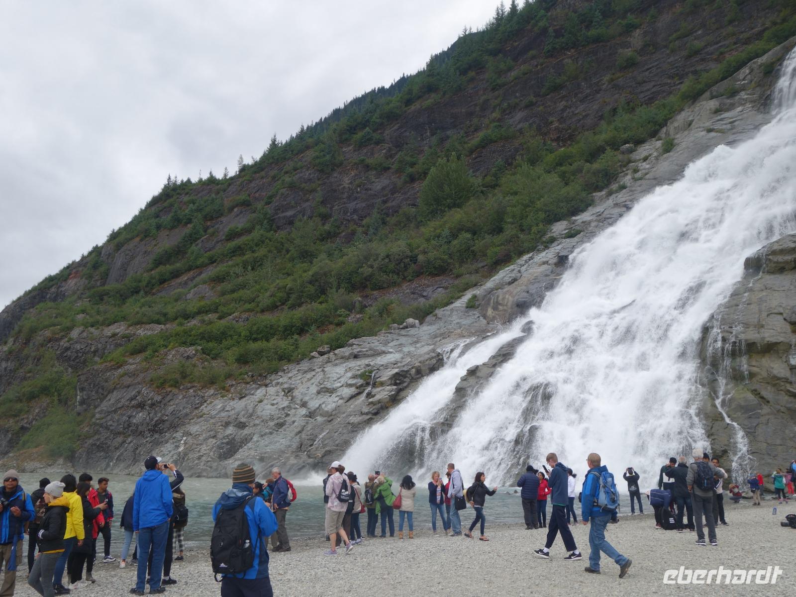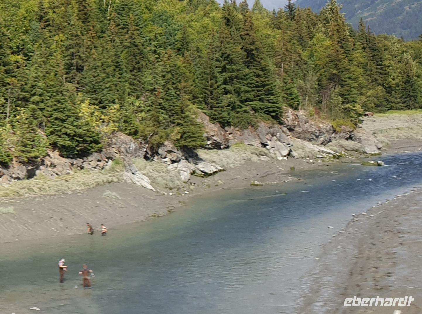 Nach einem Seetag folgt nun unser erster Landgang auf der unserer Kreuzfahrt durch Alaska. Ketchikan wird auch die Lachshauptstadt genannt. Aus gutem Grund, denn wir werden auf unserem Spaziergang durch den Ort vorbei an zahlreichen Flussüberquerungen und Stromschnellen sehr viele Lachse beobachten können. Die meisten von ihnen sind auf dem Weg zurück in ihre Heimatgewässer, um dort zu laichen. Dabei müssen sie gegen den Strom schwimmen und zahlreiche Stromschnellen überwinden. Bei diesem sogenannten Lachsspringen kann man die Tiere bei ihrem Kampf gegen die Strömung und gegen andere Naturgewalten sehr gut beobachten.