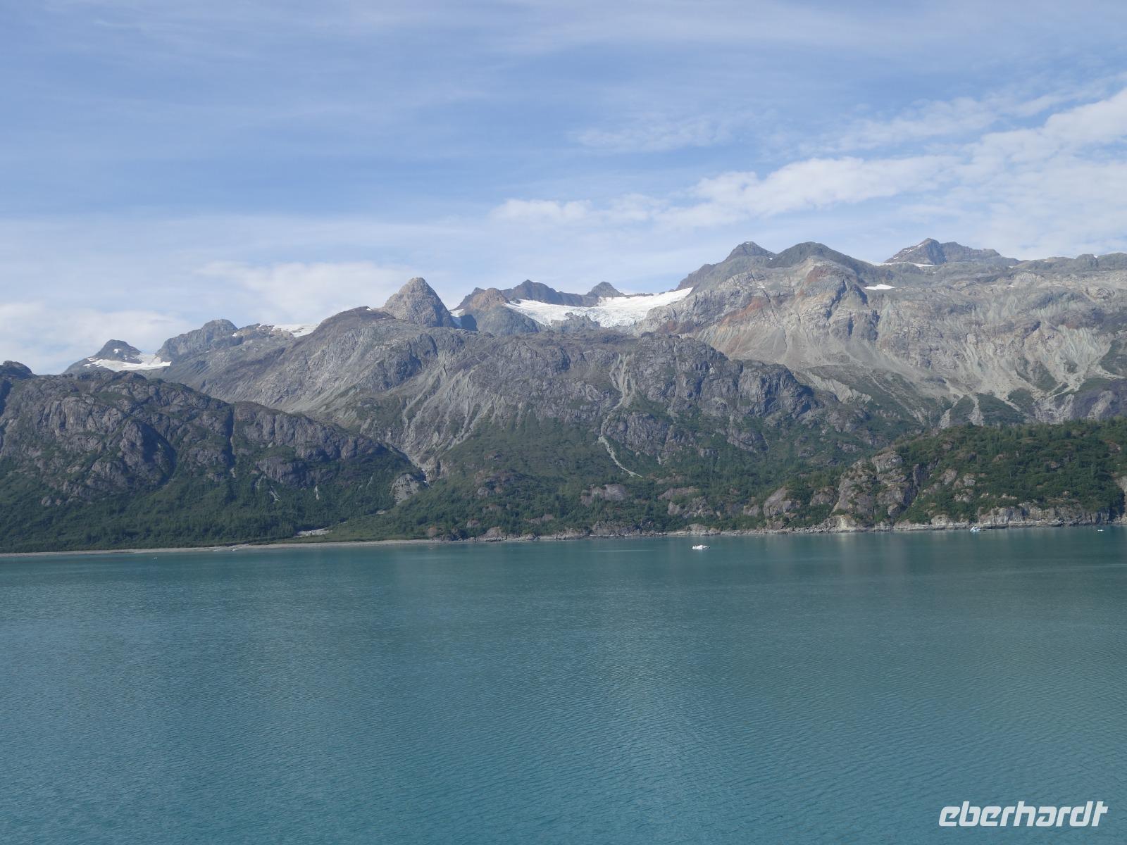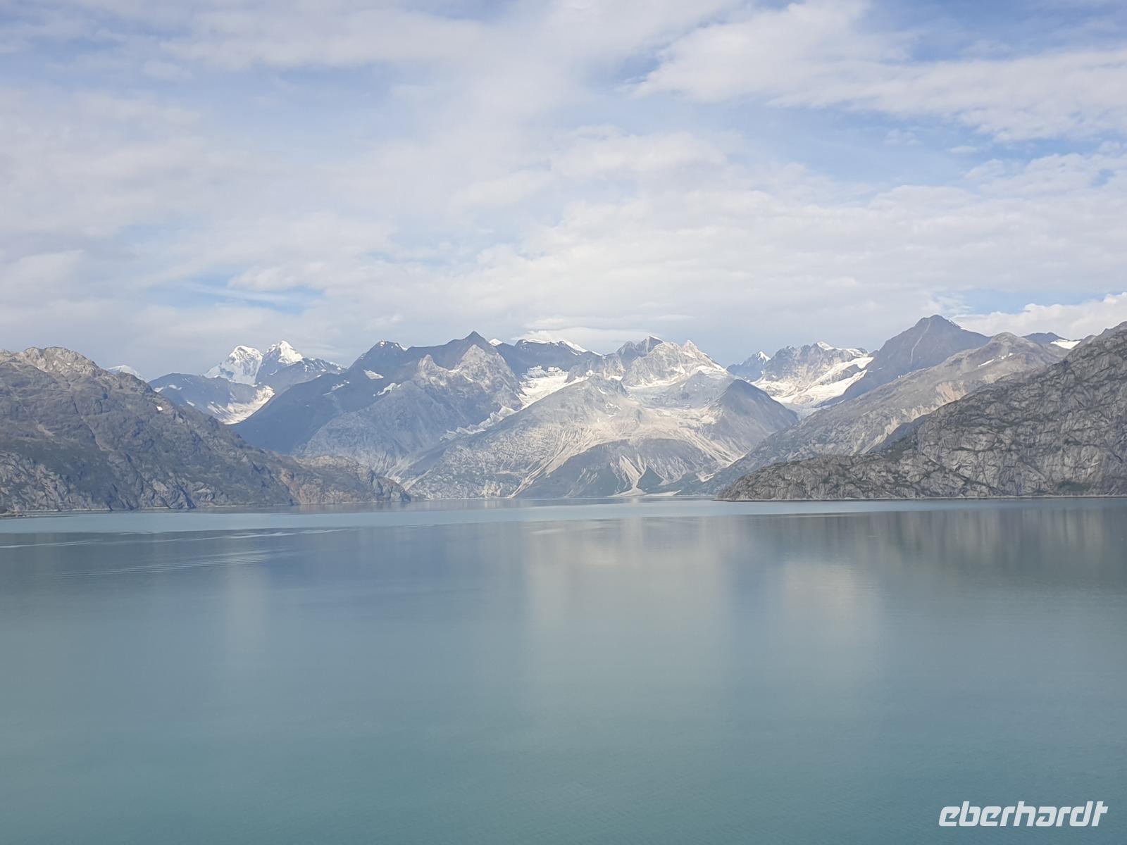 Der Glacier Bay National Park und das gleichnamige Reservat sind ein riesiges Gebiet im Südosten Alaskas. Der Glacier National Park hat die Größe von Portugal und wurde 1925 gegründet und fasst 1.045 Gletscher (davon sind nur 50 benannt). Begleitet wird unsere Reise durch den Glacier Bay von 3 Rangern, die uns spannende Geschichten und Informationen rund um den National Park und deren Wildnis liefern. Wir durchqueren die Bucht bis ganz zum Ende. Hier erwartet uns das Highlight des heutigen Tages - der Magerie Gletscher. Wir sehe ein atemberaubendes Naturspektakel, wenn der Gletscher kalbt, also Gletschereis in einer riesigen Menge tosend und brüllend in das Wasser abbricht. Auf dem Rückweg aus der Bucht machen wir noch einen Halt am Lamplugh Gletscher und erhalten auch einen Blick auf den John Hopkins Gletscher. Beide können wir am Vormittag bewundern und das Wetter ist ein echtes Geschenk. Strahlend blauer Himmel und kaum ein Lüftchen - eben wenn Engel reisen!