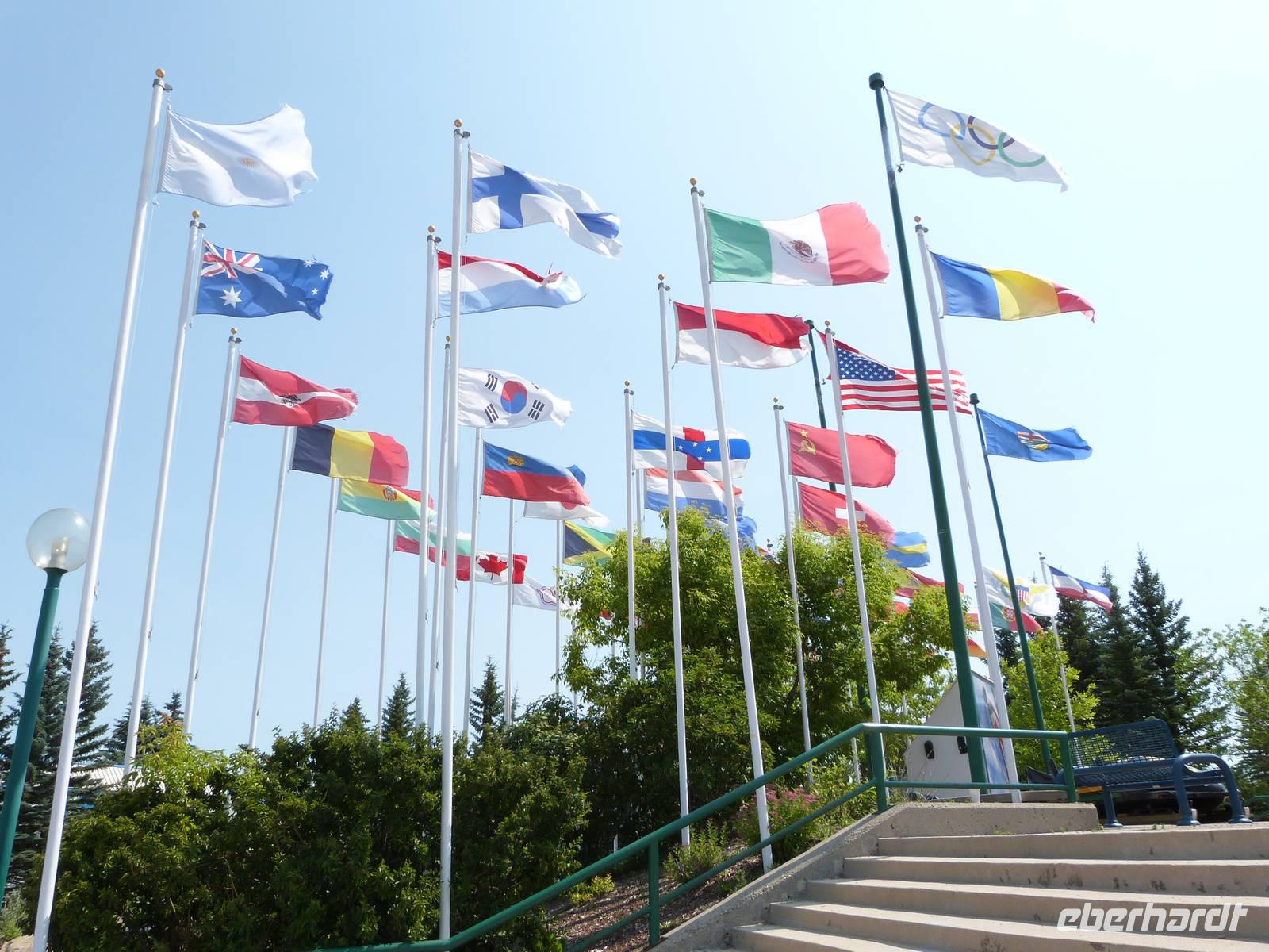 Heute standen wir nach kanadischer Zeit auf und freuten uns, dass wir länger schlafen konnten als unsere Daheimgebliebenen. Nach dem ersten amerikanischen Frühstück packten wir unsere Koffer und verstauten diese in unserem kanadischen Reisebus. Nelson, unser Buschauffeur, fuhr uns zusammen mit Anja durch Calgary und wir sahen uns die Sehenswürdigkeiten bei einer Stadtrundfahrt an. Wir fuhren als erstes zum Ort der Stadtgründung - dem Fort Calgary. Von hier aus hatten wir einen herrlichen Blick auf die Skyline der Stadt und die Statue des Herrn Mc Cloud - dem Gründer des Fort Calgary. Von da aus ging es weiter zum Gelände des Stamped Festivals, wo jedes Jahr im Juli Wagenrennen und Westernreiten stattfinden. Zurück im Stadtzentrum führte uns Anja in das schickste Hotel der Stadt - dem Fairmont Palliser Hotel. Hier residiert sonst das britische Königshaus. Wir besuchten den Calgary Tower bei bestem Wetter und genossen die herrliche Aussicht bis in die Rocky Mountains. In einer Höhe von 191 m lag uns die Stadt zu Füßen und wir konnten sogar bis zum Olympia Zentrum von Calgary schauen. Mit vielen tollen Eindrücken von der Stadt fuhren wir weiter zu den Sportstätten der Olympischen Winterspiele von 1988. Dort konnten wir Mountainbiker bei Ihrer Abfahrt auf den Grashügeln des Geländes beobachten. Auf der Fahrt nach Canmore stimmte uns Anja noch mehr auf Kanada ein, in dem Sie die Nationalhymne des Landes vorspielte. Bei einem Stopp in Banff am Nachmittag lernten wir schon die Lebensweise der Kanadier kennen. Wie wir alle wussten, lieben die Kanadier Wasserfälle und so machten wir einen ersten Stopp an den „Bow Wasserfällen" in Banff. Danach begaben wir uns auf die Suche nach dem legendären „Banff Springs Hotel", einem Hotel, welches zur Zeit des Eisenbahnbaues 1888 erbaut wurde. Heute ist es ein Luxushotel. Die Hoodoos, Steinpyramiden der First Nations im Banff Nationalpark beeindruckten uns auch sehr, genauso wie der Besuch am schönen Minnewanka See. Am Nachmittag fuhren wir nach ein Stück zurück nach Canmore und bezogen unsere Unterkunft für die folgenden zwei Nächte, die „Rocky Mountain Sky Lodge", die uns einen herrlichen Blick auf das Hausbergmassiv „Die Drei Schwestern" gewährte. Unser Abendessen nahmen wir im Restaurant „ Sage Bistro" ein und wir ließen uns die kanadische Küche schmecken.