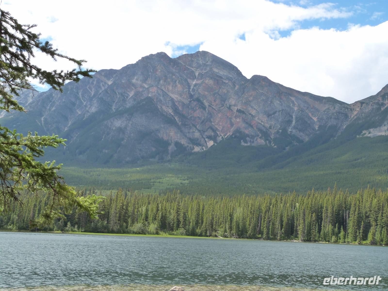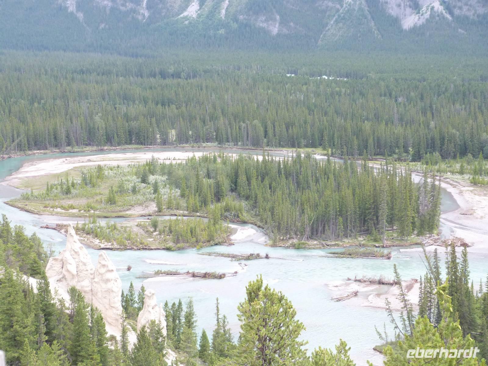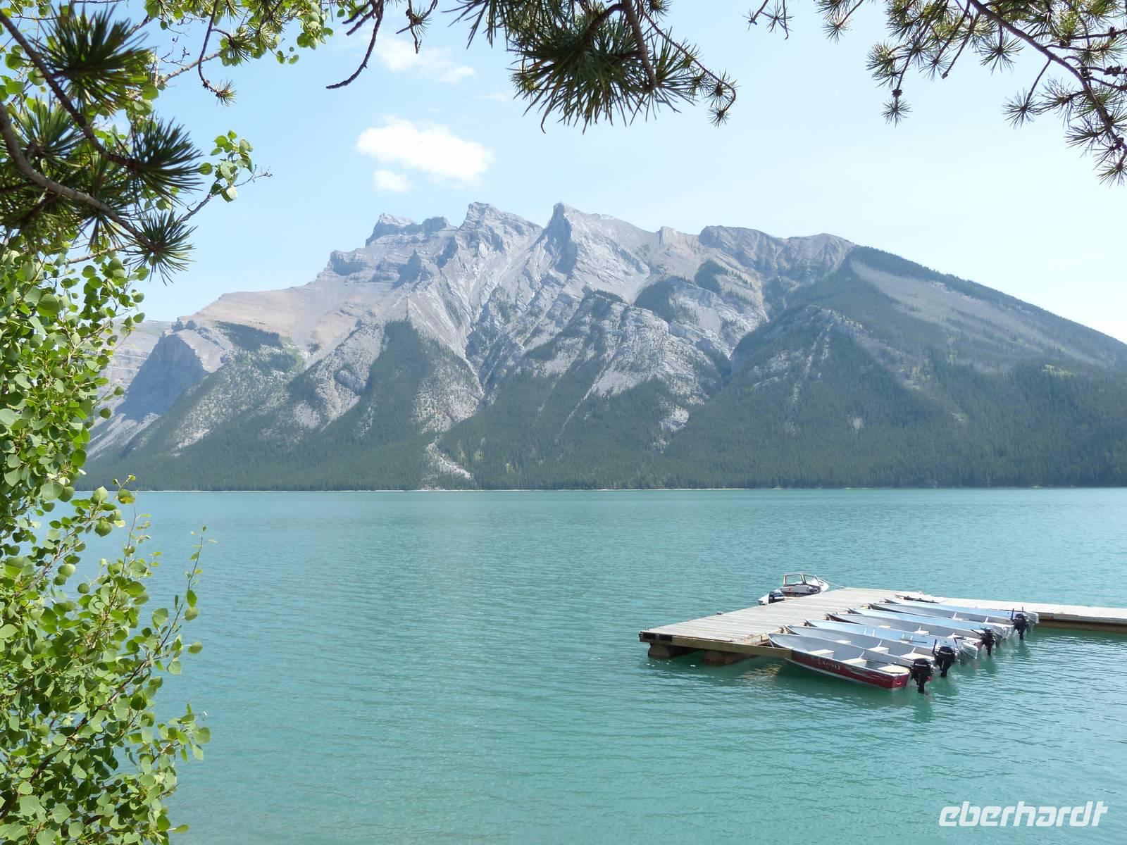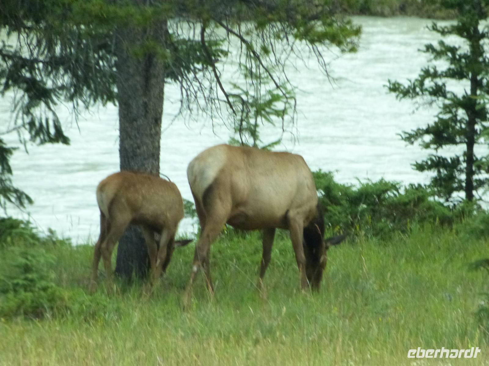 Wir fuhren durch die Hotelanlage der Fairmont Hotelkette am See „Lac Beauvert", welches auch zum Eisenbahnbau im 19.Jahrhundert eröffnet wurde. Einst residierte dort die Queen im Hotel „Fairmont Jasper Park Lodge". Am Nachmittag erreichten wir den Pyramid Lake. Hier haben wir schöne Fotomotive erhascht. Von hier aus sahen wir schön den Pyramid Mountain mit seiner interessanten Steinfärbung. Am späten Nachmittag erreichten wir unser Hotel „Becker´s Chalet". Bei einer kleinen Weinverkostung am Ufer des Athabasca Flusses ließen wir den Nachmittag ausklingen. Zum Abendessen trafen wir uns wieder im Restaurant der Hotelanlage.