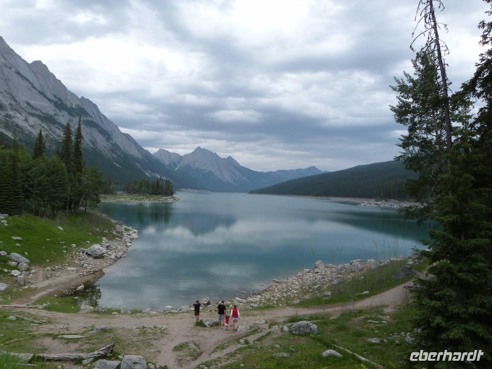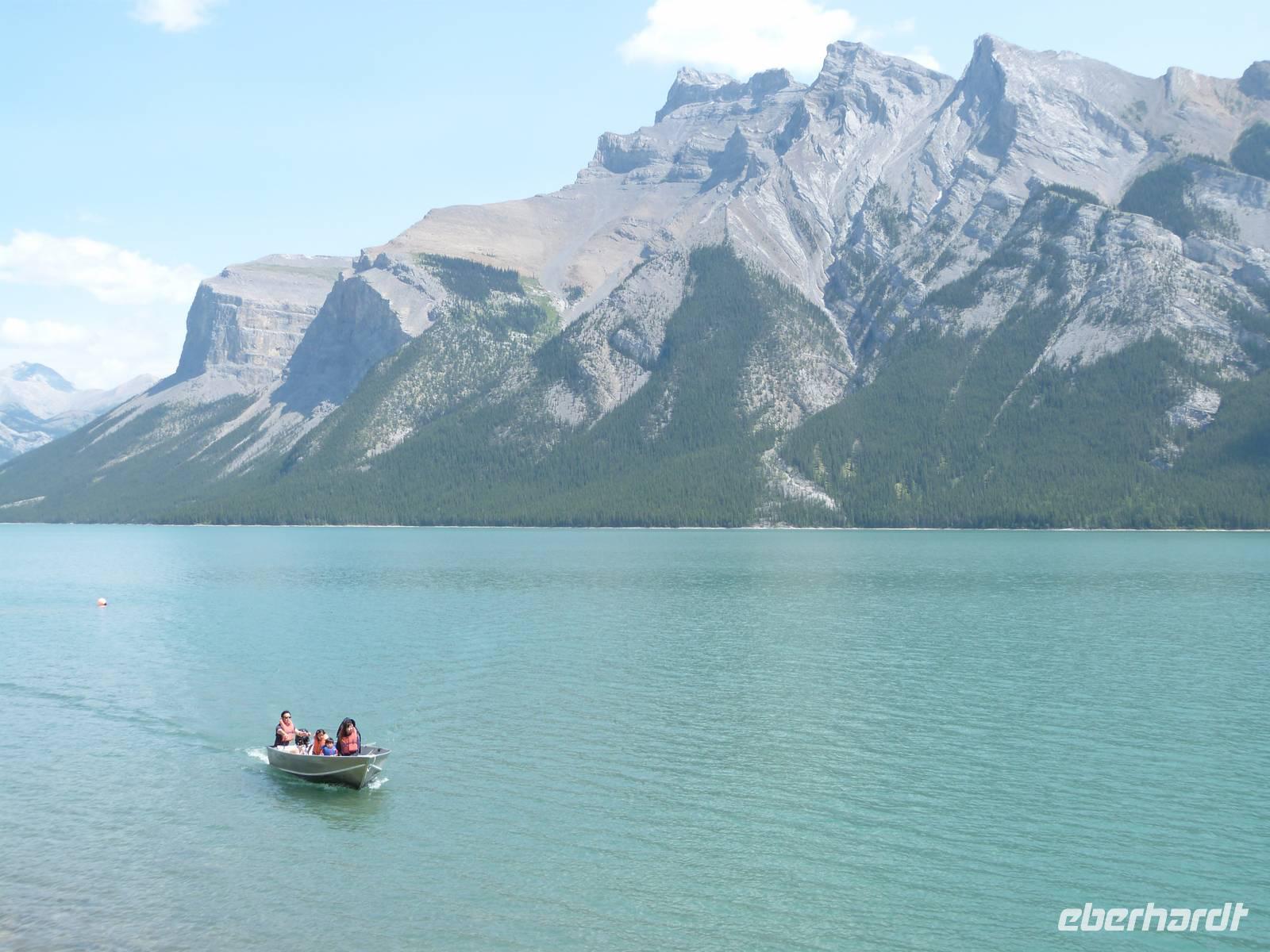 Am Montag hieß es „Sport frei" für unsere Gruppe und wir wanderten einen Teil durch die Maligne Schlucht und lernten Kanada aus einer anderen Perspektive kennen. Wir genossen die herrliche Luft und die Pflanzenwelt der Rocky Mountains. Nach dem wir sportlich unterwegs waren, fuhr uns Nelsen zum Medicine See, ein See der mit den Gezeiten sichtbar wird. Gegen Mittag erreichten wir den Maligne See. Dort wanderte unsere Gruppe den de Mary Schäffer Weg entlang. Von dort hatte man einen herrlichen Blick auf den Maligne See und auf die traumhafte Bergkulisse.