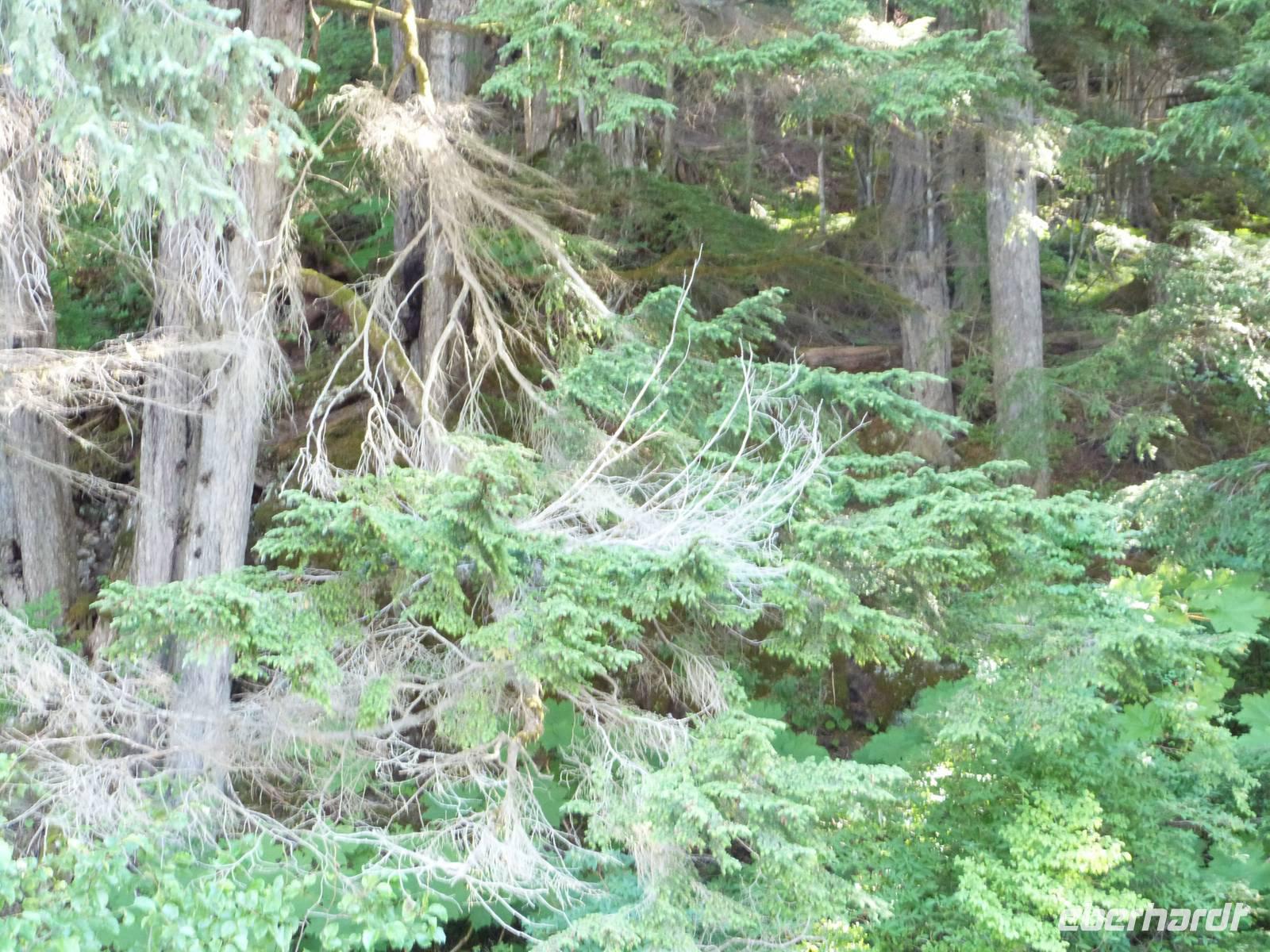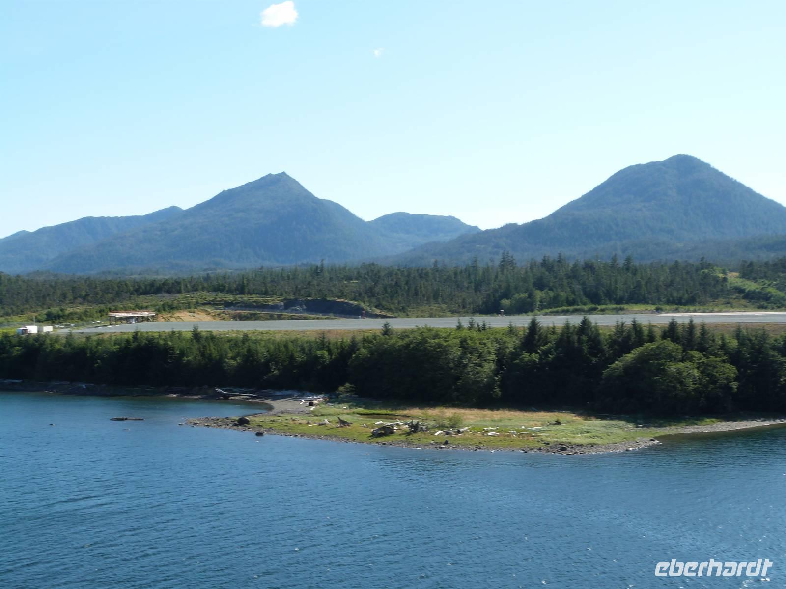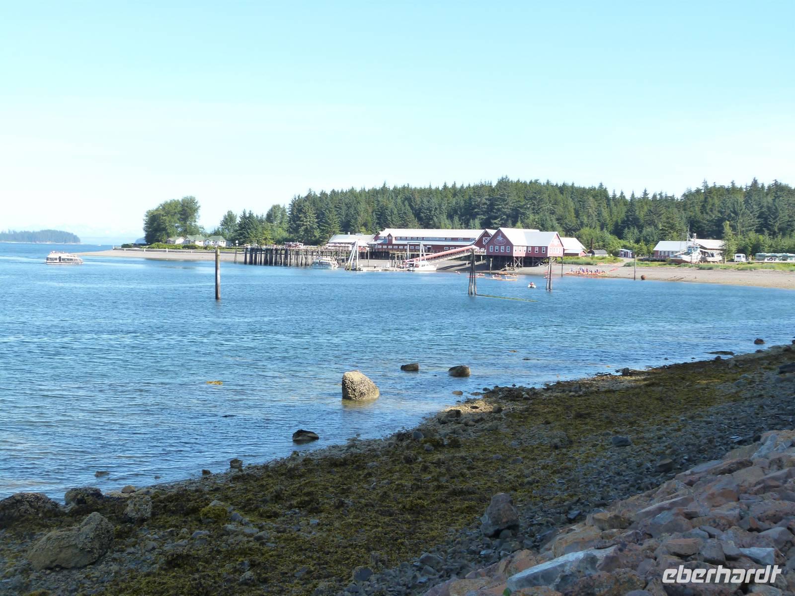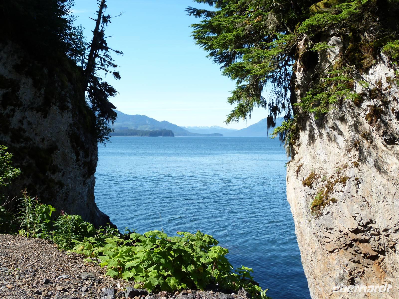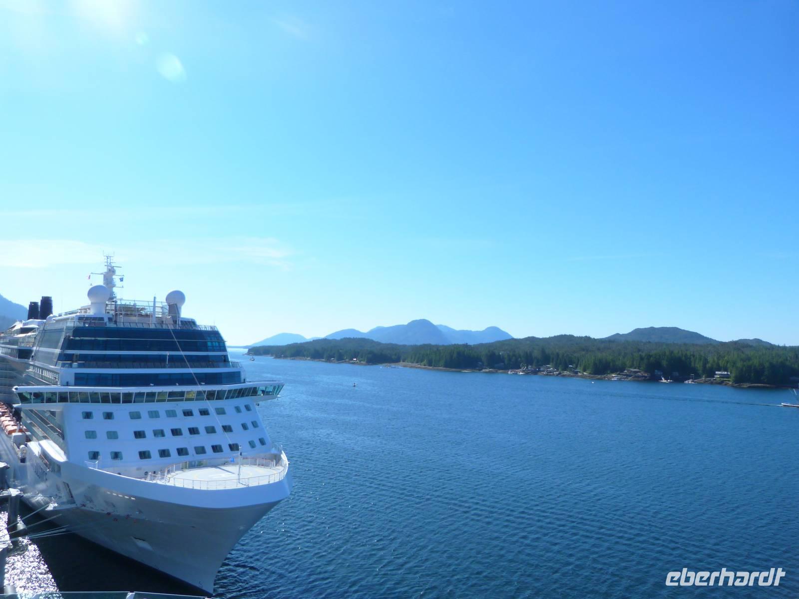 Heute fuhren wir mit dem Schiff durch die Inside Passage, der Streifen zwischen kanadischem Festland und den kleinen vor gelagerten Pazifikinseln. Ein leichter Wind wehte uns um die Nase.George Vancouver und James Cook waren die ersten Briten, die umfangreiche kartografische Arbeiten hier durchführten.