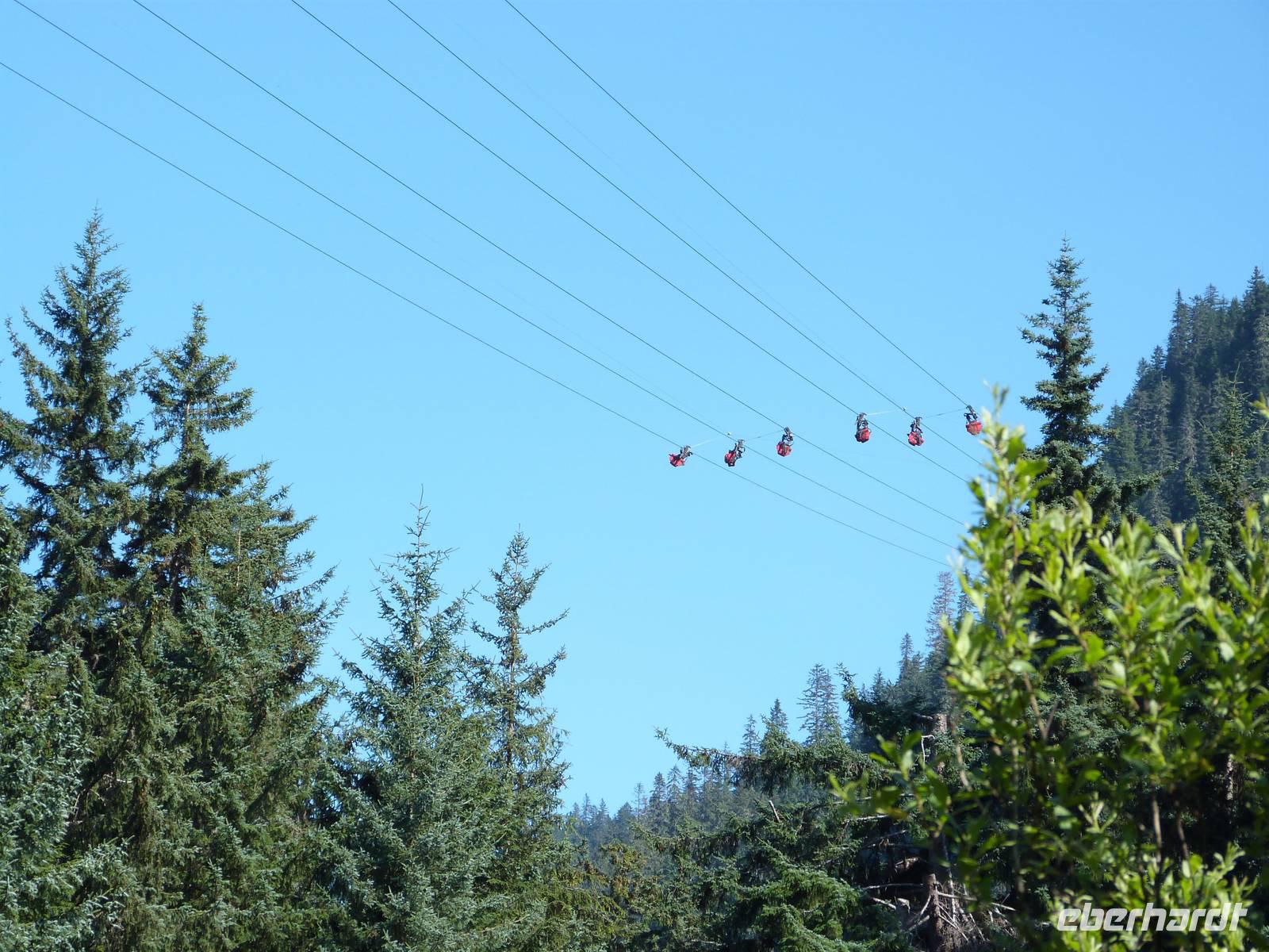 Heute hieß es: „Auf zum Goldrausch". Wir verabschiedeten uns von Kamloops und fuhren weiter den Highway Richtung Lillooet .Unterwegs hielten wir auf der „Hat Creek Ranch" und erlebten das Goldgräber Leben aus dem 19.Jahrhundert hautnah! Wir besuchten das Haupthaus mit den originalgebliebenen Unterkünften der Reisenden. Wir besuchten auf dem Gelände noch das kleine Indianerdorf, wo wir in das Geheimnis der Rundhügelhäuser und des Saunawesens der Indianer eingeweiht wurden. Beim kleinen Mittagessen auf der Sonnenterrasse genossen wir den Ausblick und träumten von der Goldrauschzeit. Unser Weg führt uns an diesem Tag noch weiter bis nach Whistler, dem St. Moritz der Kanadier. Unterwegs kamen wir aber noch am Duffey See vorbei.