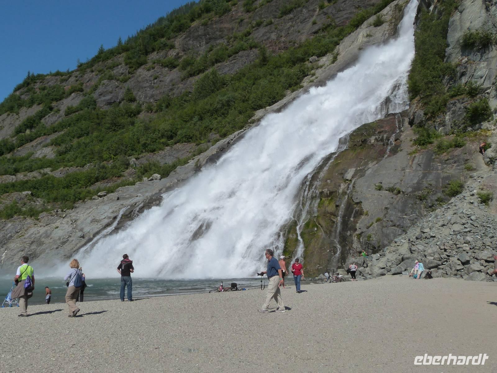 Anschließend fuhren wir zum Mendenhall-Gletscher,einer der größten Gletscher des Juneau Eisfelds. Jeder hatte hier etwas Freizeit, um die Umgebung des Gletschers und das Informationszentrum individuell zu erkunden. Natürlich durfte auch hier bei herrlichem Sonnenschein eine kleine Wanderung zu den Nugget Wasserfällen nicht fehlen. Wunderbare Fotomotive entstanden hier.