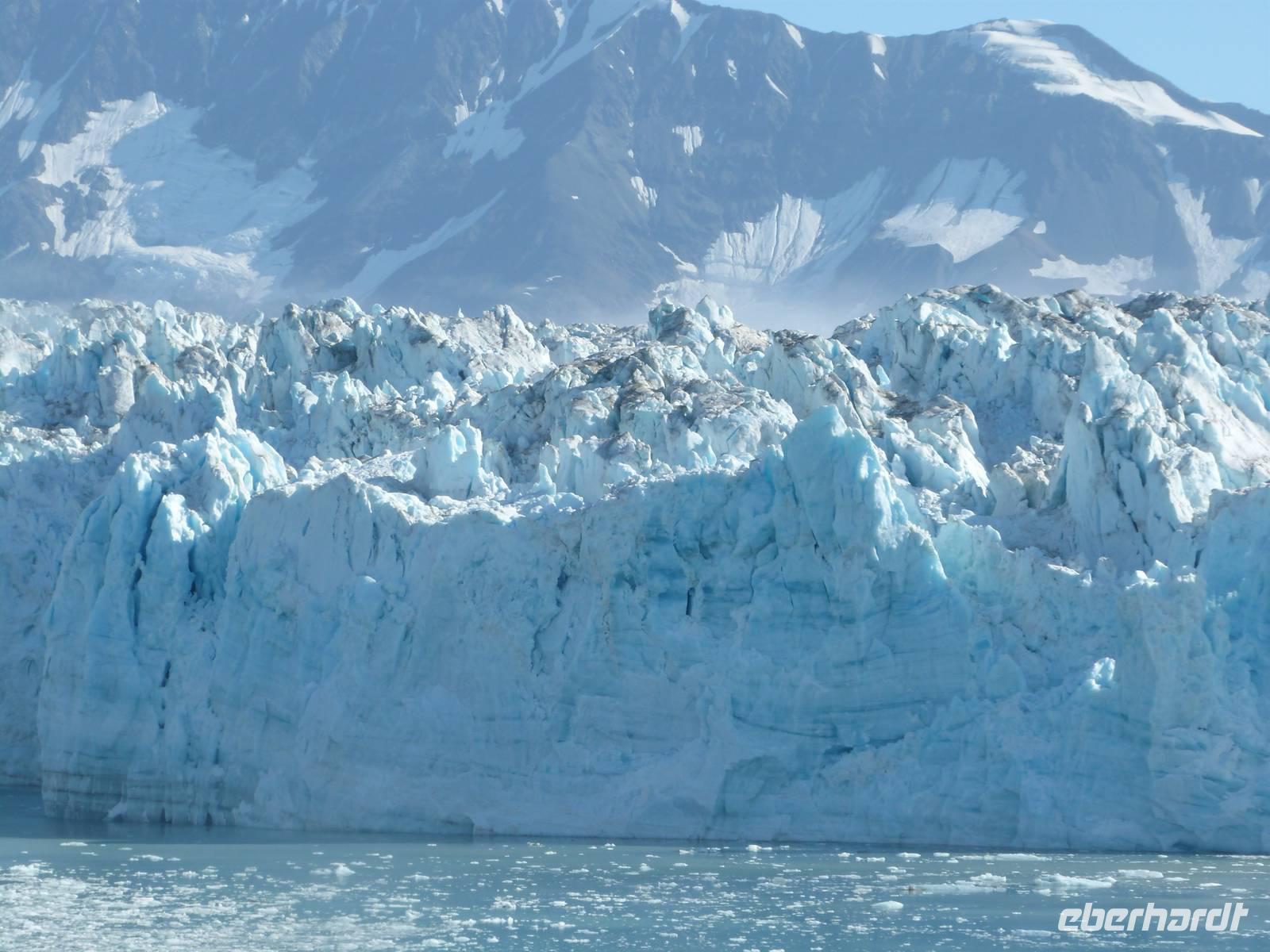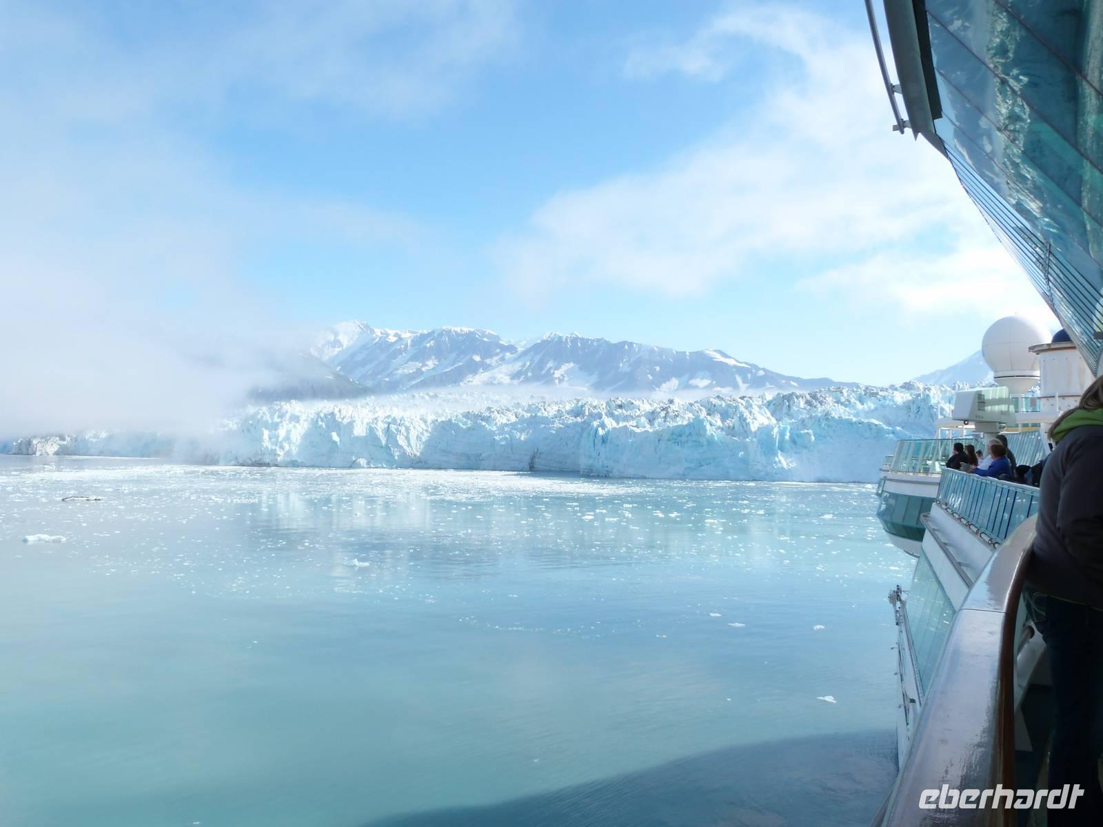 Ein weiteres Highlight unserer Reise erwartete uns! Der Hubbard - Gletscher hat im Yukon-Territorium seine Quelle und erstreckt sich bis über 122 Km in die Yakutat Bay und die Sisenchantment-Bay. Er ist der längste Gletscher, der in einem Gewässer endet. Am frühen Morgen hielt uns nichts mehr in der Kabine. Alle standen wir an Deck und beobachteten die Einfahrt der „Radiance of the Seas" in die Gletscher Lagune. Ein Naturschauspiel aus Schnee und Eis zeigte sich uns und wir genossen unser Frühstück mit Blick auf den Gletscher.