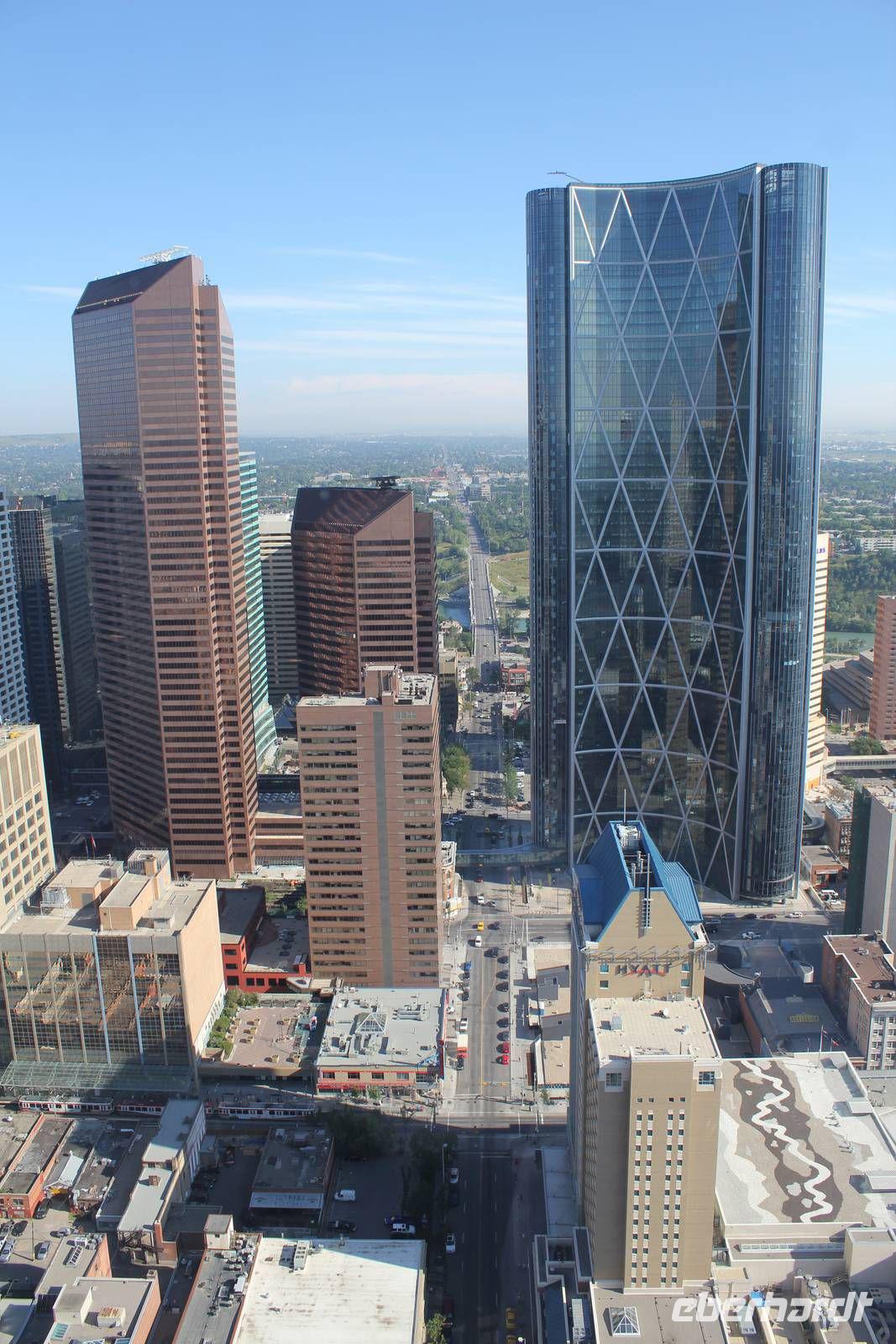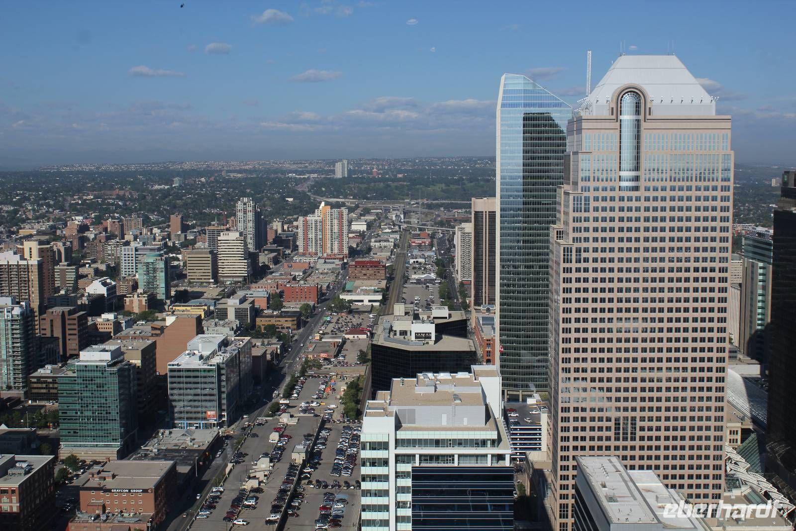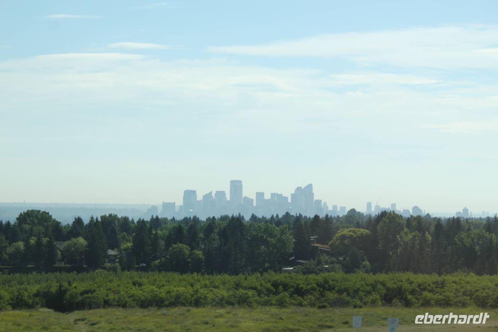 Nach kurzem Plausch mit den erstaunlich netten Grenzbeamten bei der Passkontrolle und der Entgegennahme unserer Koffer, treffen wir auf Reiseleiter Victor. Mit dem Bus geht es in Richtung des Zentrums von Calgary, der größten und bedeutendsten Stadt Albertas, die sich vor allem mit den olympischen Winterspielen von 1988 einen Namen gemacht hat. Die Stadt gilt als Nahtstelle von Prärie und dem hügeligem Vorland der Rocky Mountains. „Zwischen Wildnis und Weizenfeldern" beziehen wir hier unser Hotel.