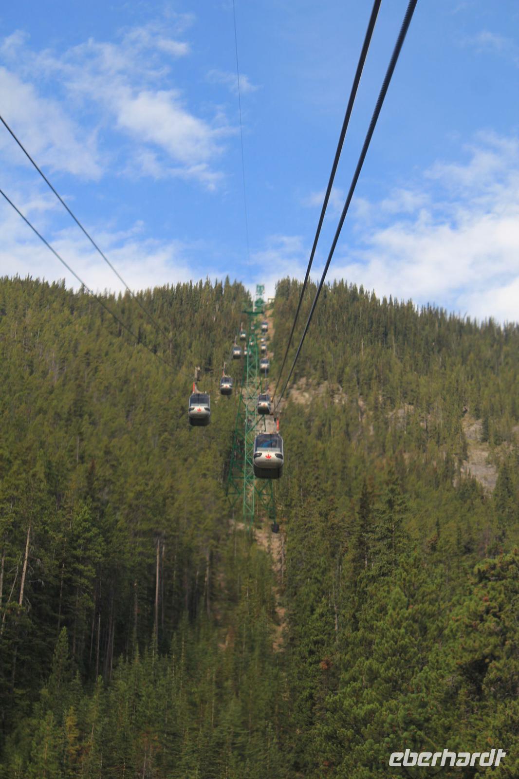 Wow! Heute Morgen begrüßt uns ein Wahnsinnspanorama! Wir sind umringt von hohen Bergen, die von der warmen Sonne in ein goldgelbes Licht getaucht werden. Die Gipfel der „3 Schwestern" thronen über unserem Hotel, der „Rocky Mountain Ski Lodge", und lassen uns den heutigen Tag mit einem zufriedenen Lächeln auf den Lippen beginnen. Mit noch leerem Magen fahren wir direkt zur Bergstation des Sulphur Mountain und mit der Seilbahn geht es zur 2.270 m hoch gelegenen Bergstation. Bei einem herrlichen Rundumblick vergessen wir für einen kurzen Moment den Frühstückshunger und wir genießen einfach nur den Ausblick über das Bow Tal, die umliegenden Berge und den türkisfarbenen Bow-Fluss. Bei traumhafter Aussicht nehmen wir in luftiger Höhe unser schmackhaftes Frühstück ein. Anschließend spazieren einige von uns noch zur gegenüberliegenden Bergspitze und lassen den Blick in die Ferne schweifen. Um 11 Uhr treffen wir uns alle wieder unten und weiter geht unsere heutige Erkundungstour im Banff- und im Yoho-Nationalpark.
