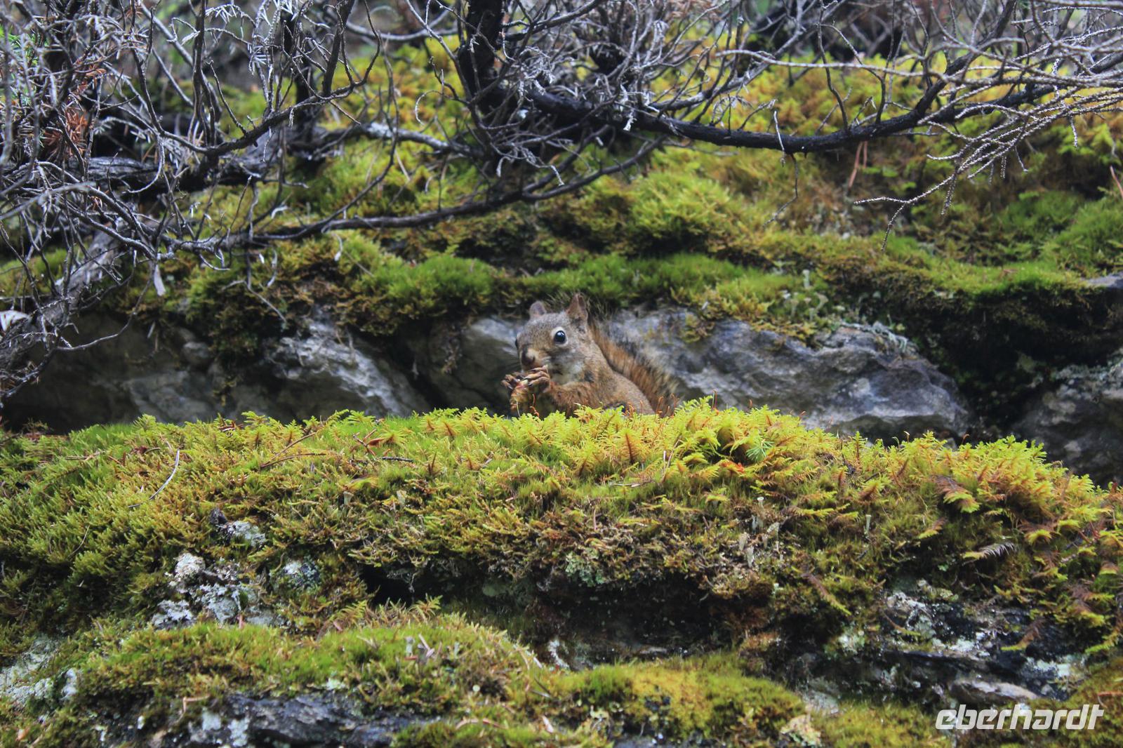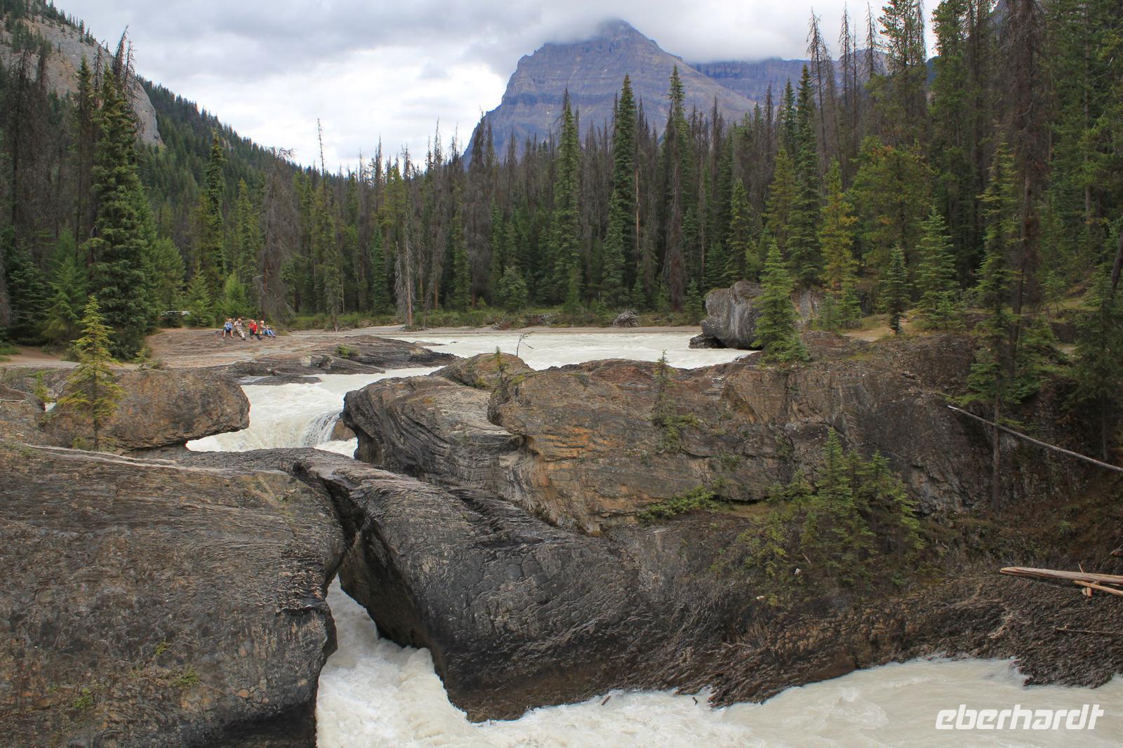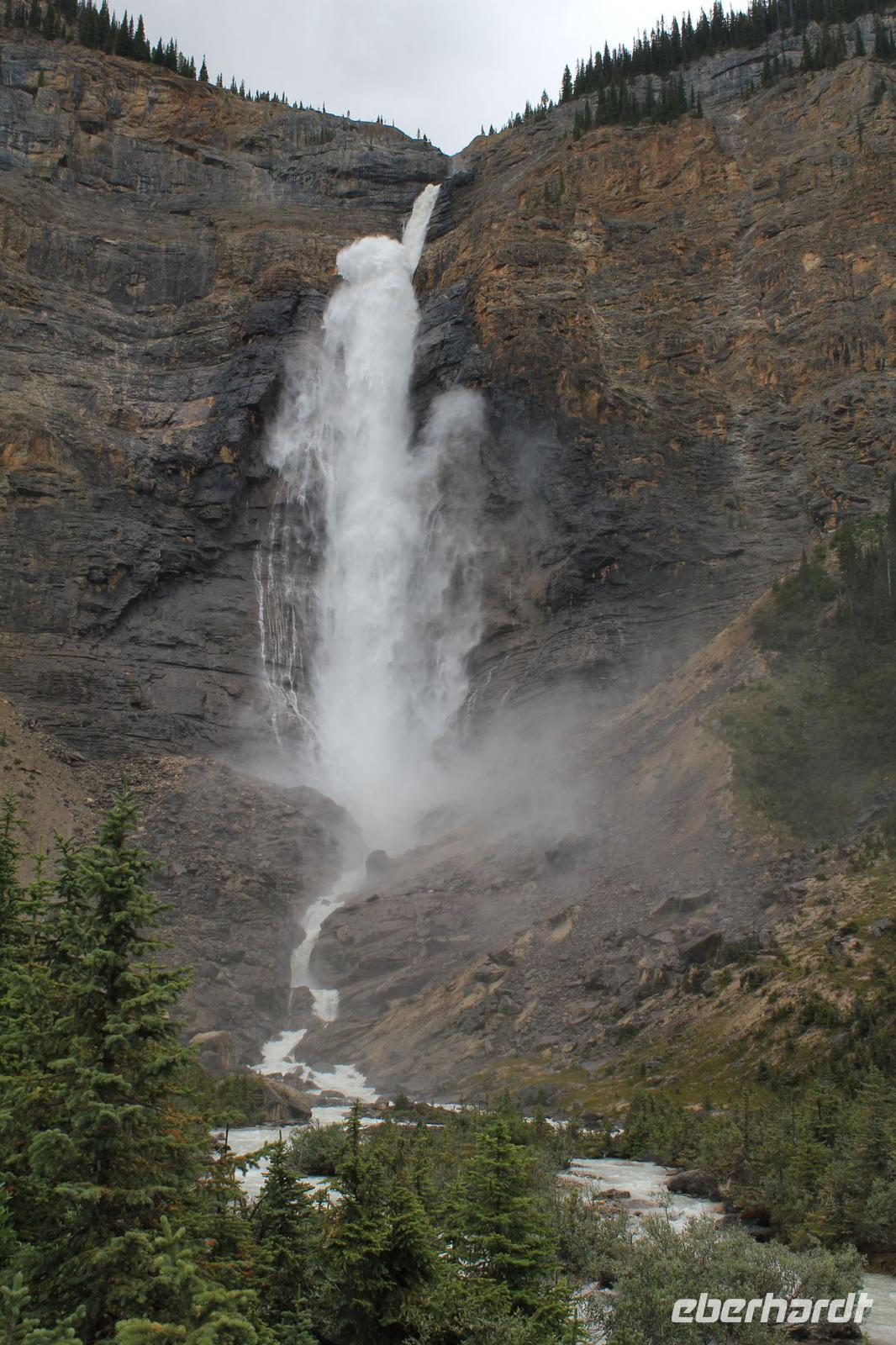Weiter geht es zur Natürlichen Brücke, die der tosende Kicking Horse Fluss aus einer Felsbarriere förmlich ausgefräst hat. Ein beeindruckendes Fleckchen Natur! Nun wollen wir uns einem kleinen Extra-Programmpunkt widmen und so chauffiert uns Gerard gekonnt, teilweise rückwärts, eine enge Bergstraße hinauf. Unser Ziel sind die imposanten Takakkaw Falls, die mit ihren fast 300 m Höhe zu den höchsten Wasserfällen Nordamerikas gehören. Gewaltige Wassermassen stürzen hier laut tosend in die Tiefe und lassen uns staunen über die Mächtigkeit der Natur, die uns hier geboten wird! Noch dazu, beglücken uns entzückende kleine Streifenhörnchen, die neugierig aus Ihrem Erdloch schauen und für unsere Fotos förmlich zu posieren scheinen!