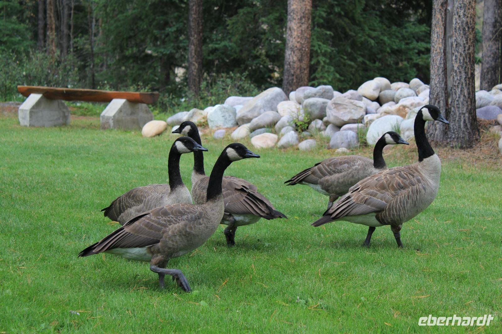 Zurück in unserer herrlichen Bungalowanlage sollte der Tag aber noch nicht vorbei sein. Am frühen Abend laden Victor und Elisa zu einer kleinen Weinverkostung, direkt am Fluss ein. Auch ein paar kanadische Gänse beehren uns, während wir Rot- und Weißwein aus dem Okanagan-Tal in British Columbia verkosten. Ein paar leckere Ahornkekse dürfen nicht fehlen und so stoßen wir auf unsere bisherige tolle Reise und auf das wunderschöne Kanada an! Prost!