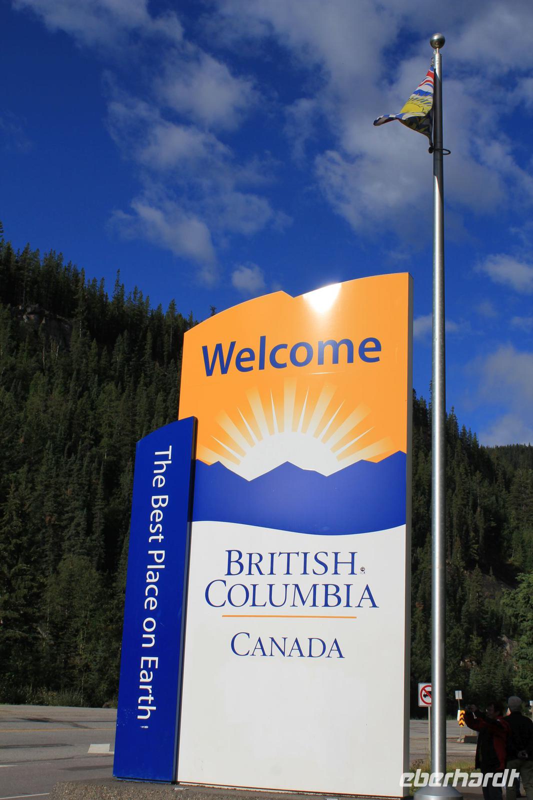 Wir verlassen heute die Provinz Alberta und reisen nun in British Columbia weiter. Unseren ersten Halt machen wir an der Grenze zu British Columbia, am 1.130 m hohen Yellowhead Pass, der gleichzeitig den Eingang zum Mount Robson Provincial Park und die Grenze zur nächsten Zeitzone darstellt. Darüber hinaus befinden wir uns hier genau auf der Atlantik-Pazifik-Wasserscheide! Schnell ein Erinnerungsfoto von diesem bedeutenden Stück kanadischen Boden geschossen und weiter geht's!