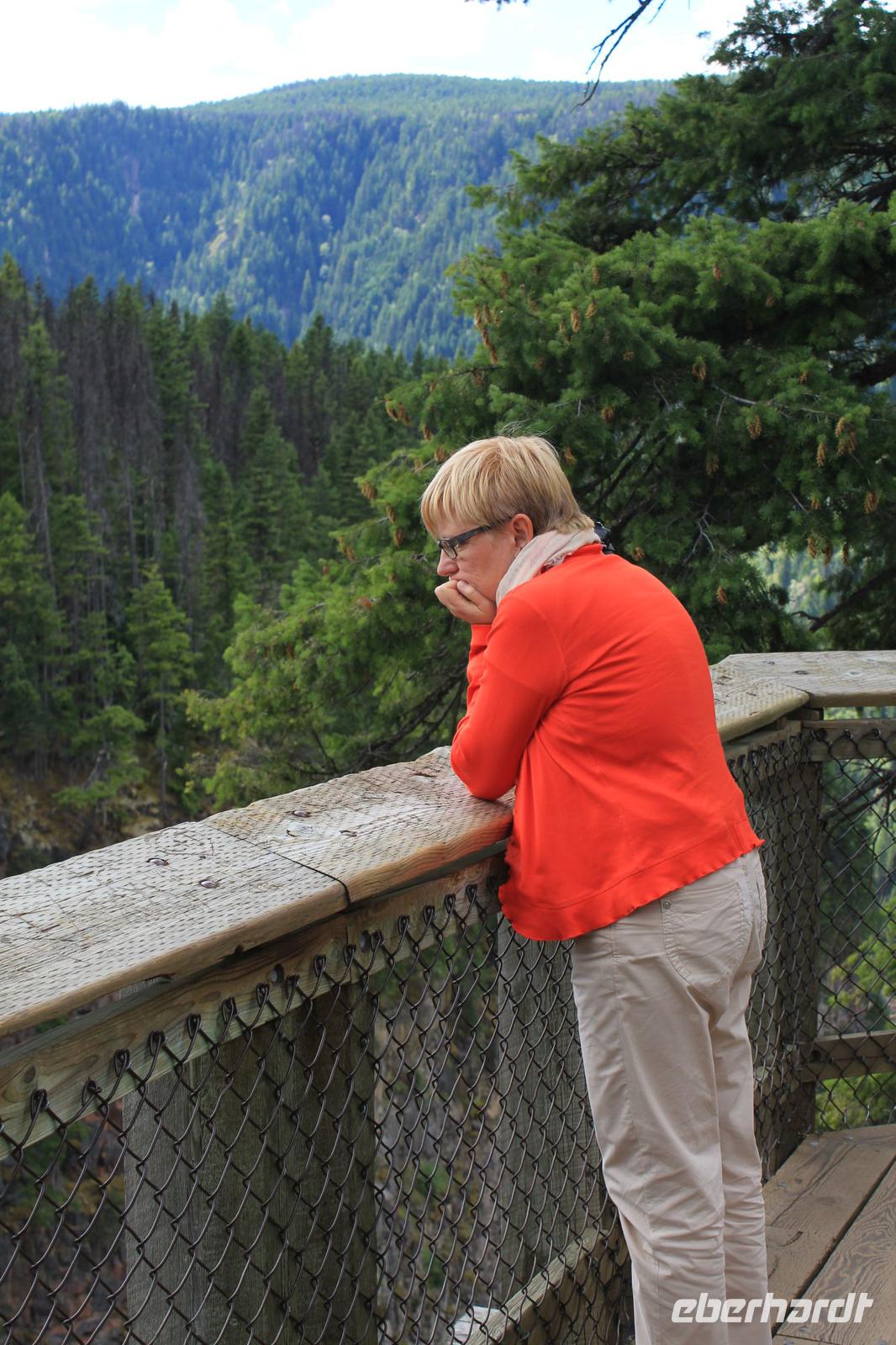 Bei unserer Weiterfahrt erreichen wir den Grand Canyon West-Kanadas, die Fraser Schlucht. In dem eindrucksvollen Tal zwängt sich der wasserreiche Fraser Fluss teils durch enge, fast senkrechte Felswände, bevor er wiederum sein breites Flussbett ausfüllt.