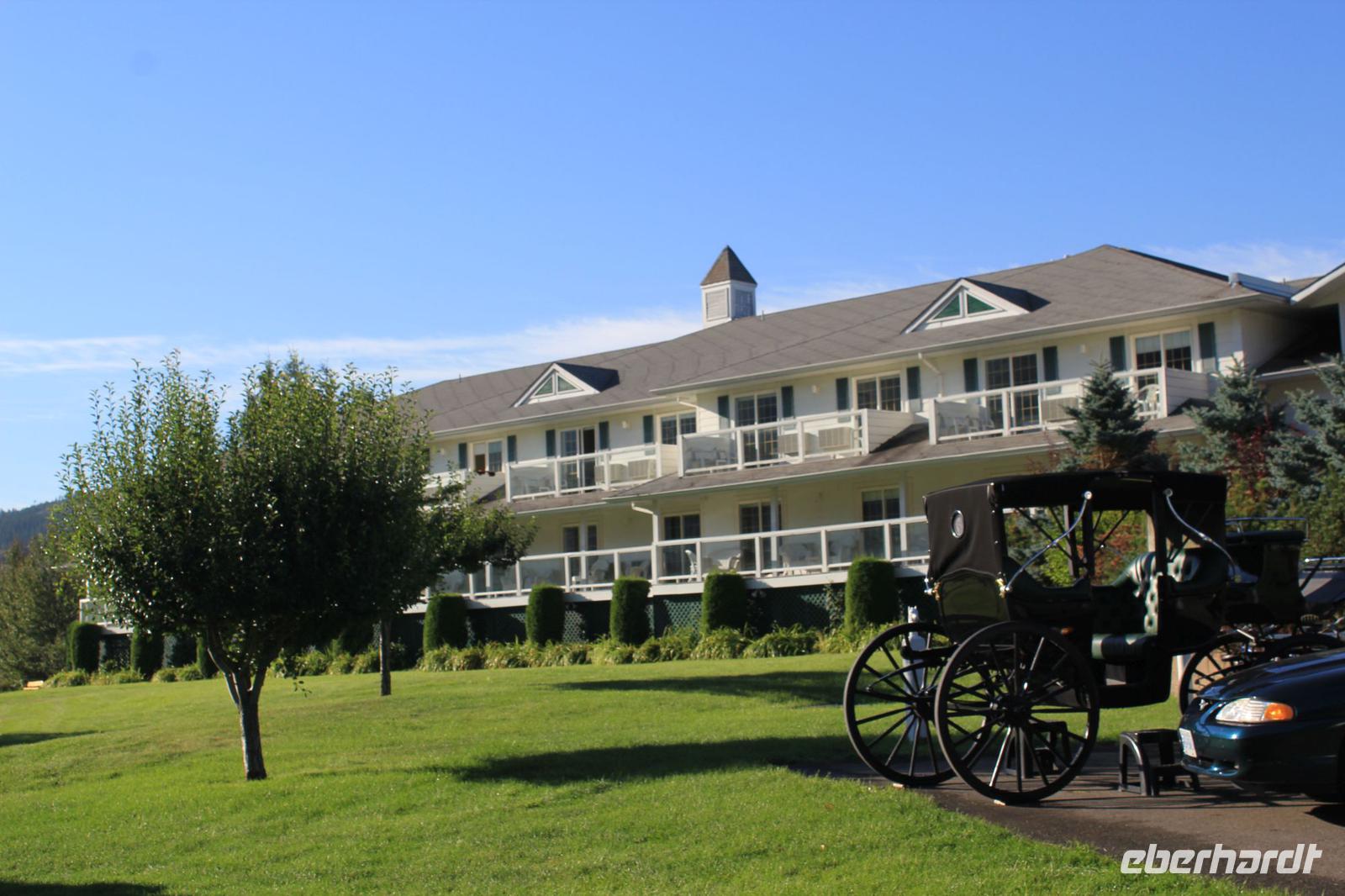 Durch die ländliche Region folgen wir dem North Thompson Fluss, der uns bis nach Kamloops führt. Gegen 17:15 Uhr erreichen wir schließlich unsere herrliche Anlage, die South Thompson Guest Ranch! Schnell die Zimmer bezogen, bleibt noch genügend Zeit die knapp 30 Grad Außentemperatur am Pool oder auf der langen Terrasse in den gemütlichen weißen Korbstühlen zu genießen.