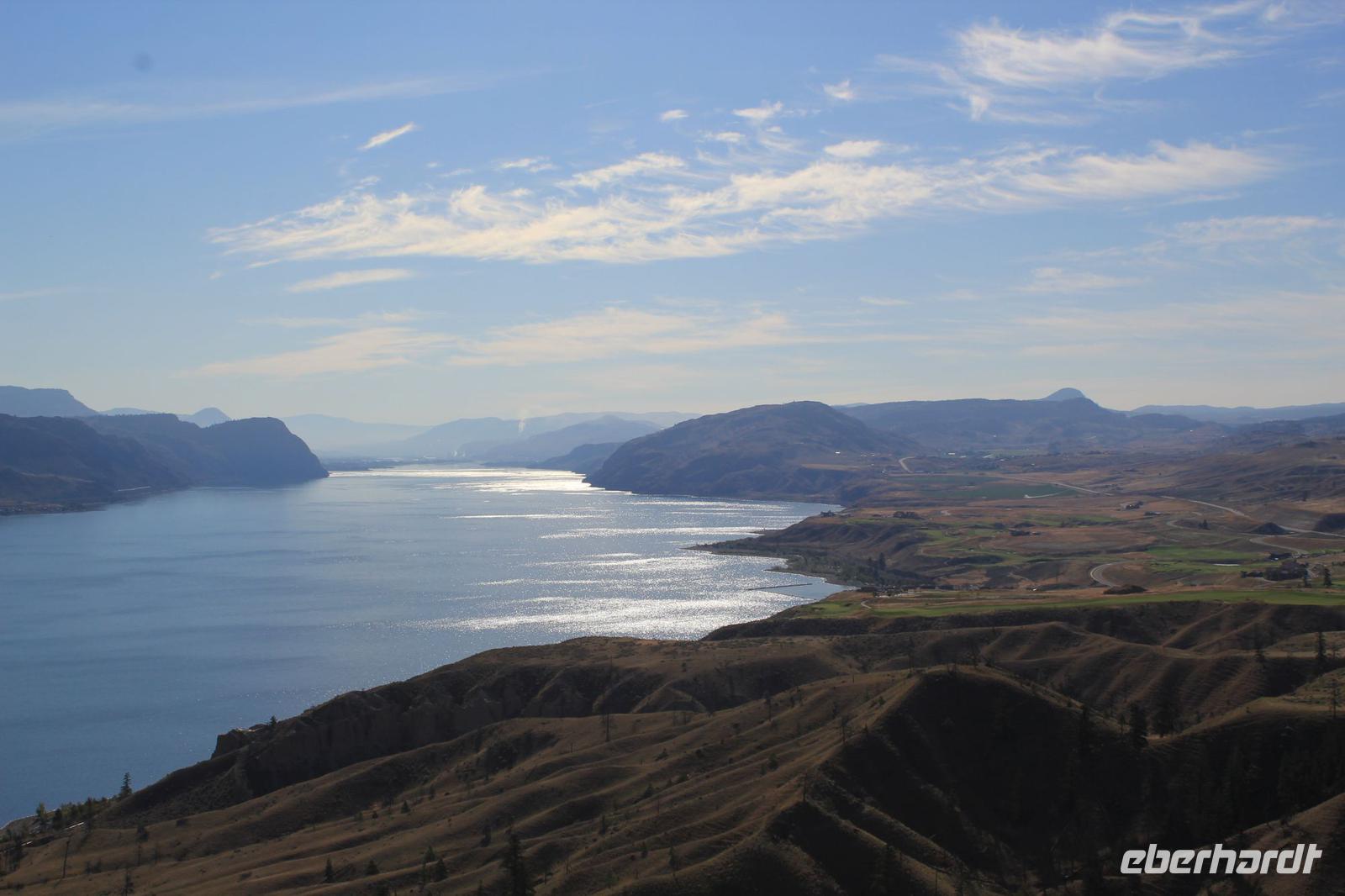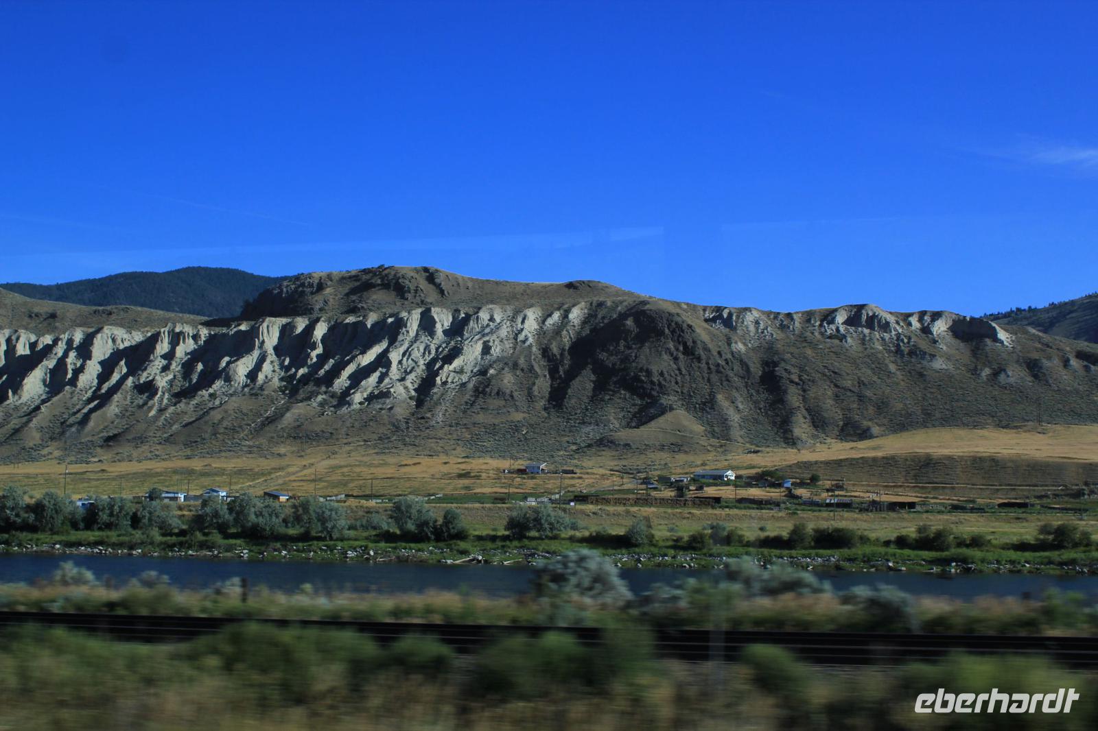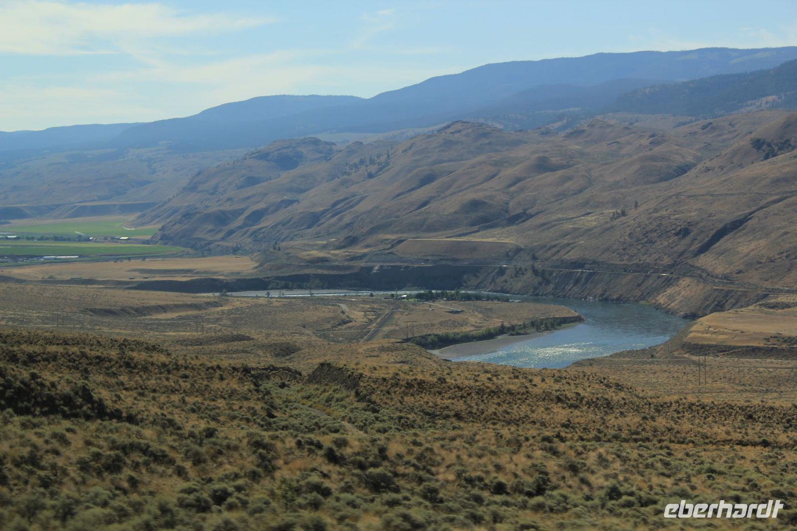 Nach einem herrlichen Ranch-Frühstück machen wir uns heute etwas früher auf den Weg, überqueren den Süd Thompson Fluss und wenig später schauen wir zurück auf das Städtchen Kamloops, an dem es vorbei in Richtung Whistler geht. Unser 1. Anlaufpunkt heute ist der 30 km lange Kamloops Lake, den wir an einem Aussichtspunkt überblicken. Noch fahren wir durch eine karge, trockene Landschaft, die an Arizona in der West-USA erinnert, doch dies sollte sich noch am gleichen Tag ändern. Ginseng-Plantagen, Salbeibüsche und Grasebenen zieren die hügelige, terrassenförmige Umgebung.