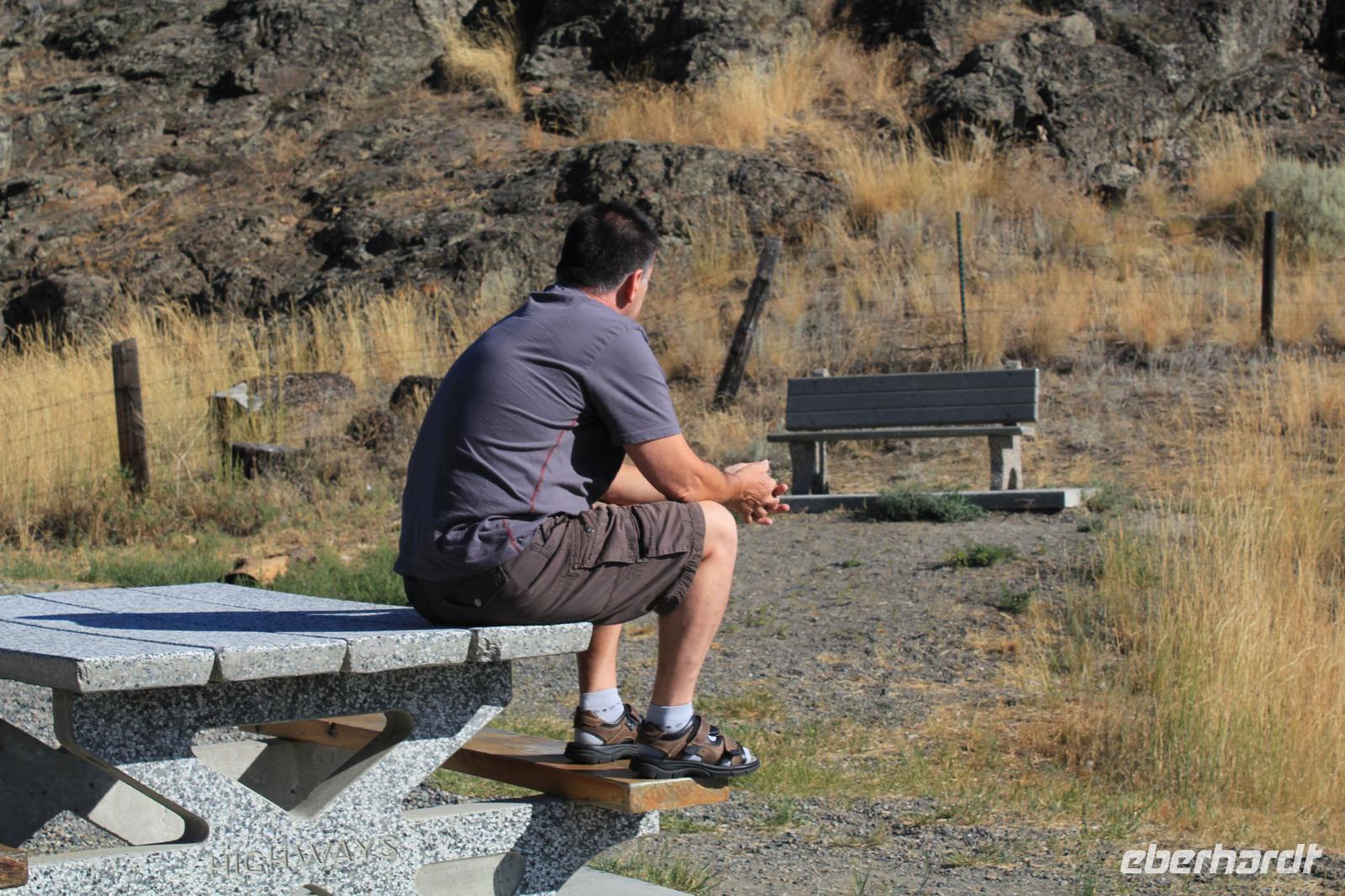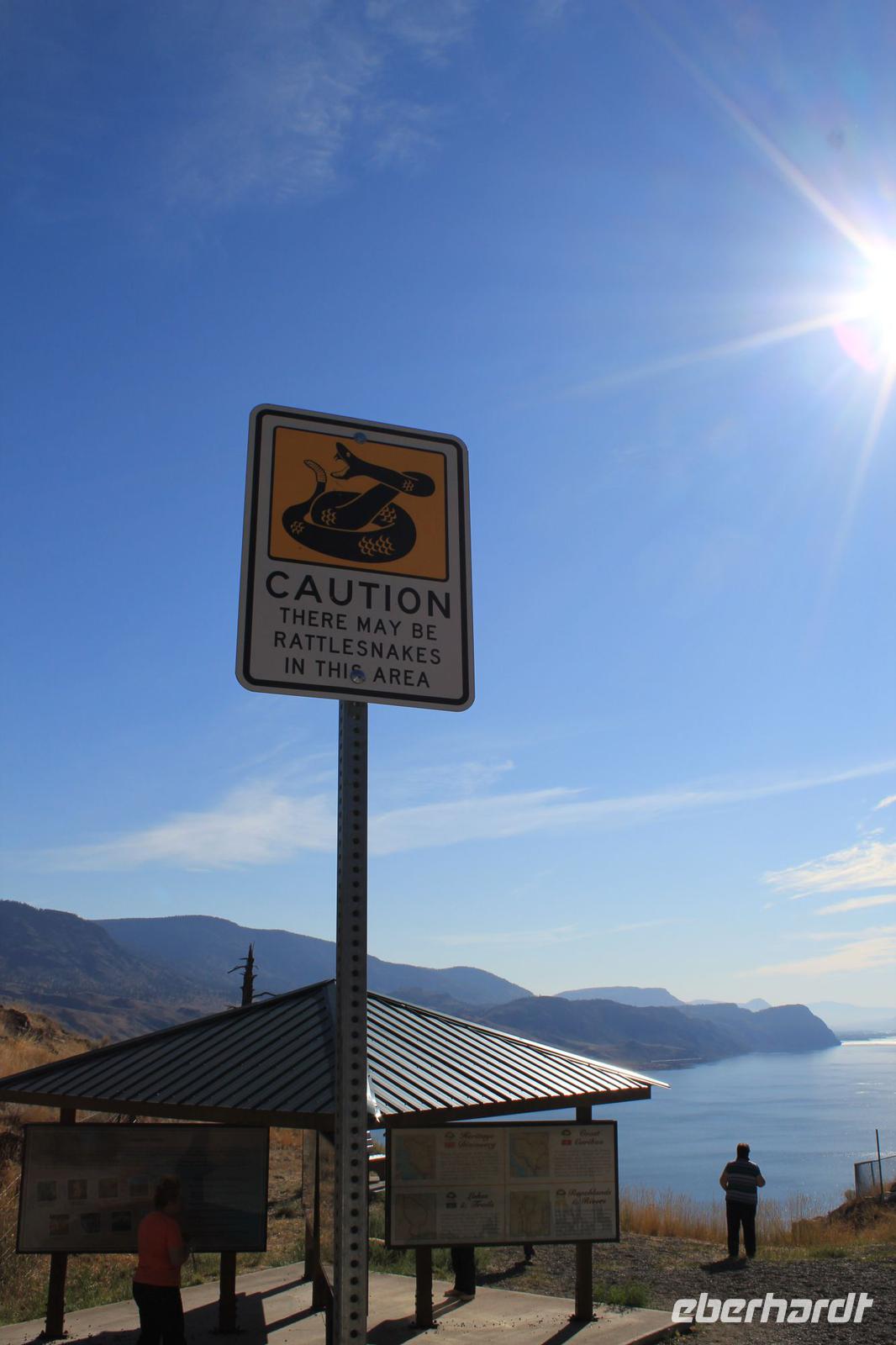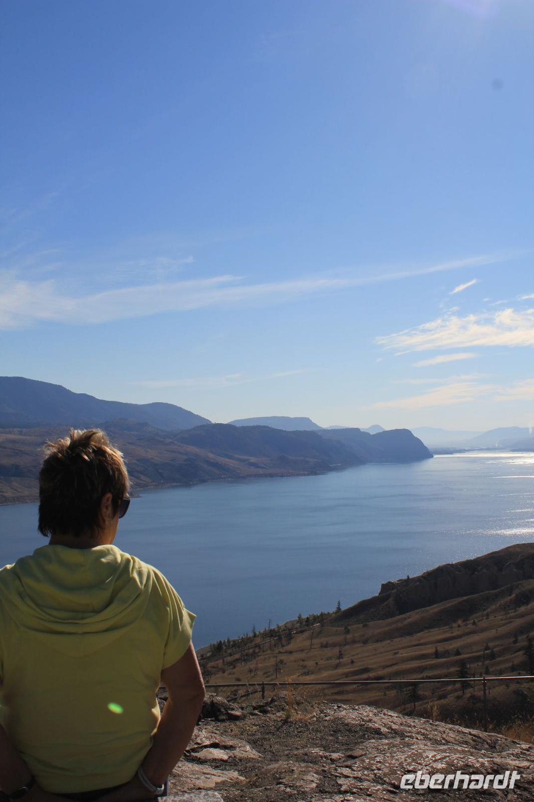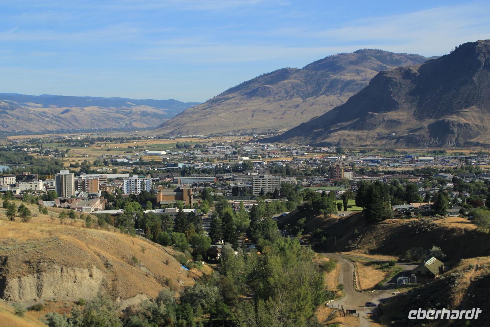 Unser nächster Stopp ist der Wells Grey Provincial Park in der Nähe von Clearwater. Hier besuchen wir den 60 m hohen, in eine tiefe Schlucht stürzenden, Spahats Wasserfall, der uns wieder mal die gewaltige Kraft des Wassers vor Augen führt. Nicht mehr weit ist es nun nach Kamploops. Unterwegs lauschen wir Victor, der uns einige interessante Landesdaten zu Kanada näher bringt. Die Landschaft ändert sich nun deutlich: kräftige Nadelwälder und sattes Grün werden abgelöst von trockener, gelber Hügellandschaft, gespickt mit Gelbkiefern und Sagebrush, einer Salbeiart. Beim Durchfahren der Gegend um Barriere sehen wir die Schattenseite einer einst waldigen Landschaft. Seit einem schweren Brand im Jahr 2005 bestimmen kilometerweit rußgeschwärzte, abgebrannte Bäume die umliegenden Hügel.