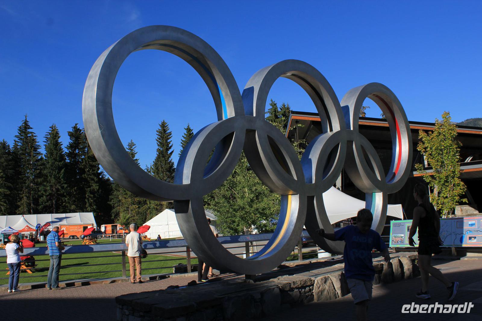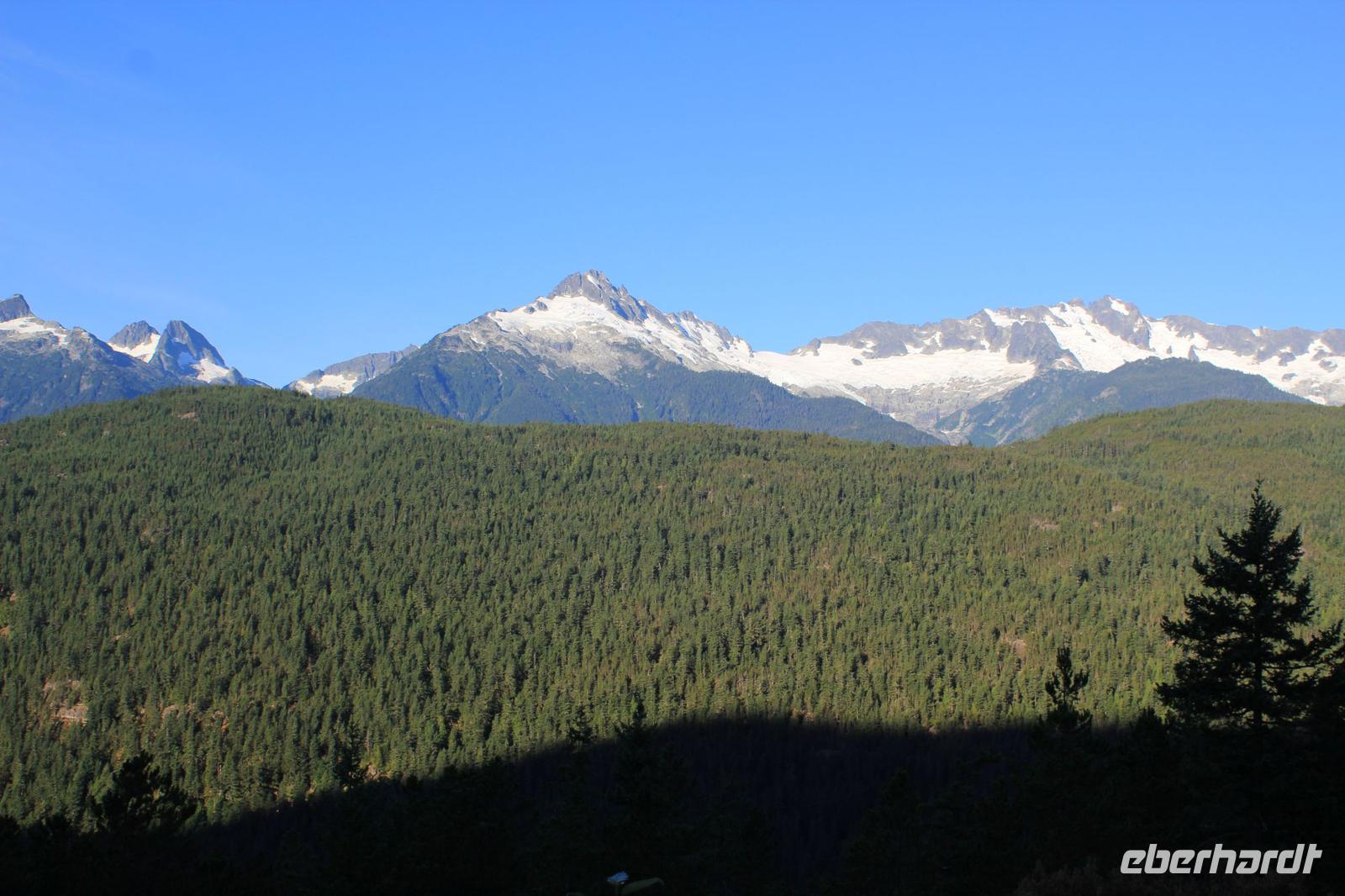 Nun geht es wieder steil bergab, durch das Pemberton Tal hindurch und gegen 16:30 Uhr erreichen wir das „St. Moritz" Kanadas. Die 10.000 Einwohner Stadt Whistler stellt den bekanntesten und größten Wintersportplatz Nordamerikas dar und ist besonders seit der Austragung der Olympischen Winterspiele 2010 „berühmt" geworden. Bis 1960 gab es hier nahezu keine Infrastruktur und erst 2 Jahre später begannen erste Versuche ein Skigebiet zu errichten. Heute beherrschen die gewaltigen Berge Whistler und Blackcomb das Örtchen, die mit der 400 m hohen Seilbahn „Peak2Peak" verbunden sind. Am Nachmittag unternehmen wir noch einen Spaziergang in der Fußgängerpassage und Elisa zeigt uns die wichtigsten, sehenswertesten Ecken. Auf dem bunten Skiier Plaza steppt der Bär! Denn im Sommer verwandelt sich Whistler in ein Paradies für Mountainbiker! Vorbei an der Rocky Mountain Chocolate Factory (mh, wie das duftet!) schlendern wir gemütlich bis zu den Olympischen Ringen. Jetzt bleibt allen noch ein Stündchen zur freien Verfügung, bevor wir uns um 19 Uhr wieder zum Abendessen im Restaurant „La Bocca" treffen. Hier lassen wir den Abend, umgeben von Einheimischen und fröhlicher Musik ausklingen.
