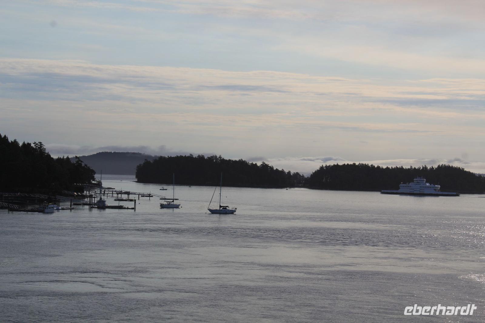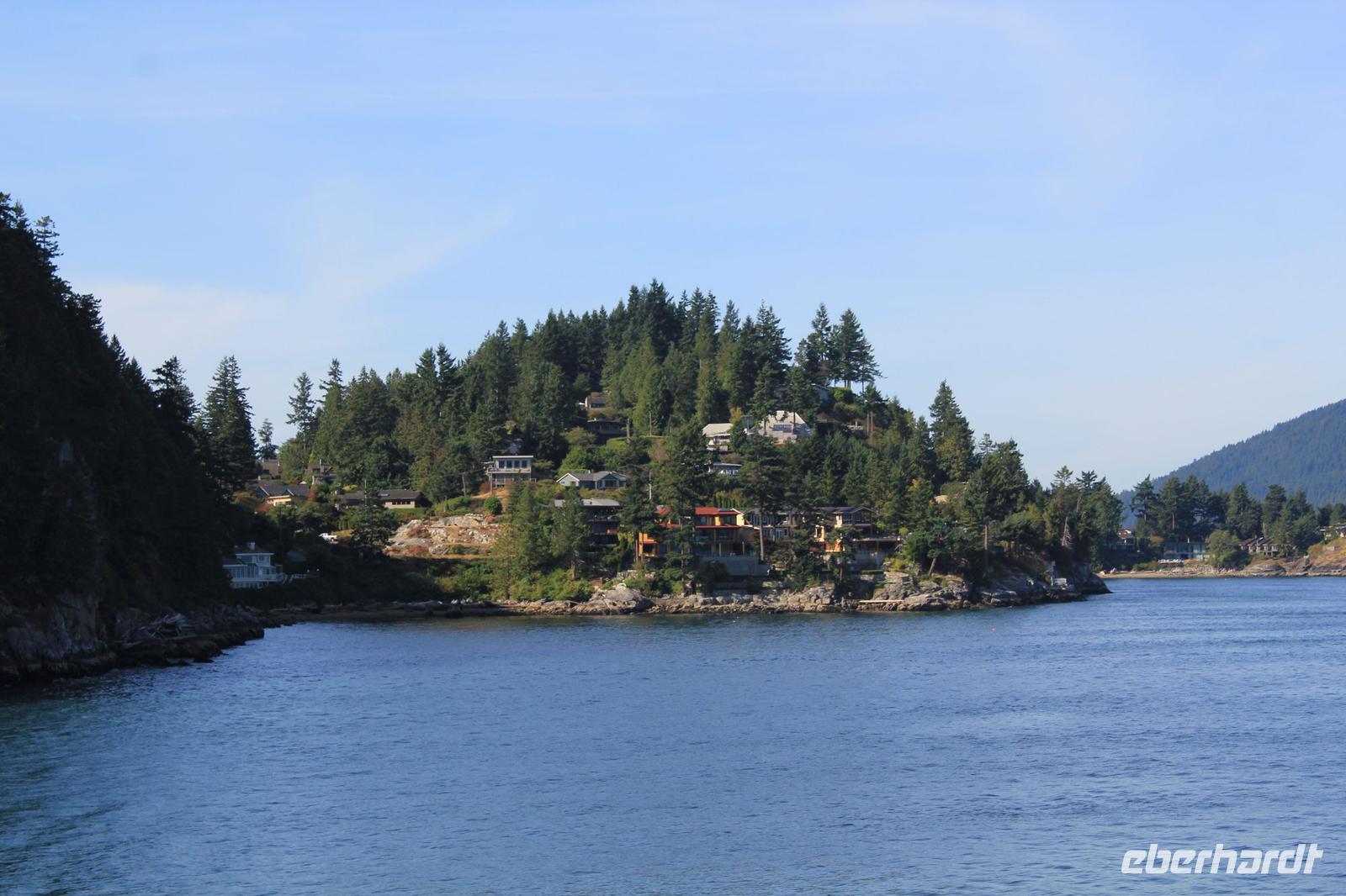 Unser Ziel ist die kleine Gemeinde Horseshoe Bay, von wo aus wir die Fähre nach Vancouver Island nehmen wollen. Pünktlich um 10:05 Uhr legen wir ab und genießen die ca. 1,5 stündige Überfahrt zur größten Insel an der nordamerikanischen Pazifikküste. Diese ist nicht nur Urlaubsparadies und Seniorenresidenz, sondern lockt mit ihrem dichten Regenwald sandigen Stränden und natürlich dem Sitz der Hauptstadt zahlreiche Besucher an. Heutzutage bevölkern ca. 750.000 Einwohner die Insel, von denen über die Hälfte in der Großstadt Victoria wohnt.