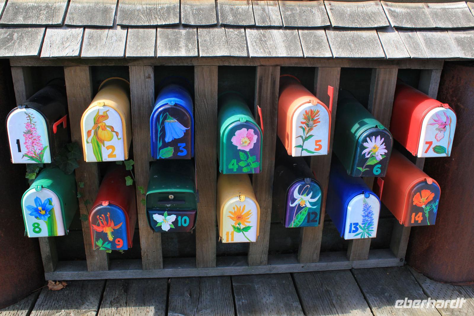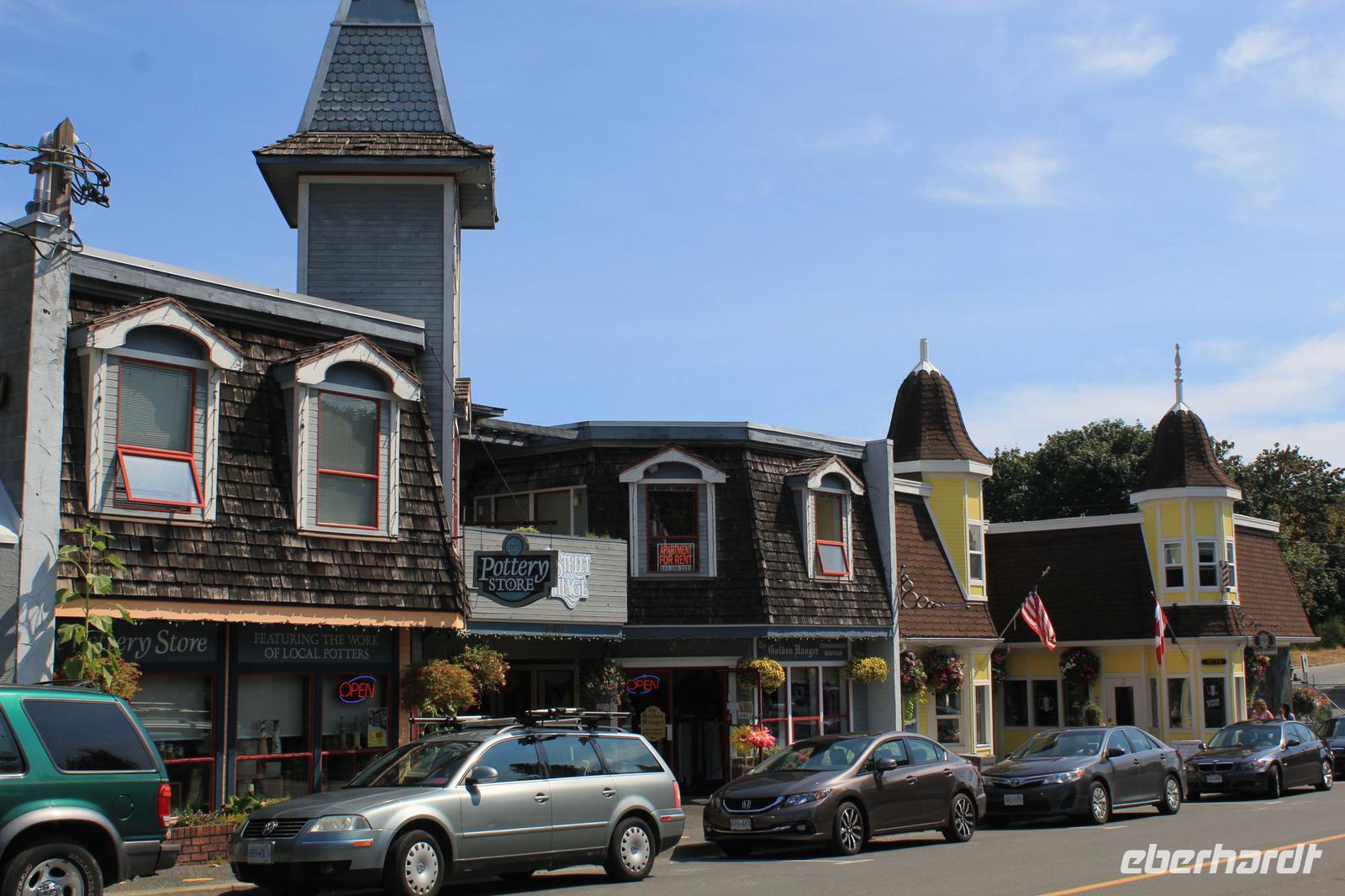 Schnell durchqueren wir die Hafenstadt Nanaimo, denn unsere Mittagspause wollen wir im niedlichen Ort Chemainus verbringen. Hier wurden an vielen Häusern überlebensgroße Wandgemälde geschaffen, die die Begebenheiten der Stadtgeschichte thematisieren. Kleine Cafés, bunte Häuschen und liebevoll geschmückte Straßen versüßen uns unser Päuschen hier.