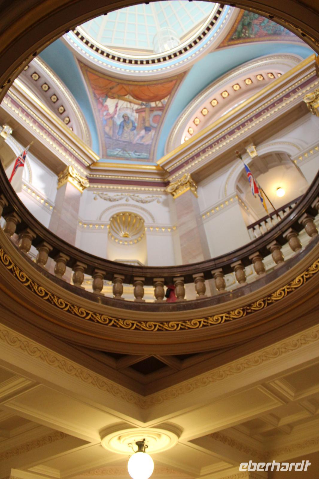 Auf unserer Weiterfahrt gen Süden erblicken wir sogar die US-amerikanische Bergkette der Olympic Mountains in der Ferne, denn hier haben wir den 49. Breitengrad, der auf dem Festland die Landesgrenze zwischen den USA und Kanada darstellt, bereits überschritten. Schließlich erreichen wir den Großraum Victoria und unsere ausführliche Stadtführung mit Victor beginnt! Kurzerhand erreichen wir das exklusive Wohnviertel „The Uplands" an der Cadboro Bay. Schicke, im Tudorstil erbaute Häuser zieren den Wegesrand. Victoria ist die älteste Stadt von British Columbia. Sie wurde 1843 als Pelzhandelsposten errichtet und zwar mit strategischer Absicht an der südlichsten Inselspitze. Wir passieren weiterhin die Meile 0 des Trans-Canada-Highway im Stadtpark Beacon Hill und wenig später erreichen wir schon das Stadtzentrum. Das beeindruckende Parlamentsgebäude, inmitten großzügiger, gepflegter Parkanlagen fängt als erstes unsere Aufmerksamkeit ein. Der aus mächtigen Steinquadern errichtete Bau wurde 1897 vom Stadtarchitekt Francis M. Rattenbury erbaut. Auf der goldenen Kuppel thront der vergoldete Kapitän George Vancouver, der die später nach ihm benannte Insel als Erster umsegelte. Weiterhin geht es vorbei am glamourösen Empress Hotel, von der Canadian Pacific Railway Company im Jahre 1908 errichtet. Über die Hauptgeschäftsstraße Government Street erreichen wir das kleine Chinatown, bevor es am schmucken Hafen entlang zurückgeht. Schnell checken wir in unserem Hotel „Royal Scot & Suites", im britischen Stil errichtet und ausgestattet, ein. Doch es bleibt keine Zeit zum Ausruhen, denn Victor nimmt uns mit zum Parlamentsgebäude und führt uns durch den ehrenwerten Bau. Nach einem Bummel durch die Teestube des Empress Hotel, wo man für viel Geld zu einer nachmittäglichen Teestunde mit verführerischen Schlemmereien einkehren könnte, ist es an der Zeit die „britischste Stadt außerhalb Großbritanniens" auf eigene Faust zu entdecken. So schlendern wir durch die von Gaslaternen und Blumenampeln gesäumten Straßen, wobei sich auch das eine oder andere Souvenir erstehen lässt.