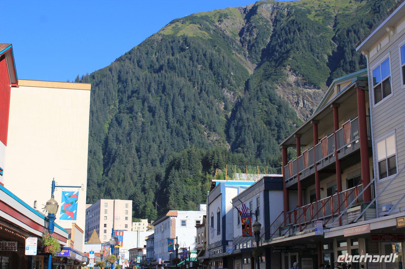 Heute erreichen wir die mit ca. 32.000 Einwohnern recht klein geratene Hauptstadt AlaskasJ. Der große Goldrausch verwandelte Juneau in den 1880er Jahren in eine blühende Goldgräberstadt, aus der später die 1. moderne Siedlung Alaskas hervorging. Mit seinen bunten Häuschen, den schmalen Einkaufsstraßen und dem hübschen Hafenbecken, liegt Juneau malerisch zwischen hohen Bergen und dem Gastineau Kanal, der die Insel Douglas umgibt. Bei unserem heutigen Eberhardt Inklusiv-Ausflug sollten heute wieder viele tolle Programmpunkte auf uns warten.