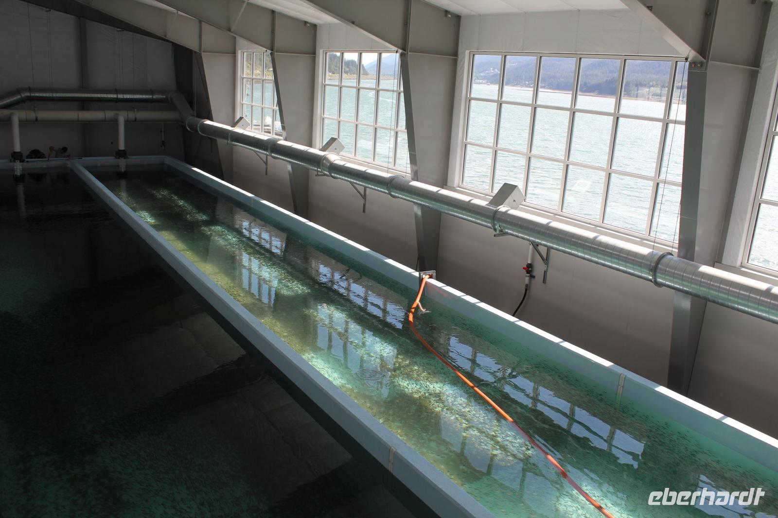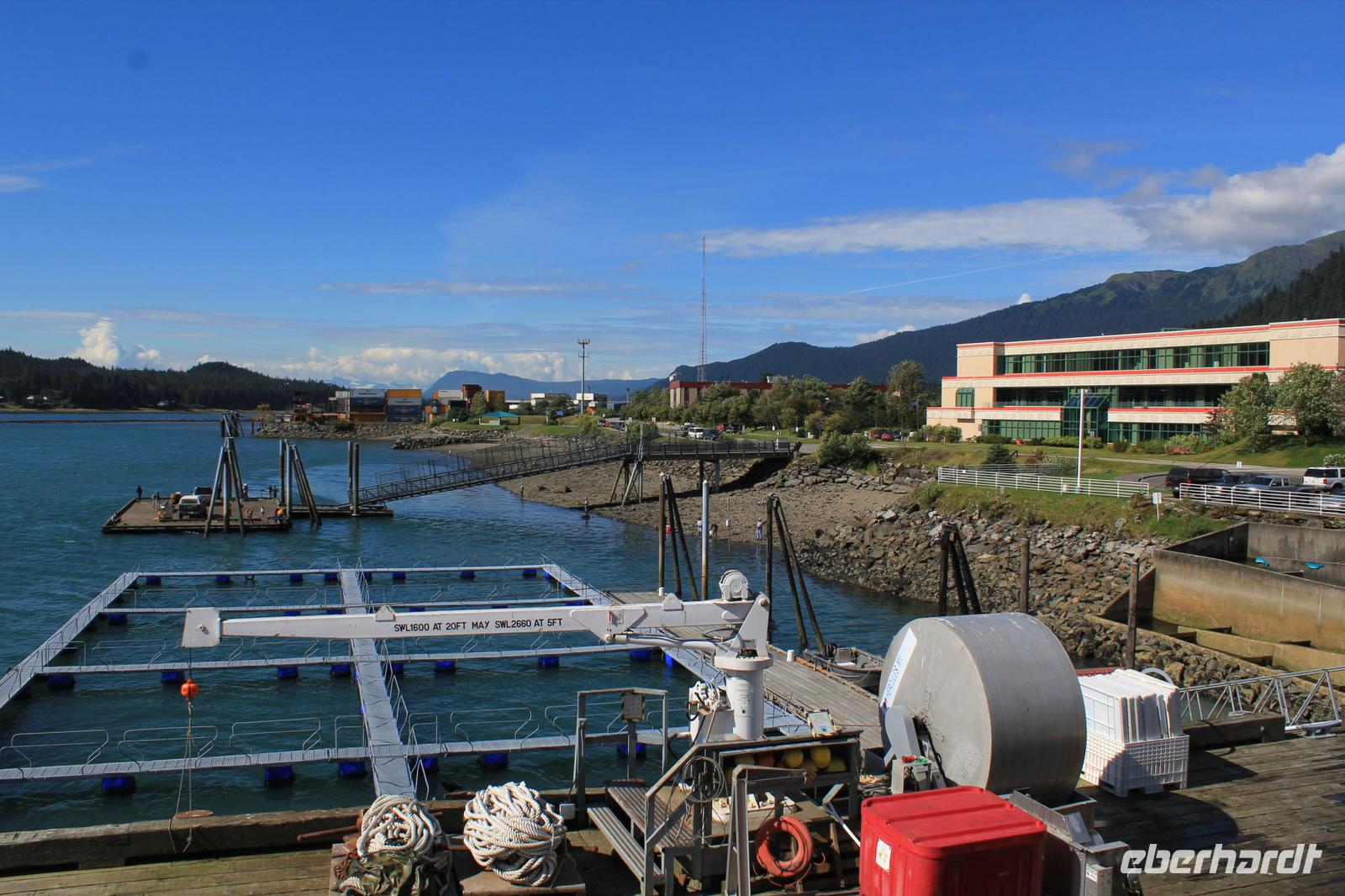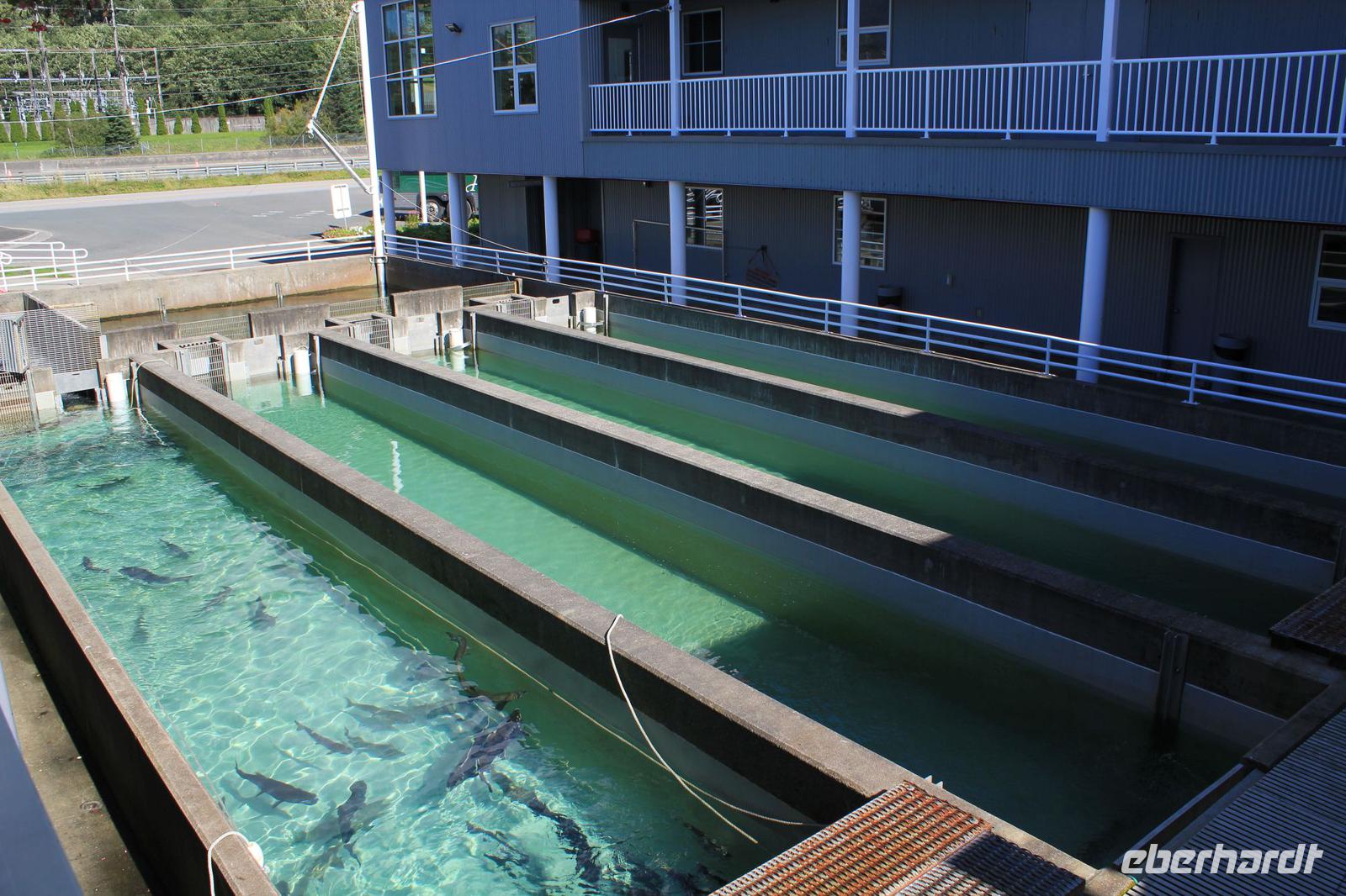 Für die Wirtschaft Alaskas ist die Lachszucht überaus wichtig. Denn dadurch wird die Lachspopulation stabil gehalten, trotz der regen Gewerbe- und Sportfischerei. Jährlich werden ca. 130 Millionen Lachse von dieser Station in die Freiheit entlassen und ca. 1-2 Millionen finden nach einigen Jahren ihren Weg zurück „nach Hause". In einem anderen Gebäude können wir uns kleine Babys der Königs- und der Coholachse anschauen und bekommen anschließend auch noch eine kleine Kostprobe des leckeren Fischs.
