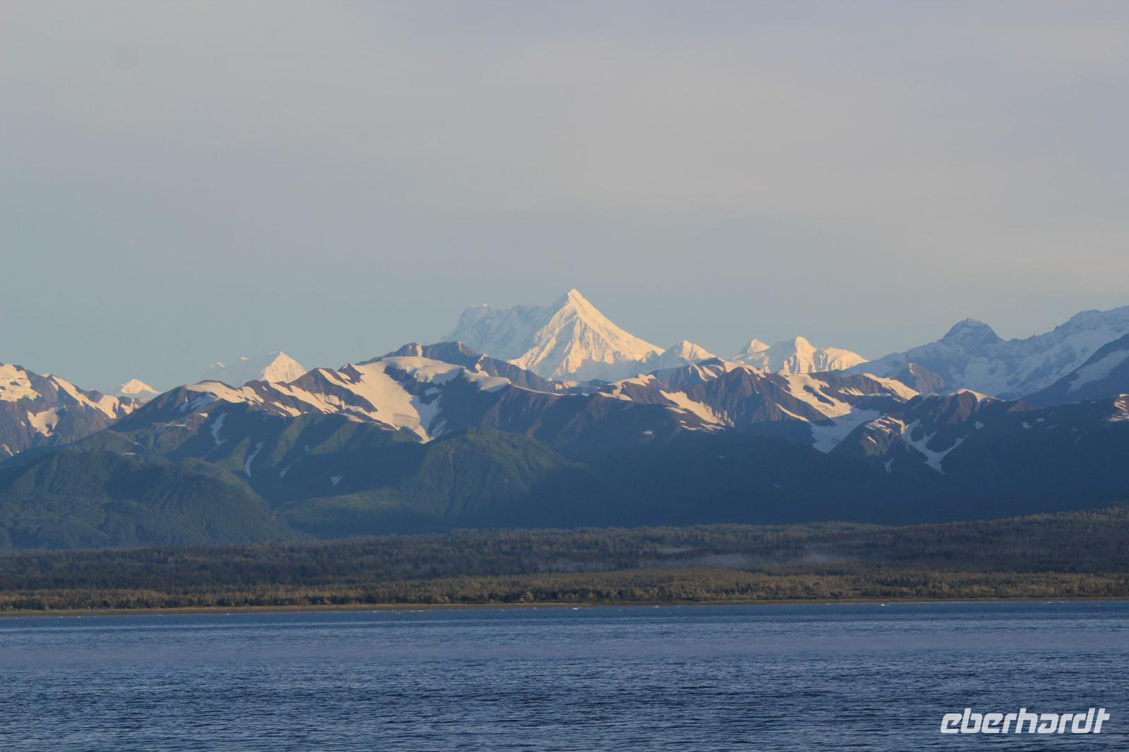 Wir verlassen schließlich die Insight Passage und wagen uns auf das offene Meer hinaus. Über den Golf von Alaska geht es die letzten Seemeilen bis nach Seward. Alle genießen noch einmal die Annehmlichkeiten an Bord, erstehen letzte Mitbringsel und genießen die sagenhafte Aussicht der an uns vorbei ziehenden schneebedeckten Berge.