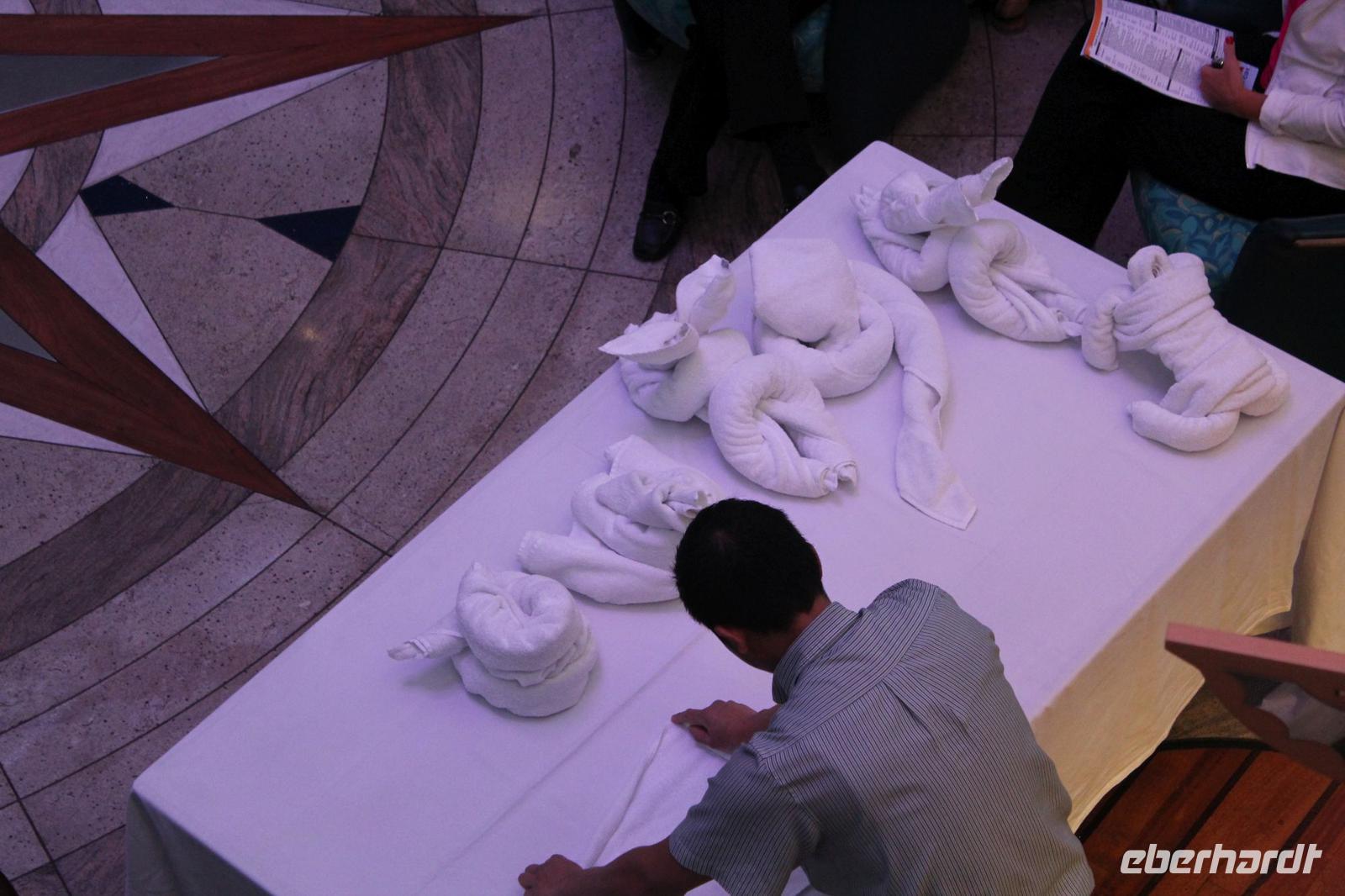 Zu einer kleinen Besprechung vor dem Abendessen treffen wir uns alle wieder, um einiges über Alaska, Ketchikan und die Insight Passage zu erfahren sowie um Organisatorisches zu klären. Und dann steht ja heute auch noch das Kapitänsdinner an! Aufgebrezelt wie wir sind genießen wir den Abend in tollem Ambiente und mit köstlichem Essen, bevor wir uns den Kapitän höchst persönlich, mit einem Glas Sekt in der Hand, auf Deck 6 im Colony Club anschauen können.