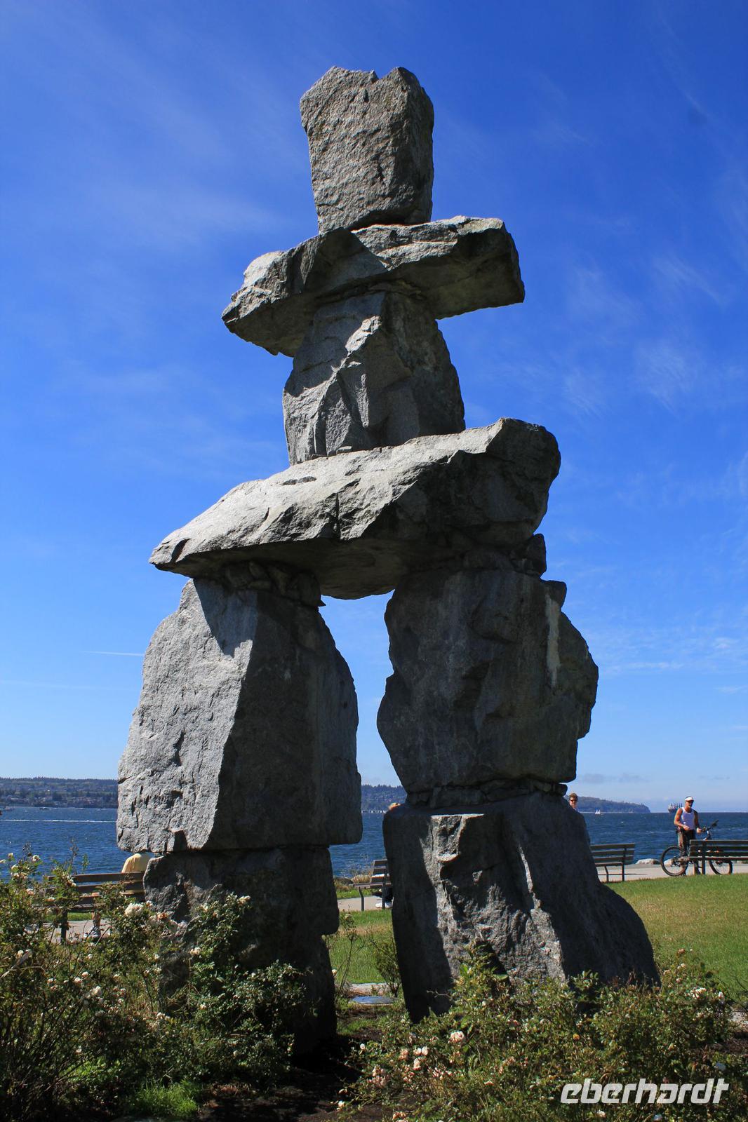 Entlang der English Bay fahren wir zurück in Richtung unseres Hotels, doch nicht bevor wir bei einem gemütlichen Bummel am Strand entlang dem großen steinernen Inukshuk einen Besuch abgestattet haben. Das Wahrzeichen der Olympischen Winterspiele von 2010 scheint den fröhlich joggenden und umherspazierenden Einheimischen zuzulächeln. Am Nachmittag haben wir Zeit uns die bunte, vor Leben sprühende Stadt noch etwas auf eigene Faust anzuschauen.